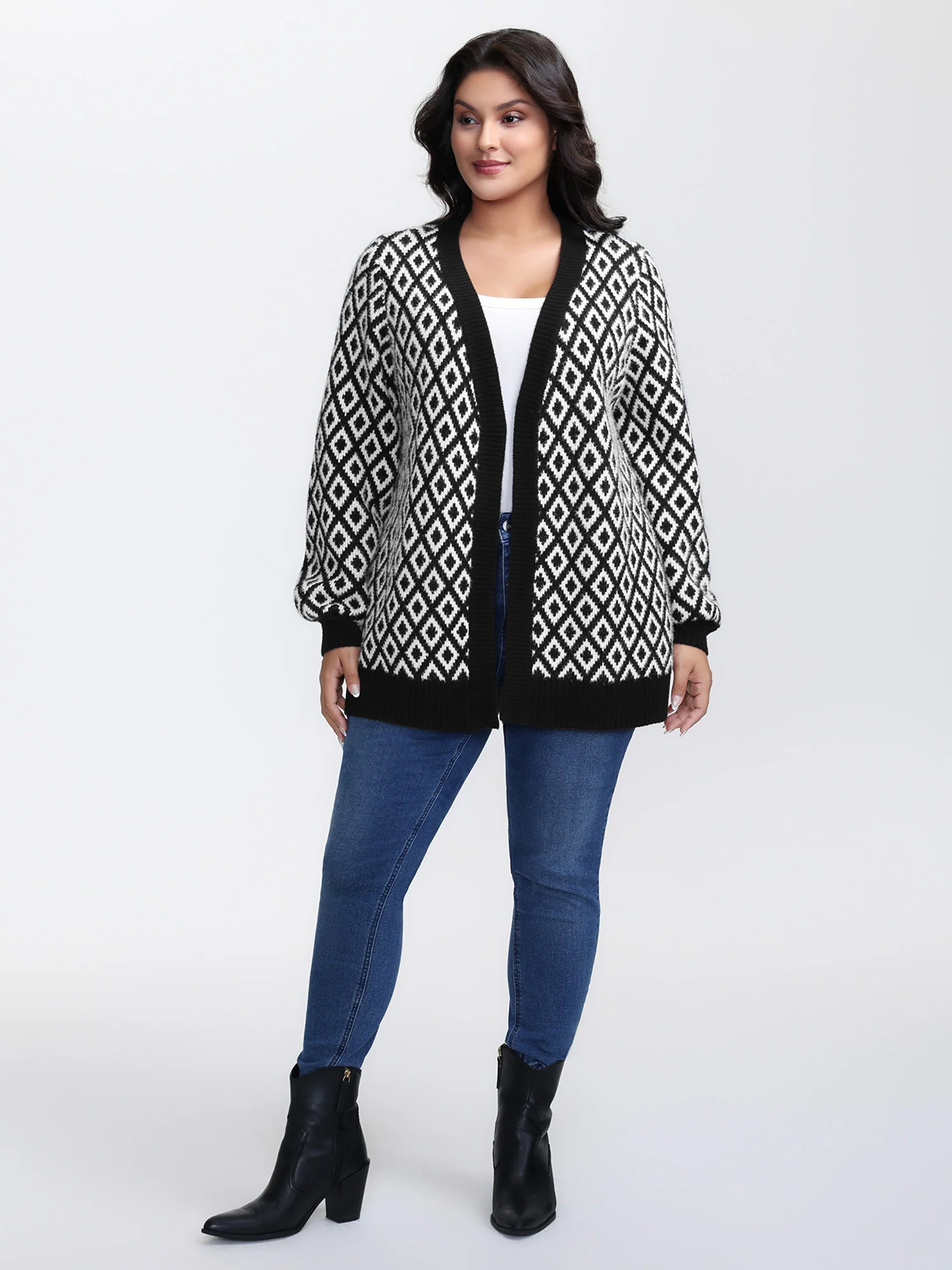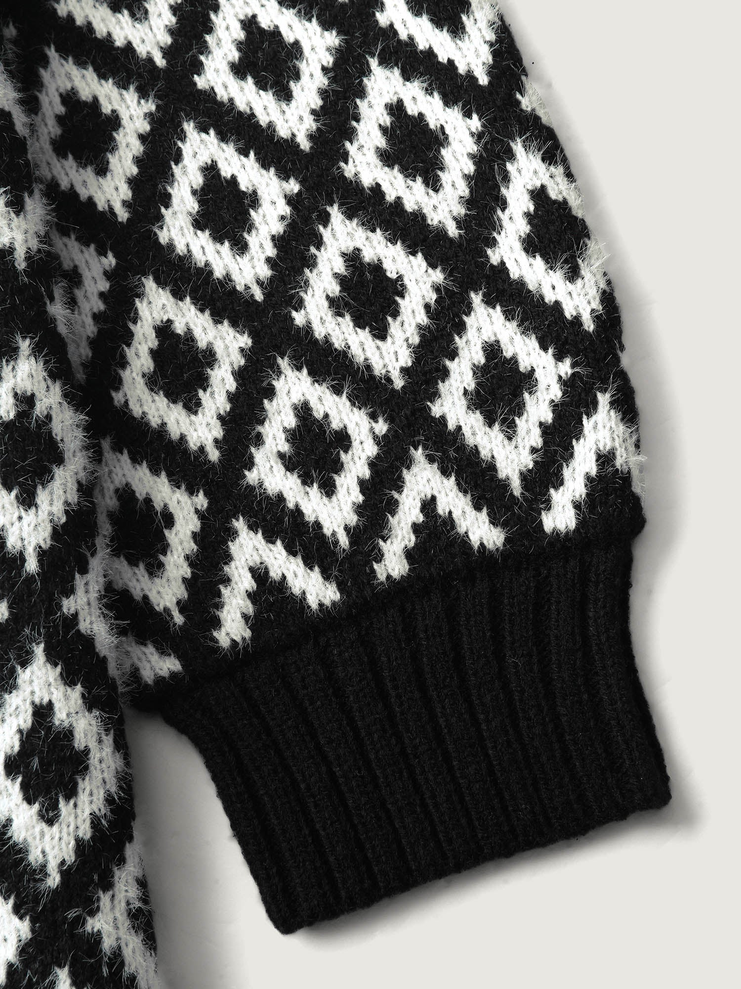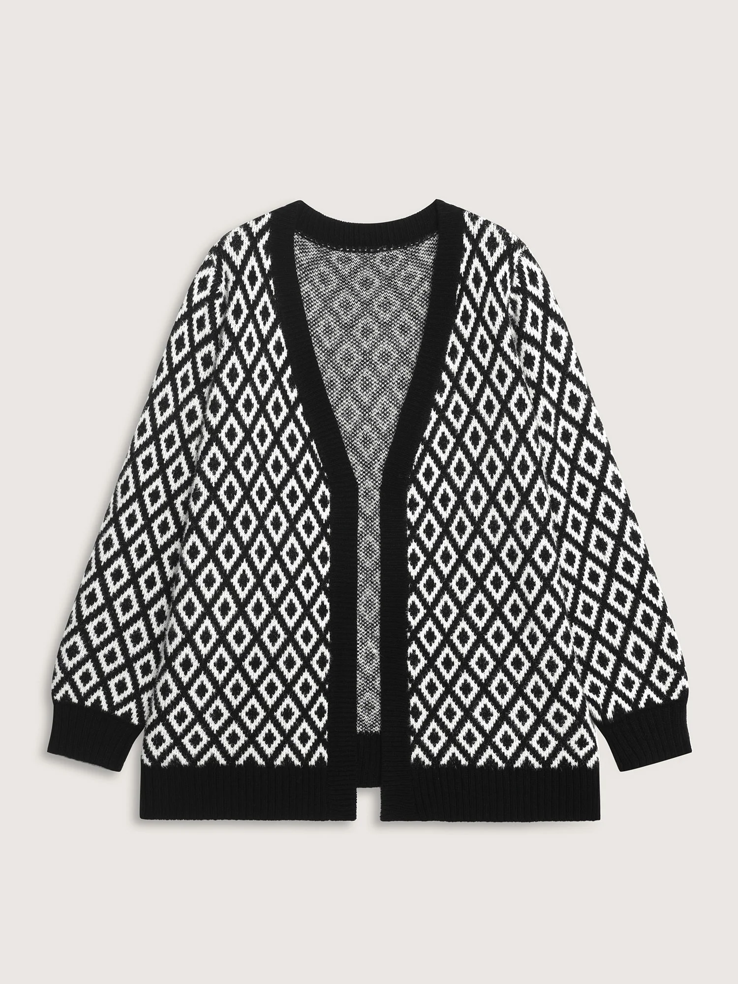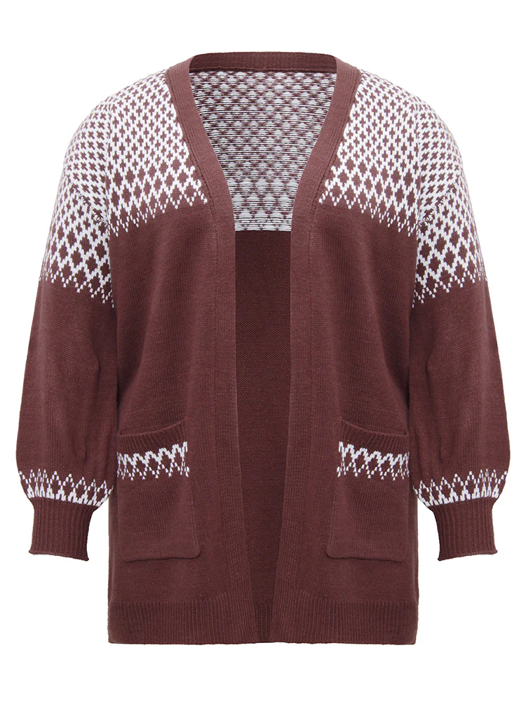 Mink Jacquard Diamond Pattern Knit Cardigan