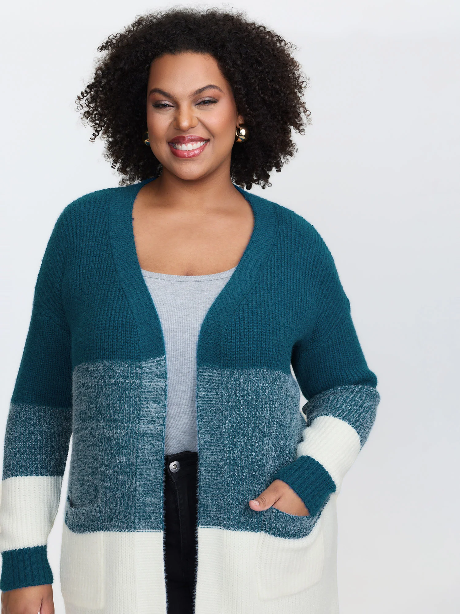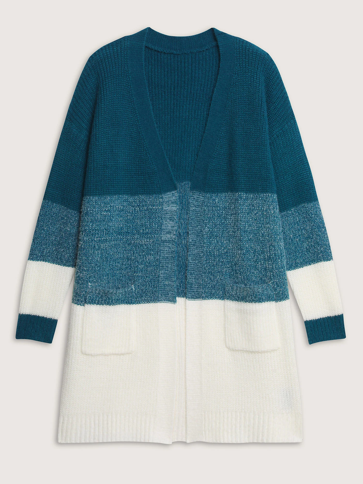 Super Stretchy Colorblock Fuzzy Textured Knit Cardigan