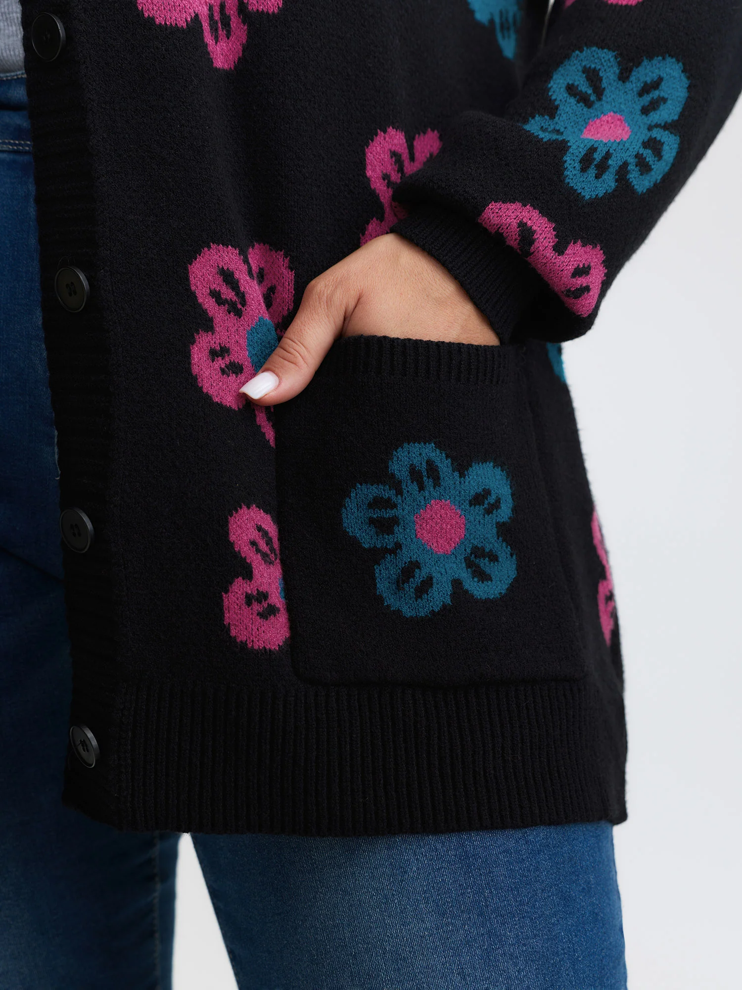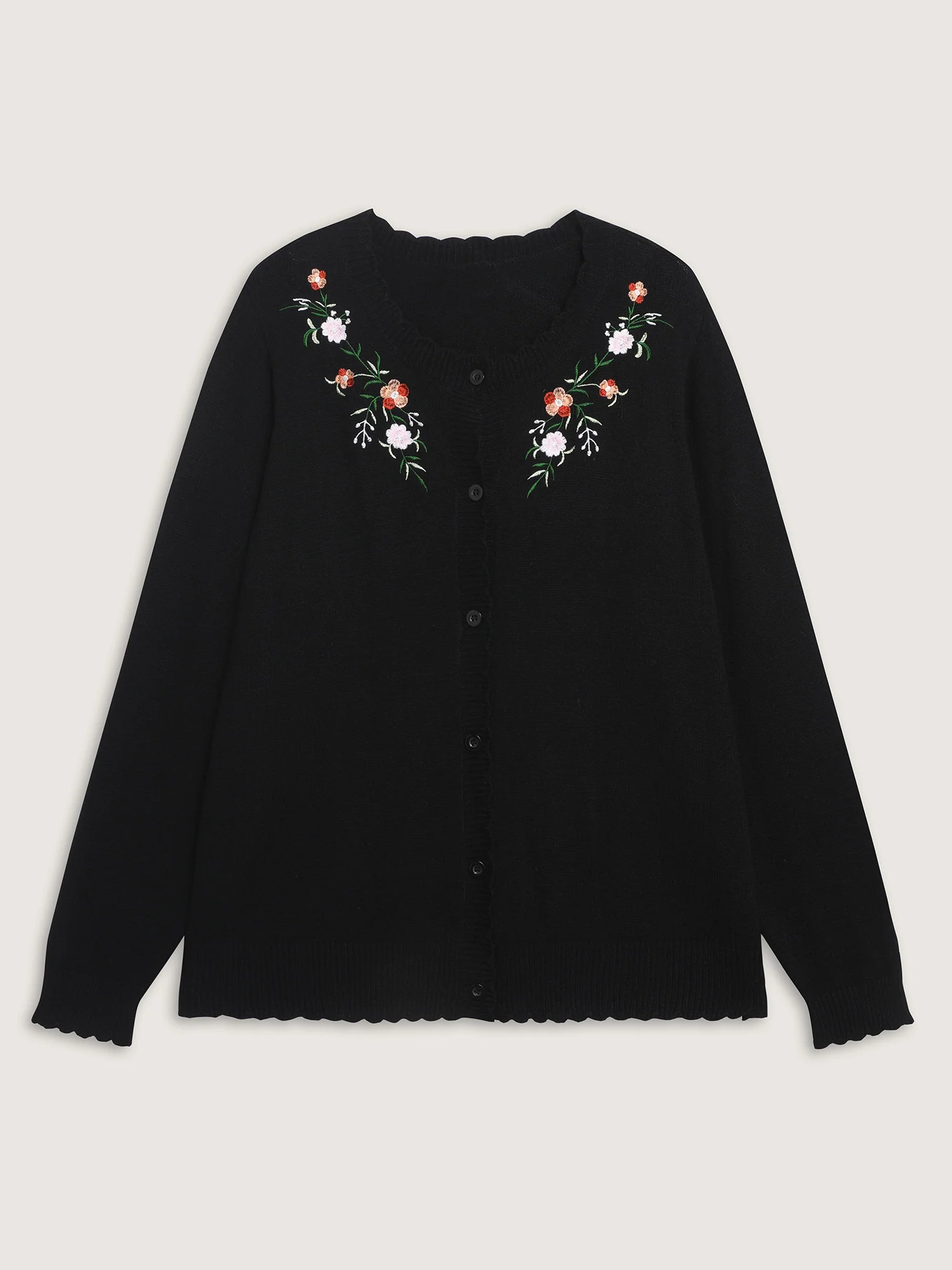 Supersoft Floral Embroidery Buttons Knit Cardigan
