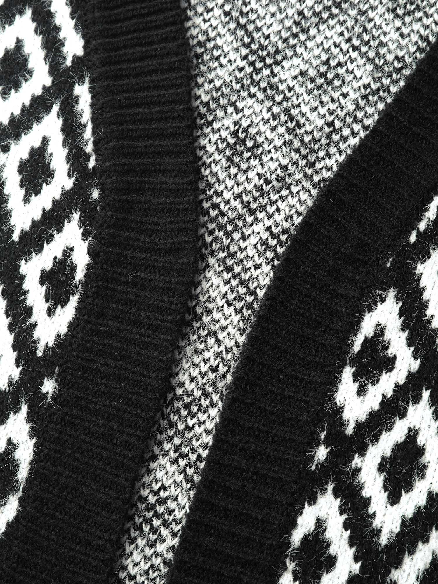 Geometric Contrast Patched Pocket Jacquard Cardigan