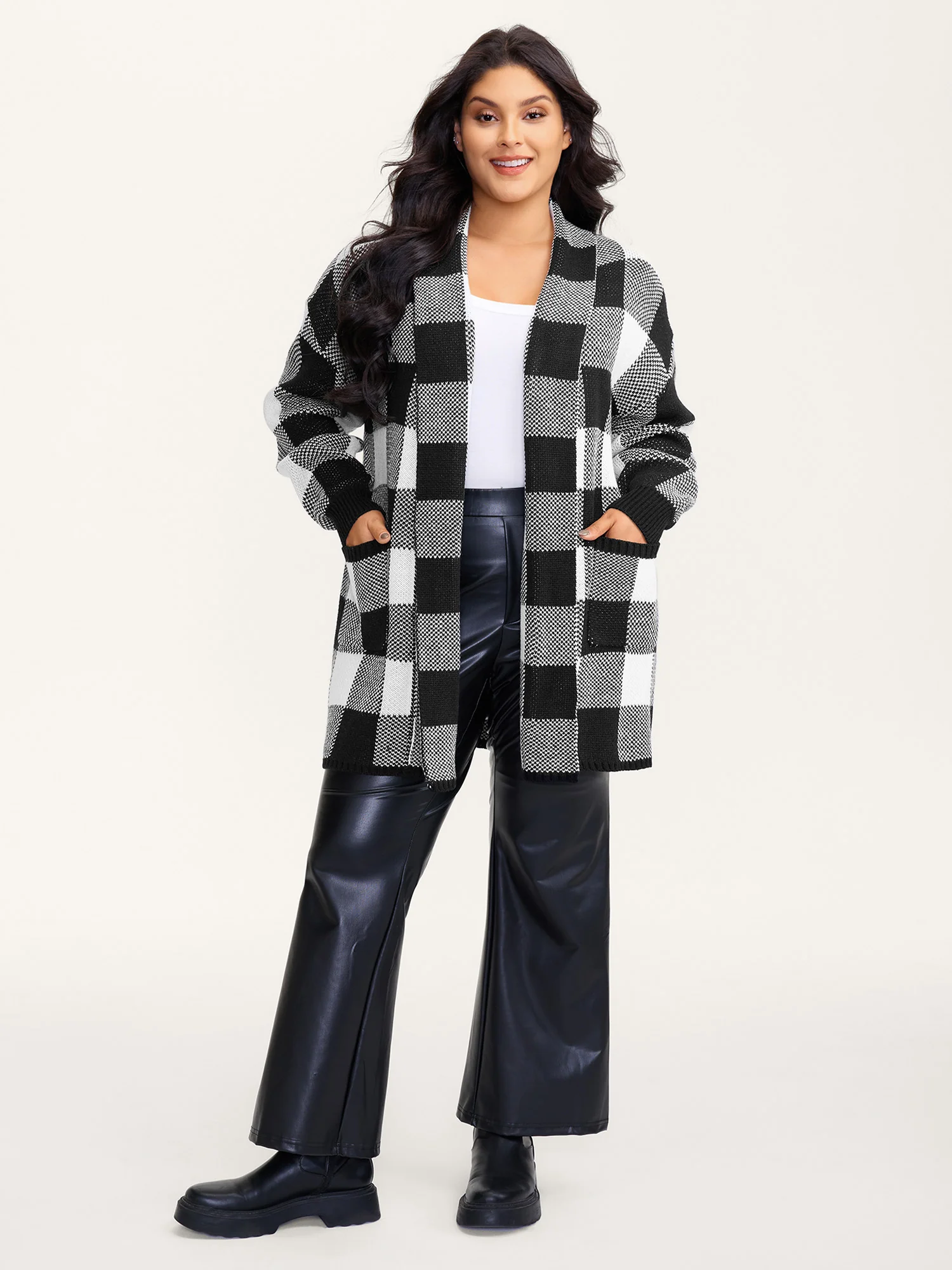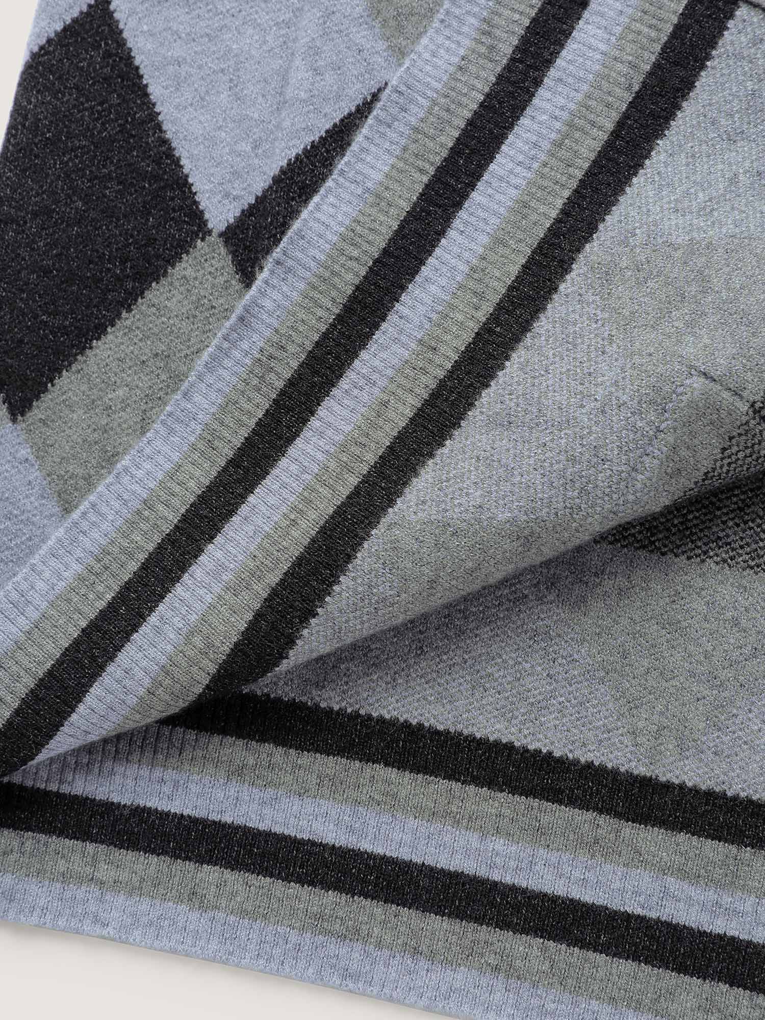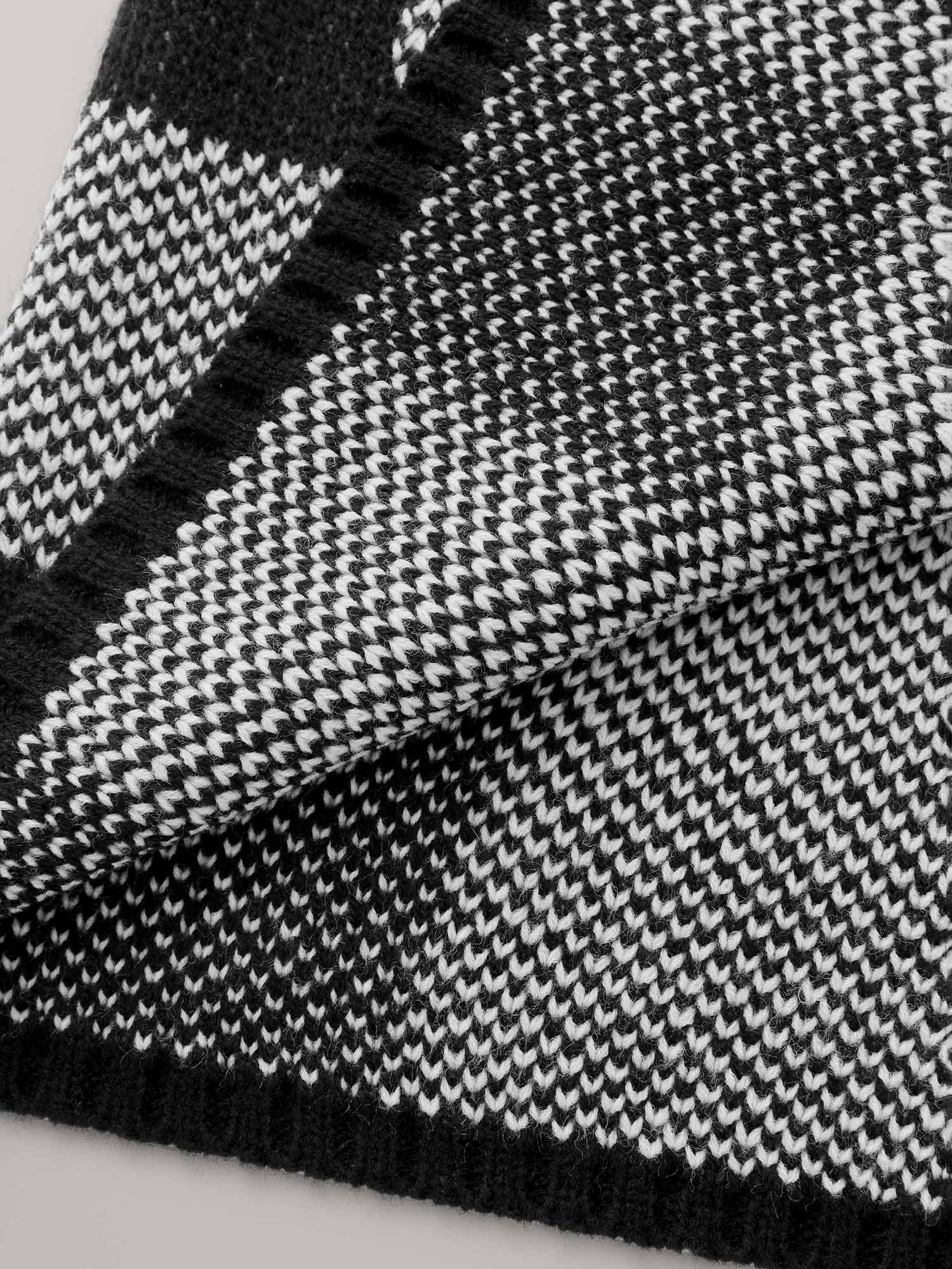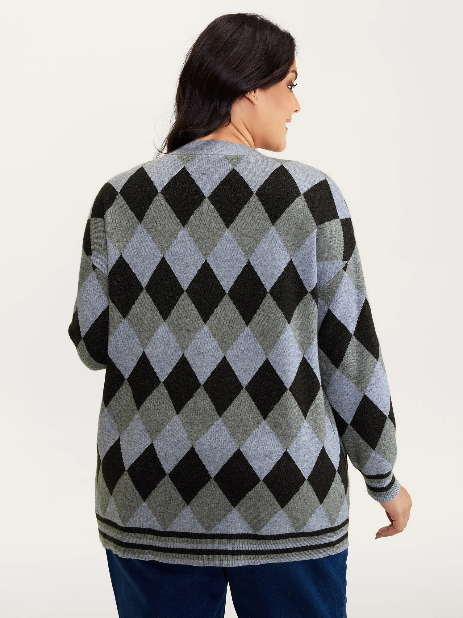 Checkered Jacquard Folded Collar Knit Cardigan
