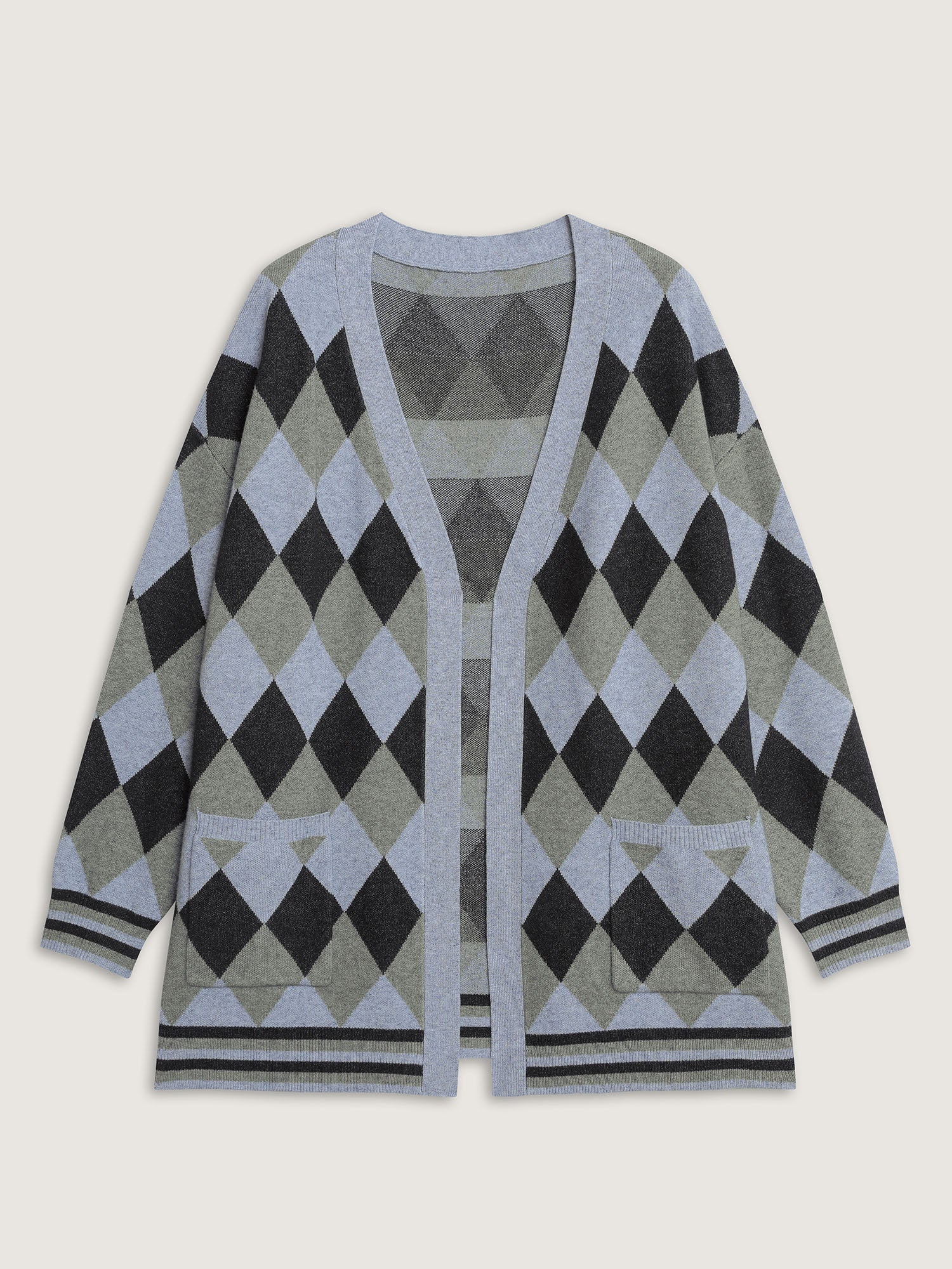 Geometrical Pattern Open-Front Knit Cardigan