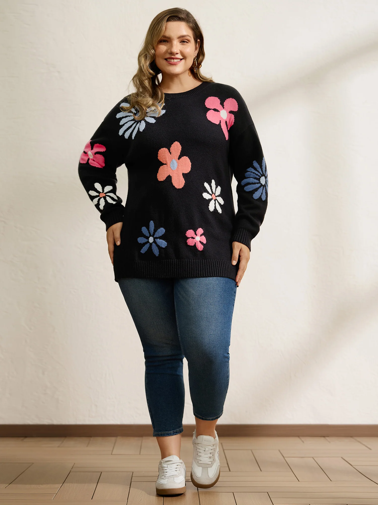 Supersoft Large Flower Jacquard Pattern Pullover