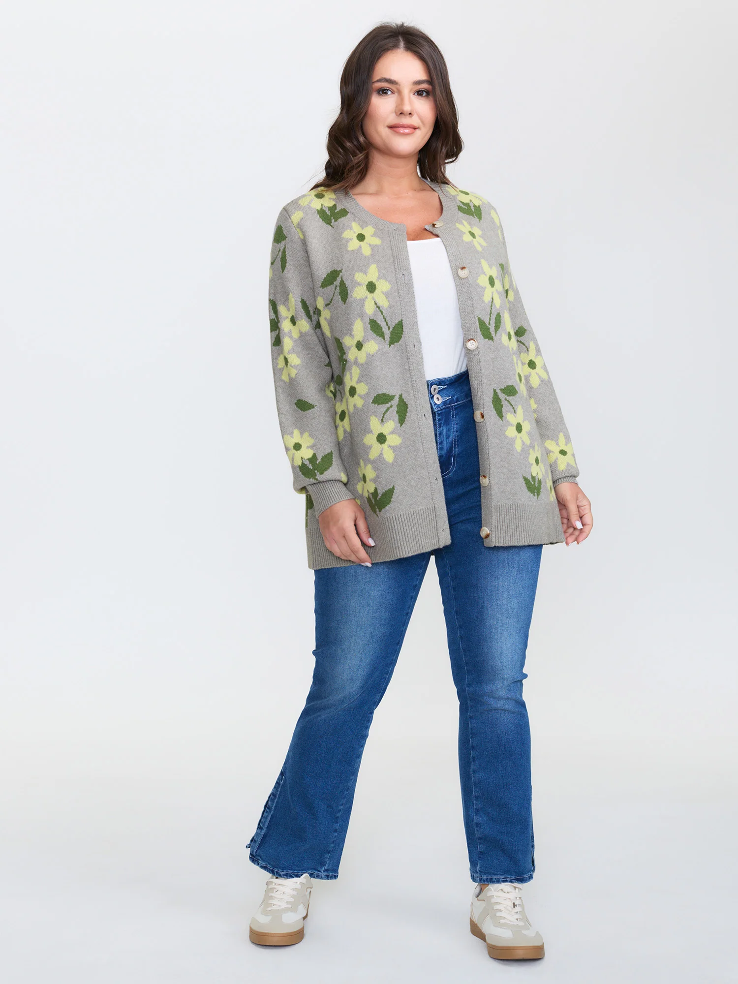 Floral Pattern Jacquard Button Knit Cardigan