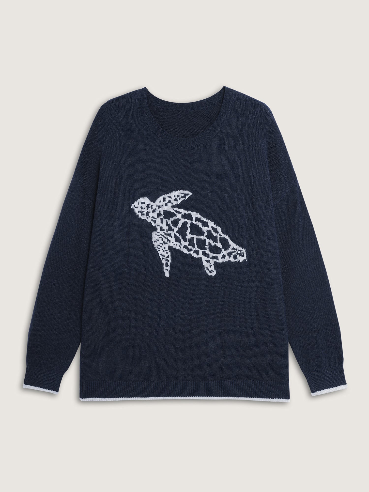 Supersoft Turtle Motif Slit Contrast Edge Pullover