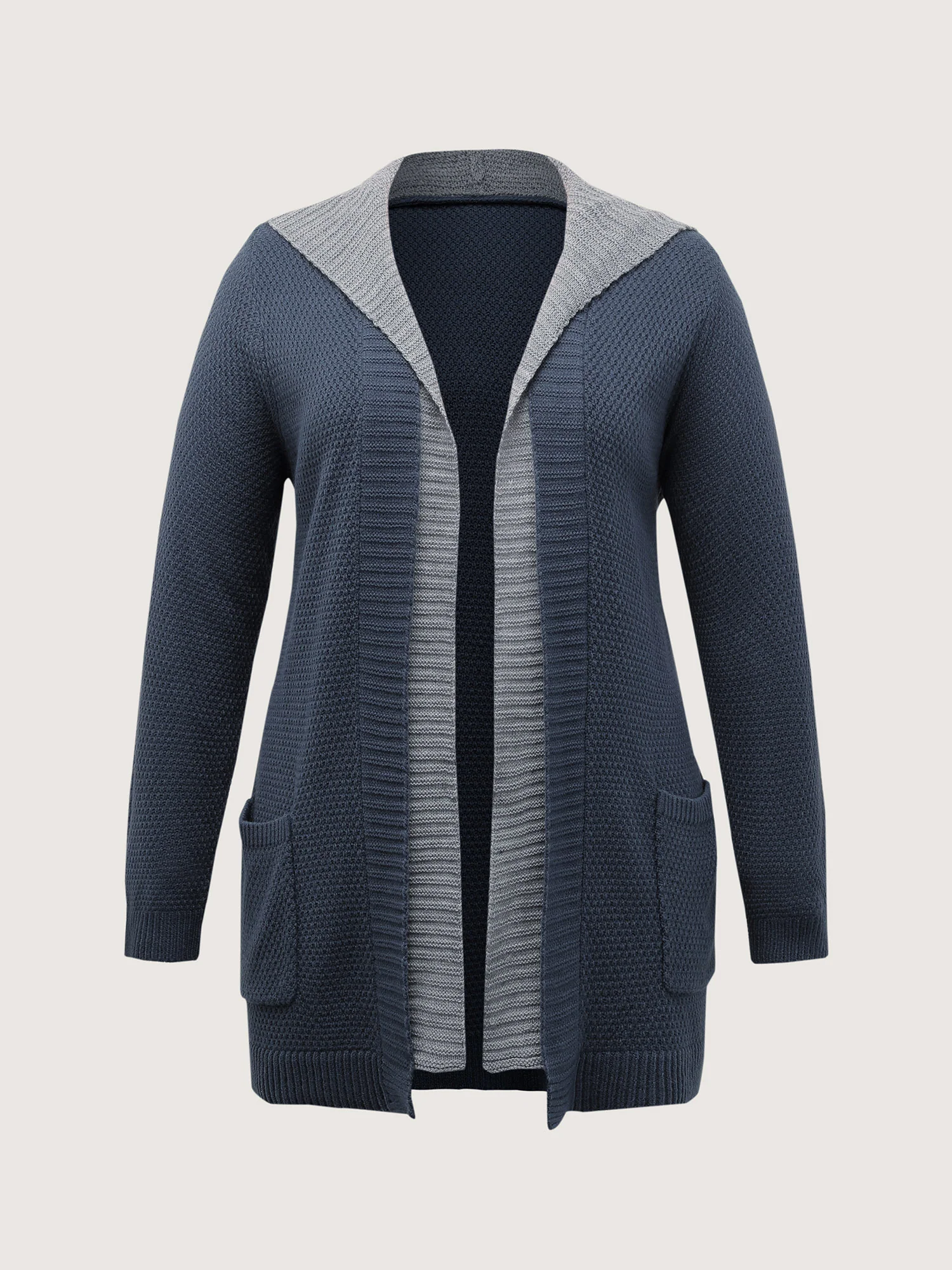 Textured Color Contrast Hooded Pocket Knit Cardigan
