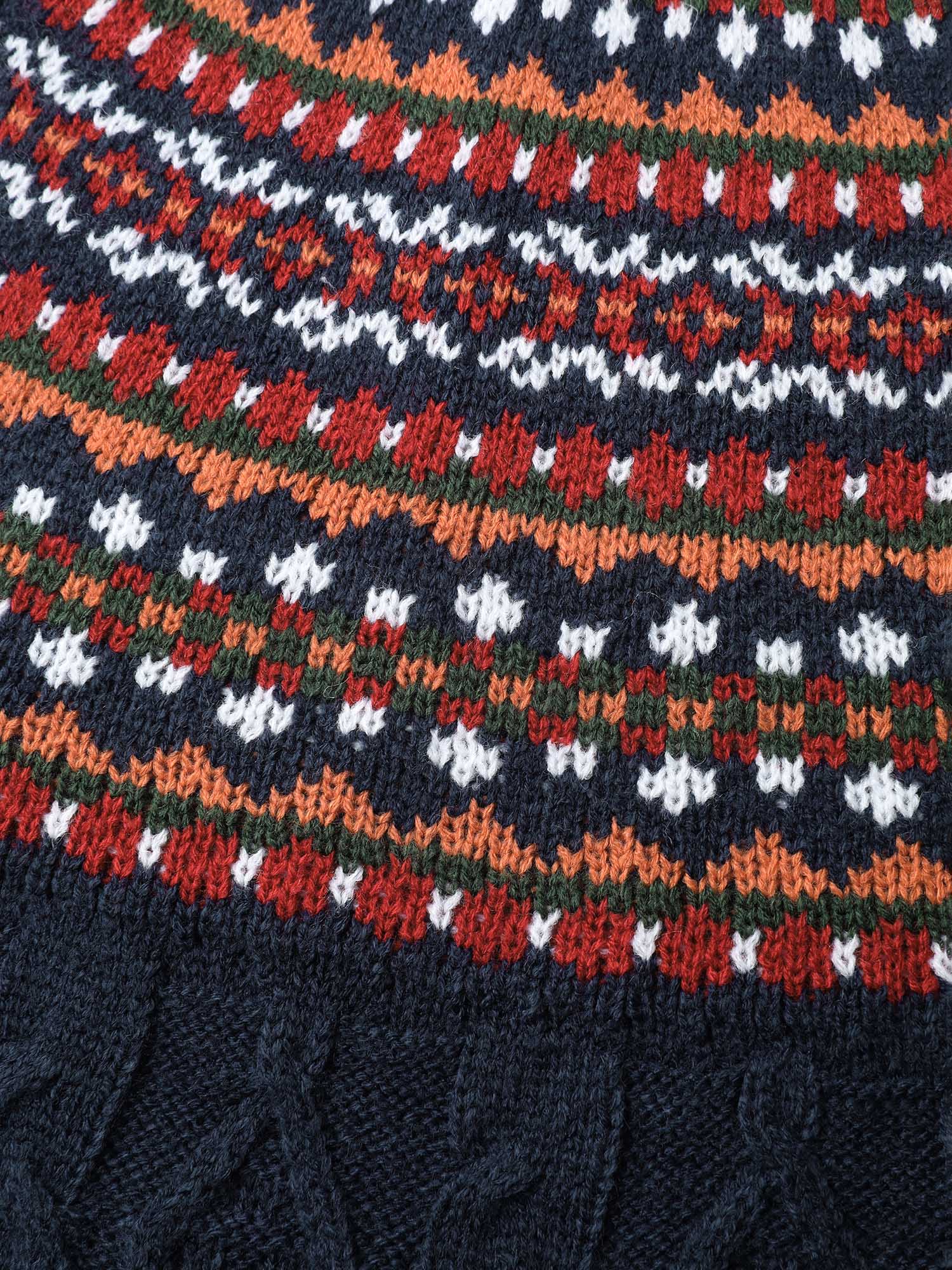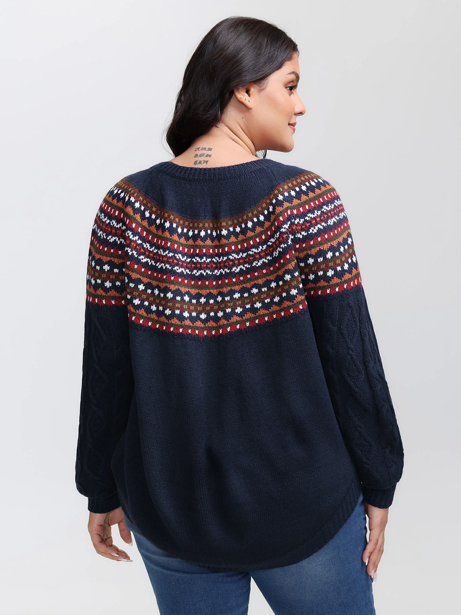 Cable Knit Boho Print Curvy Hem Pullover
