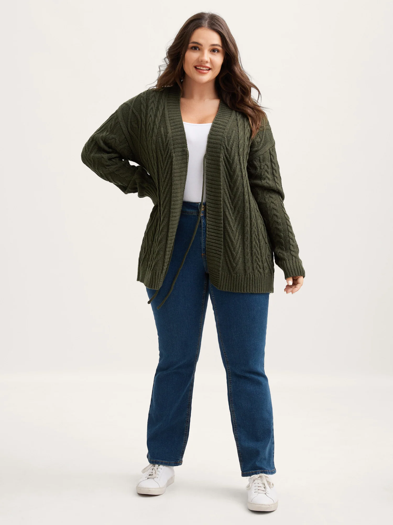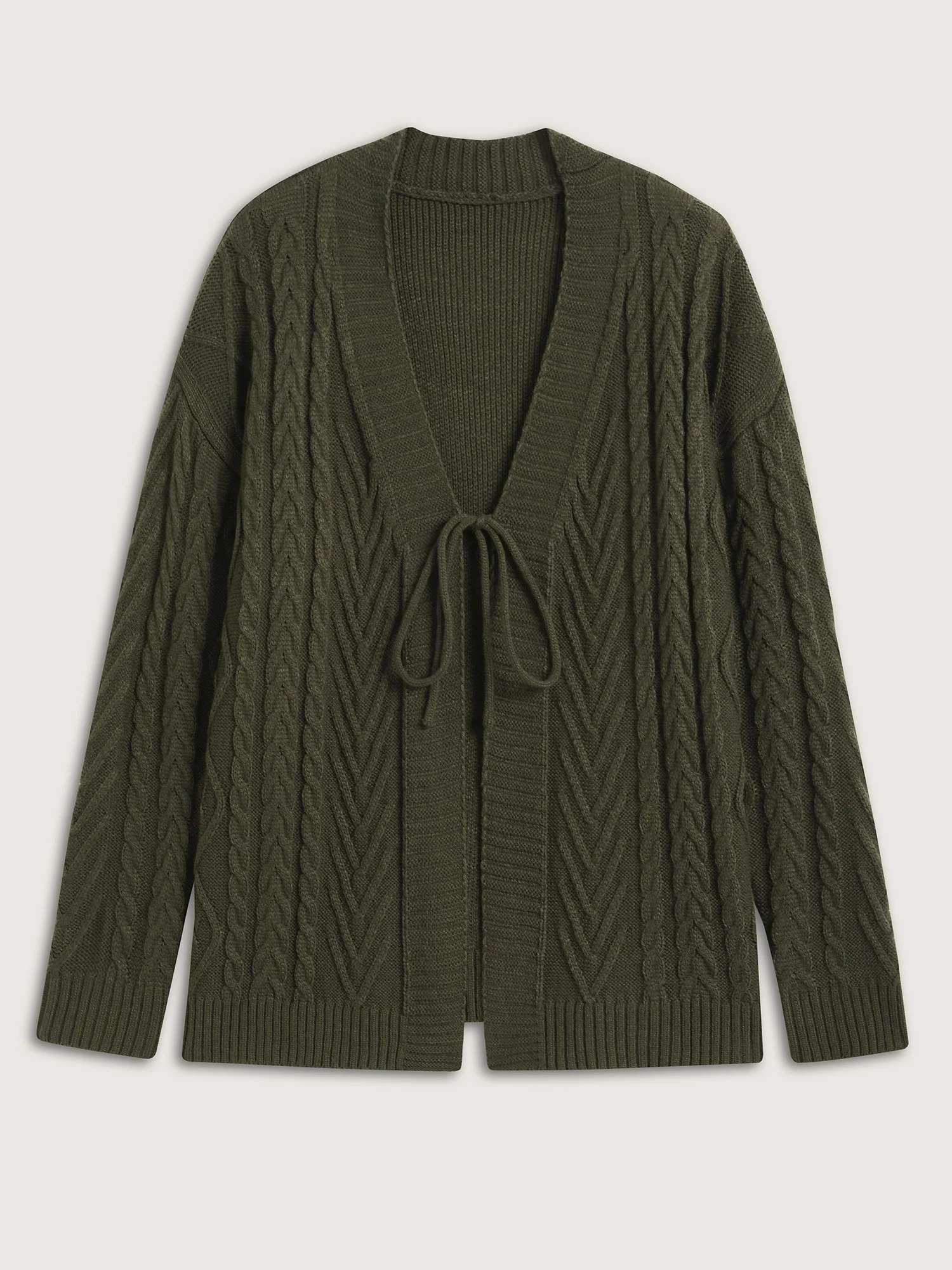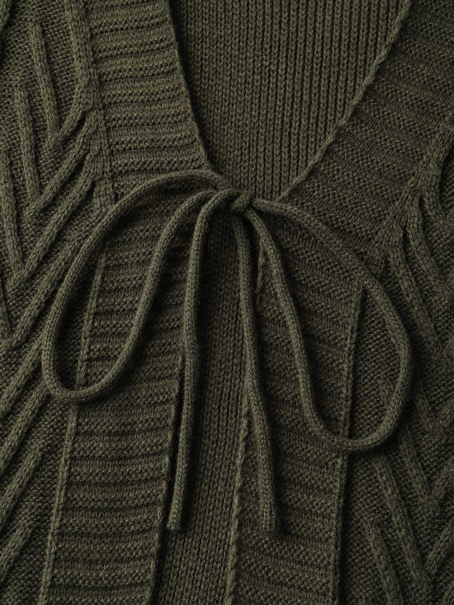 Textured Front-Tie Ribbed Hem Knit Cardigan
