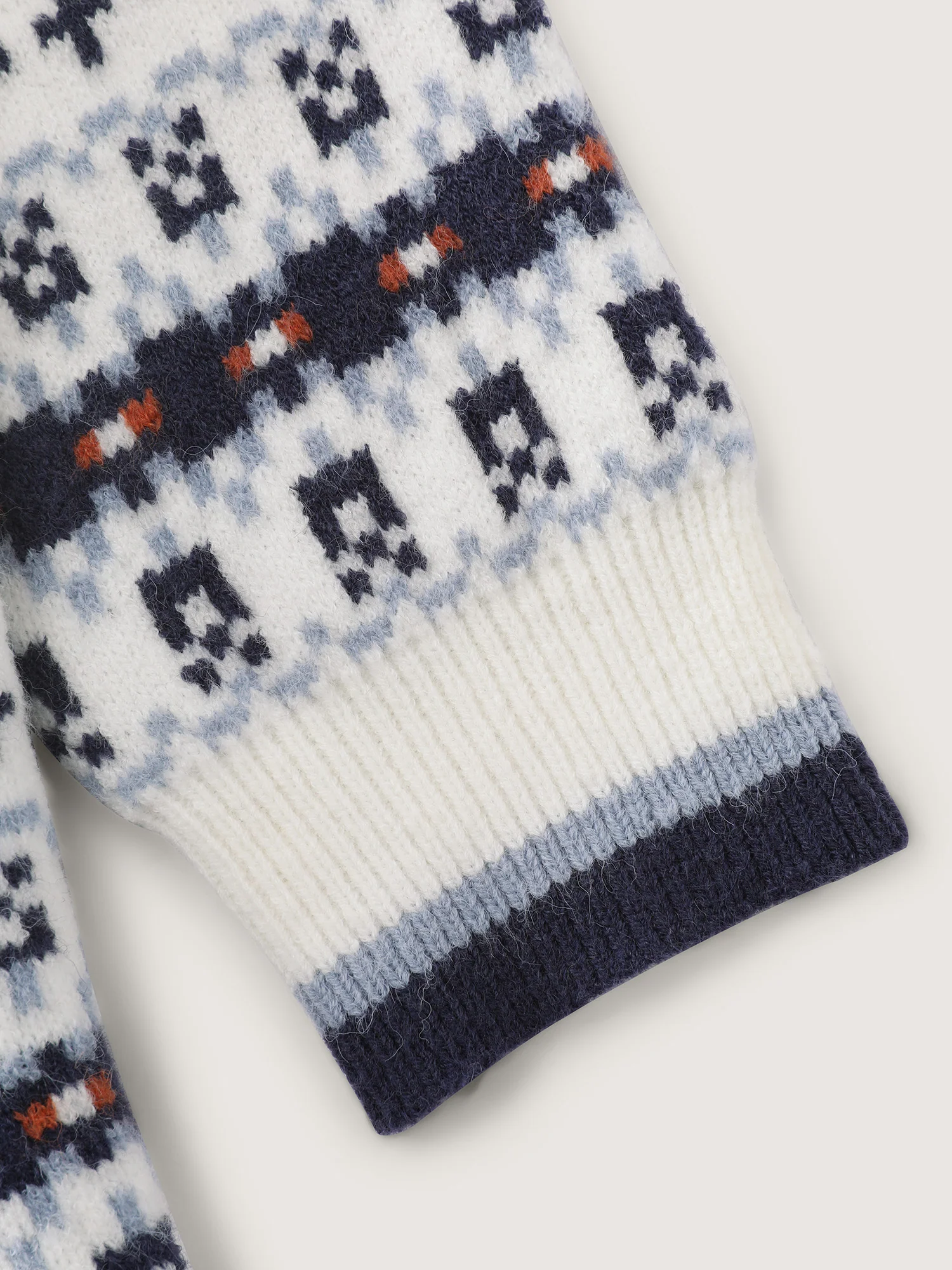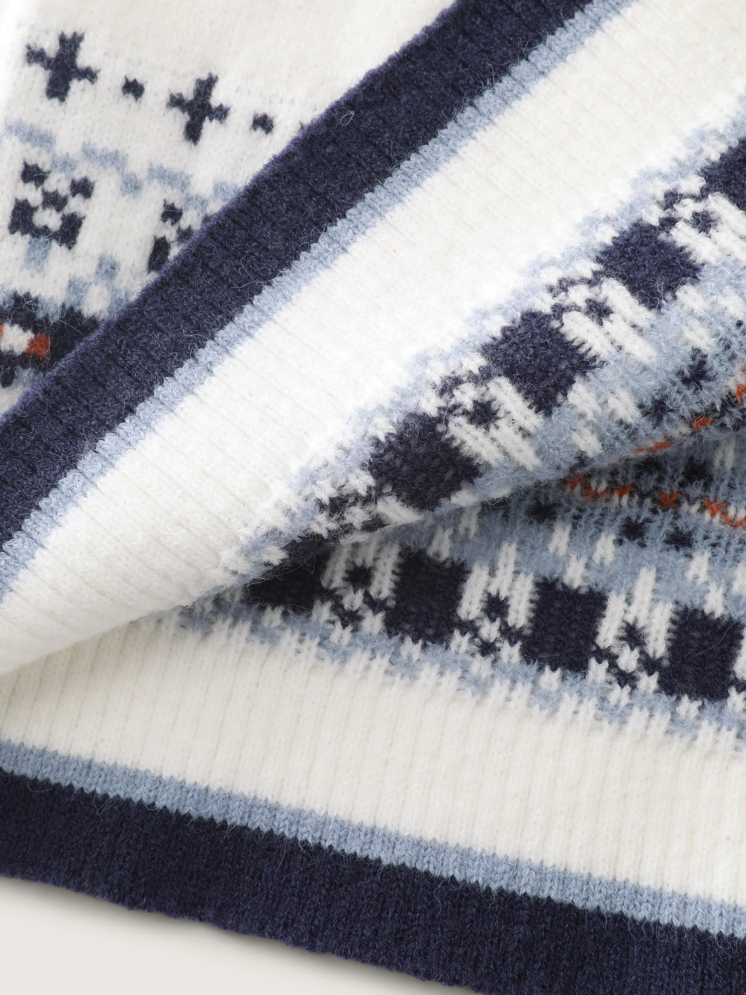Citrus Pattern Contrast Edge Ribbed Pullover