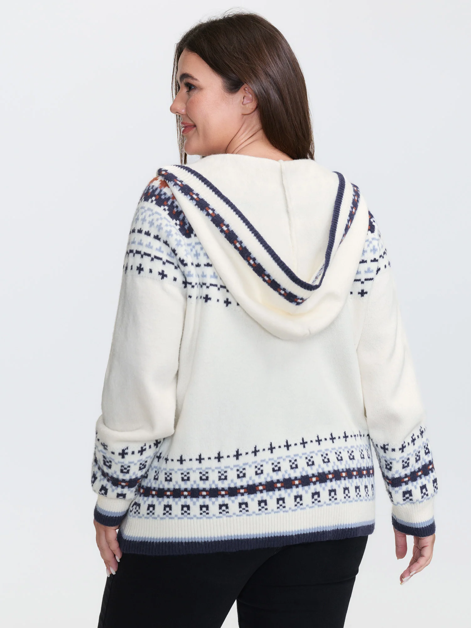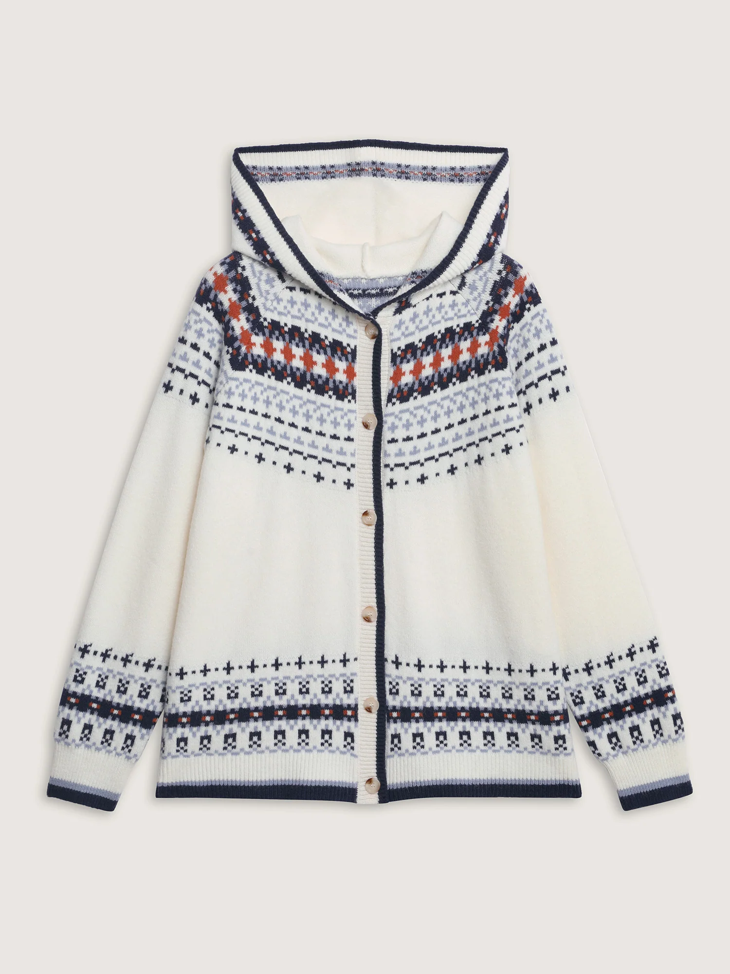 Hooded Jacquard Pattern Button Knit Cardigan