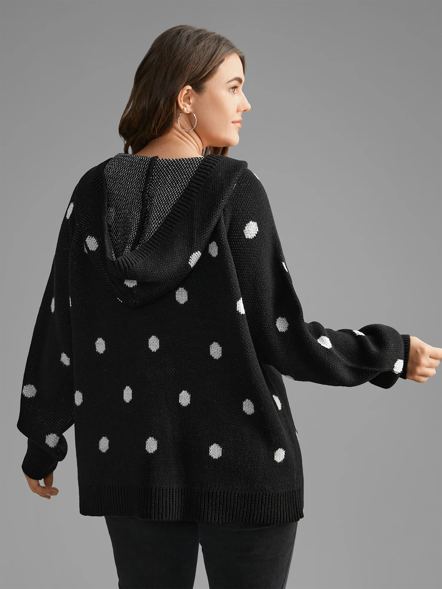 Polka Dot Hooded Patch Pocket Pullover