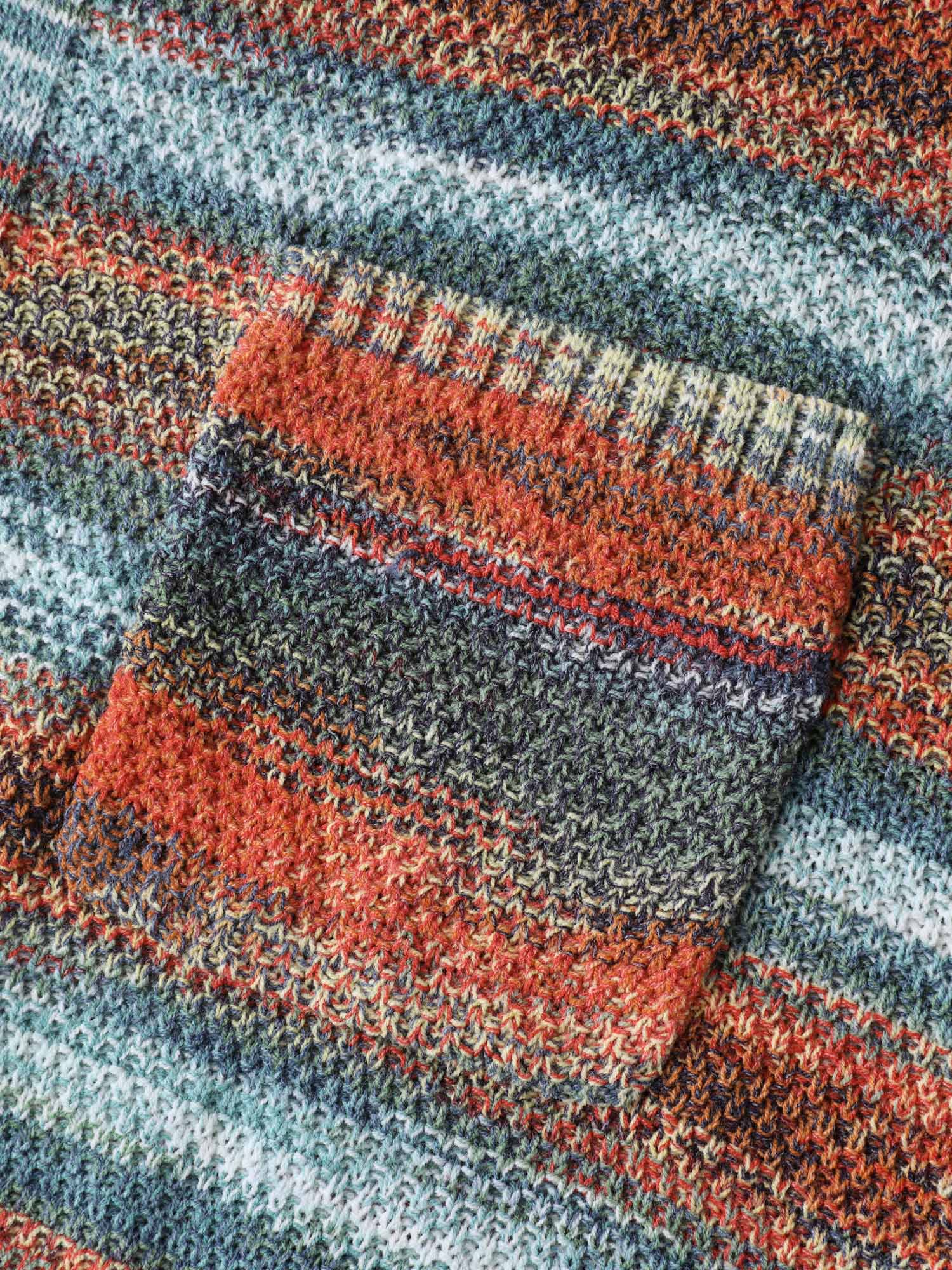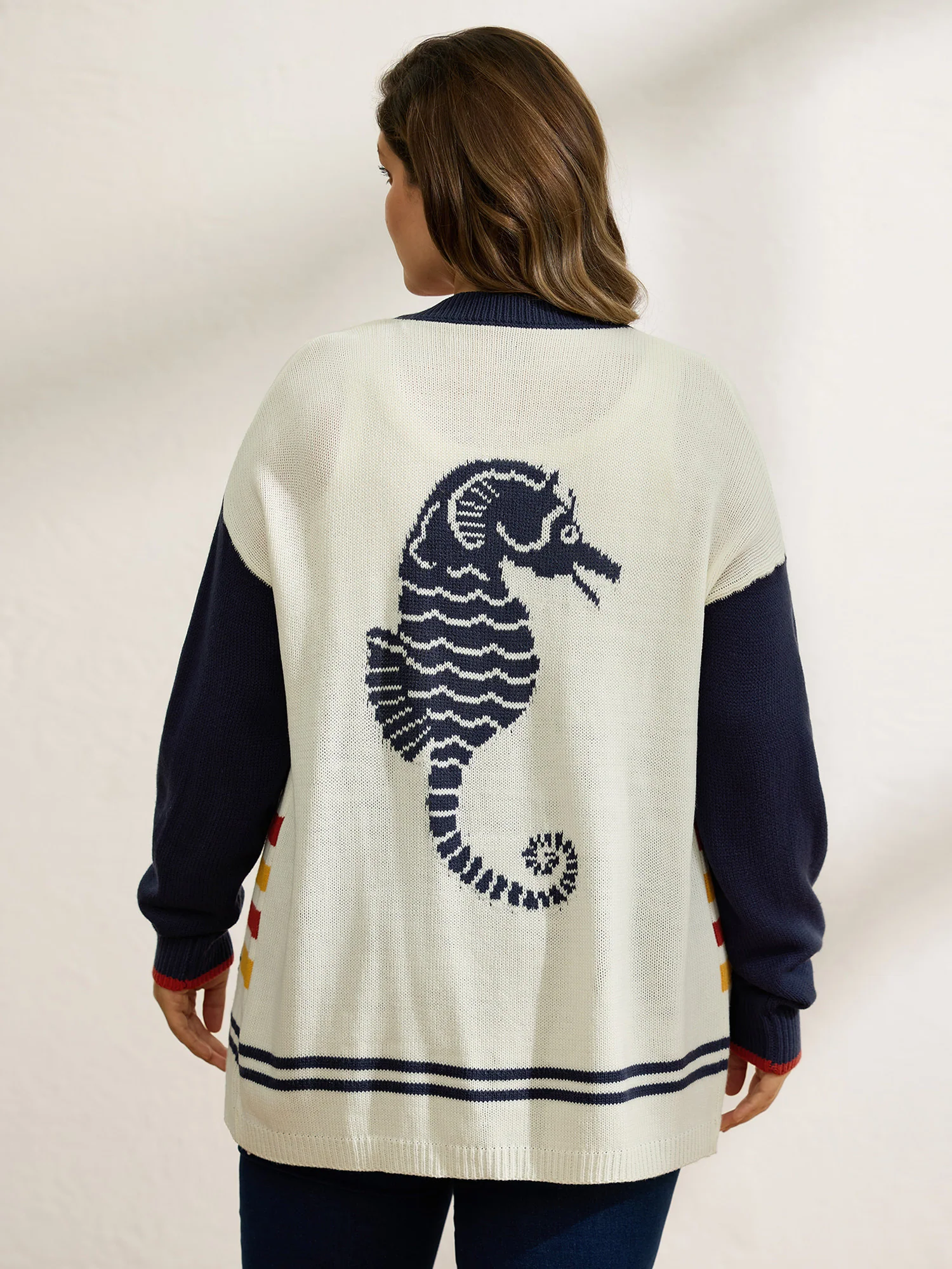 Colorful Stripe Seahorse Motif Jacquard Knit Cardigan