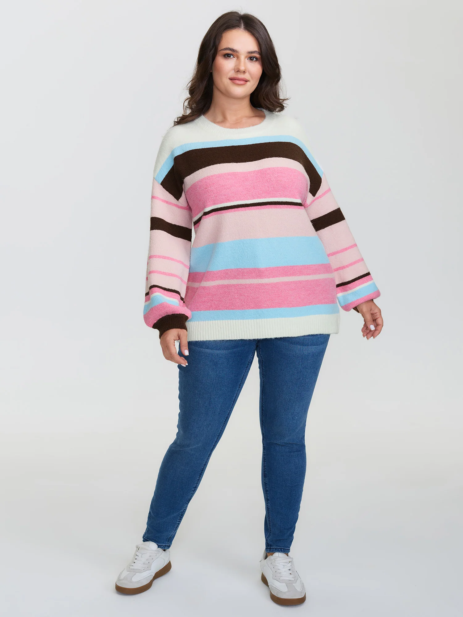 Colorful Stripes Drop Shoulder Lantern Sleeve Pullover