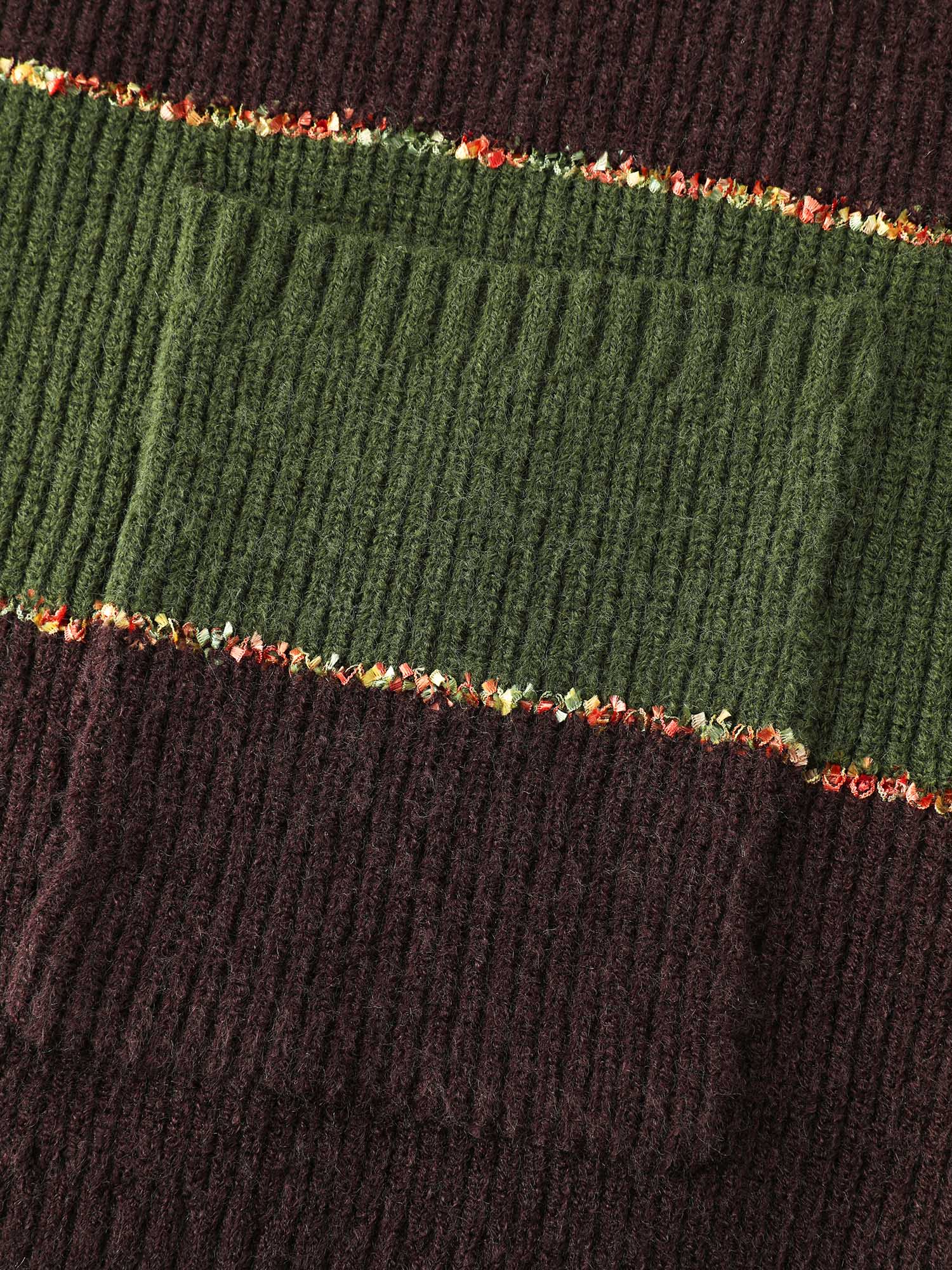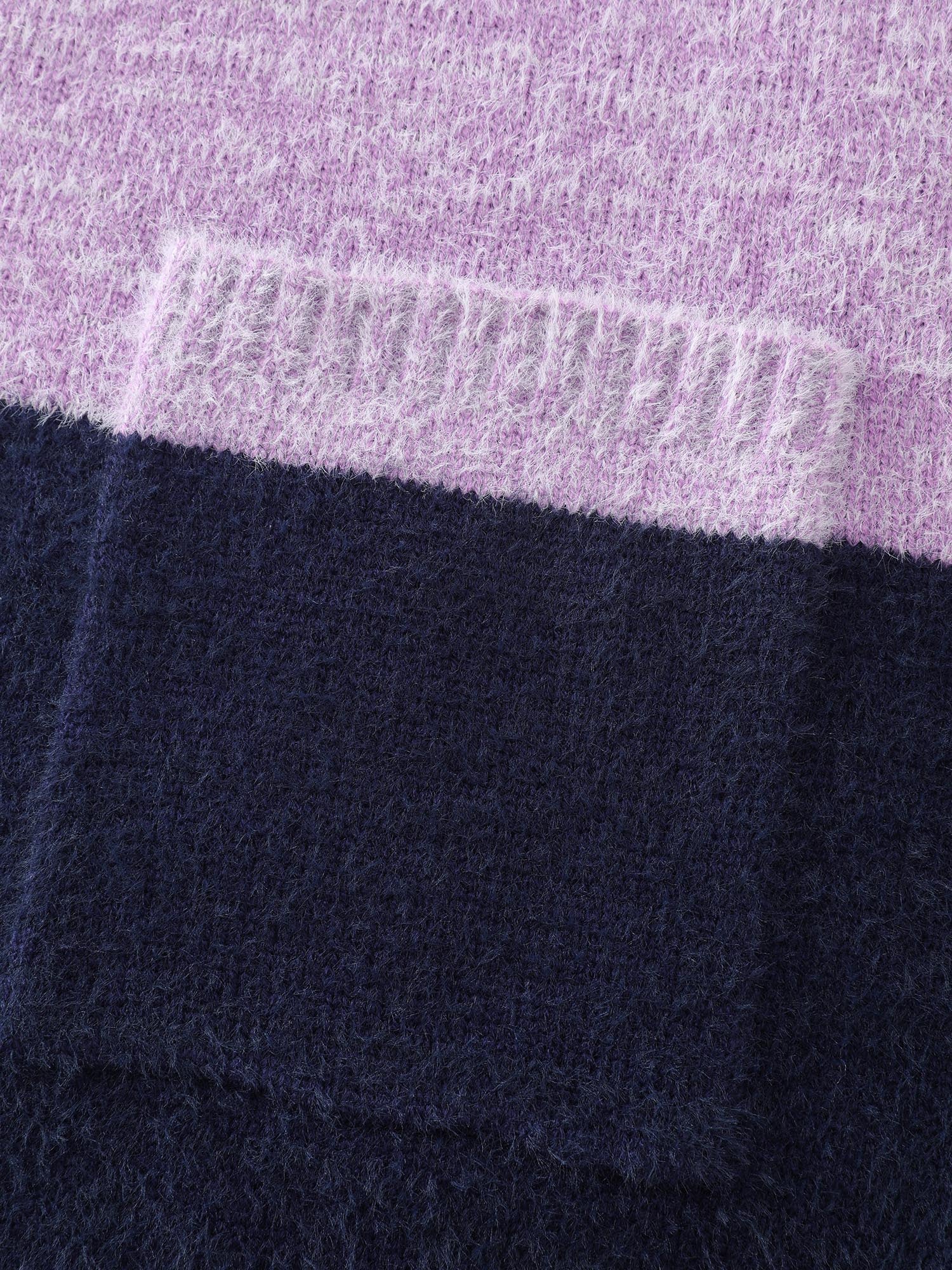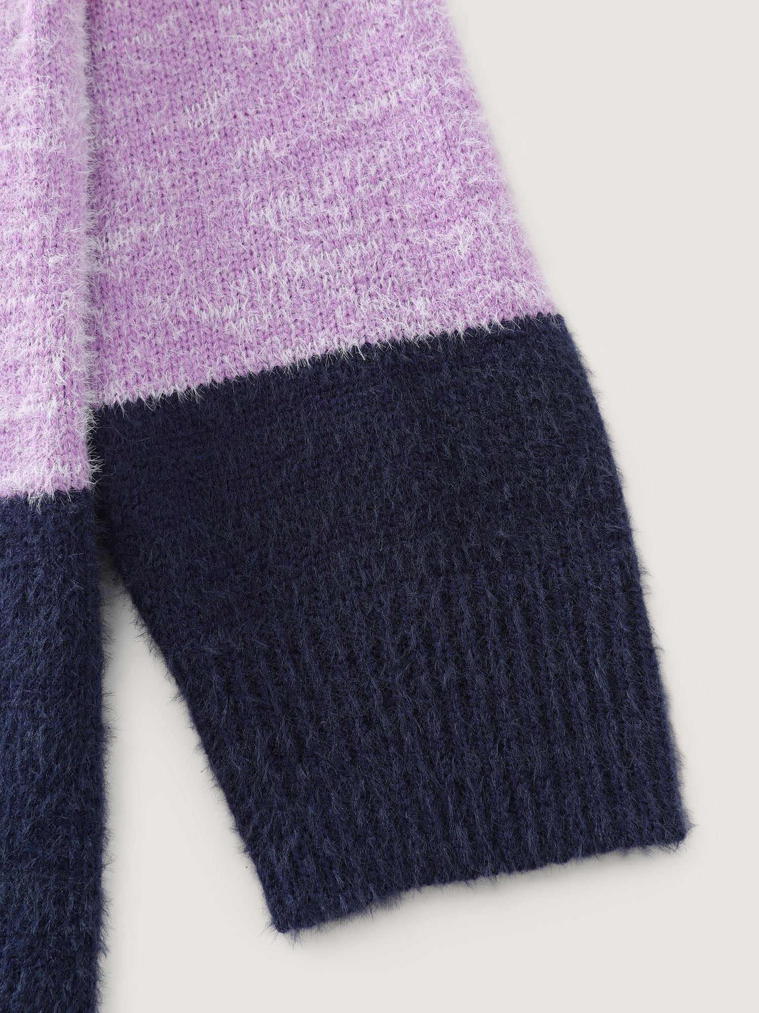 Furry Textured Colorblock Knit Cardigan