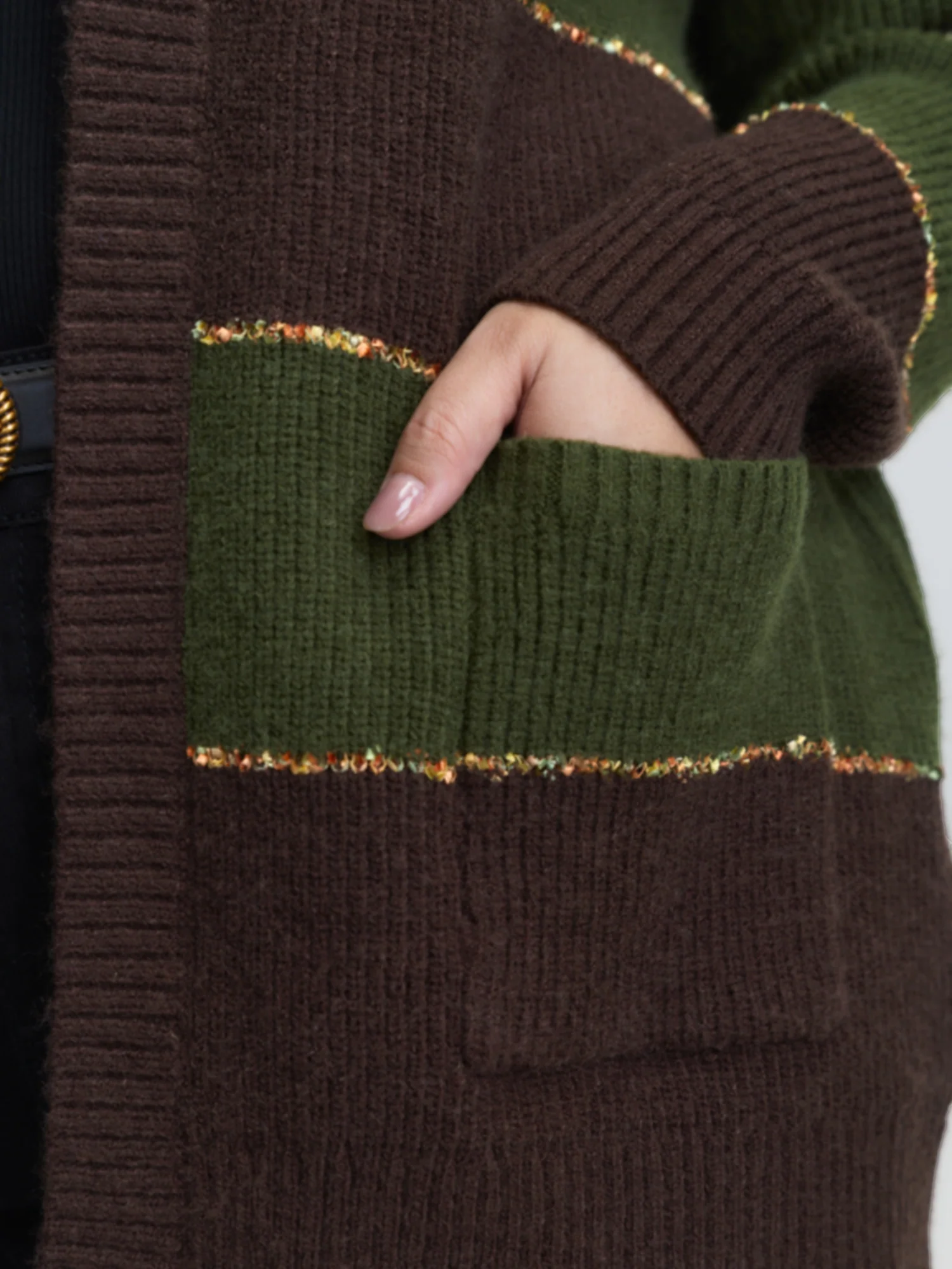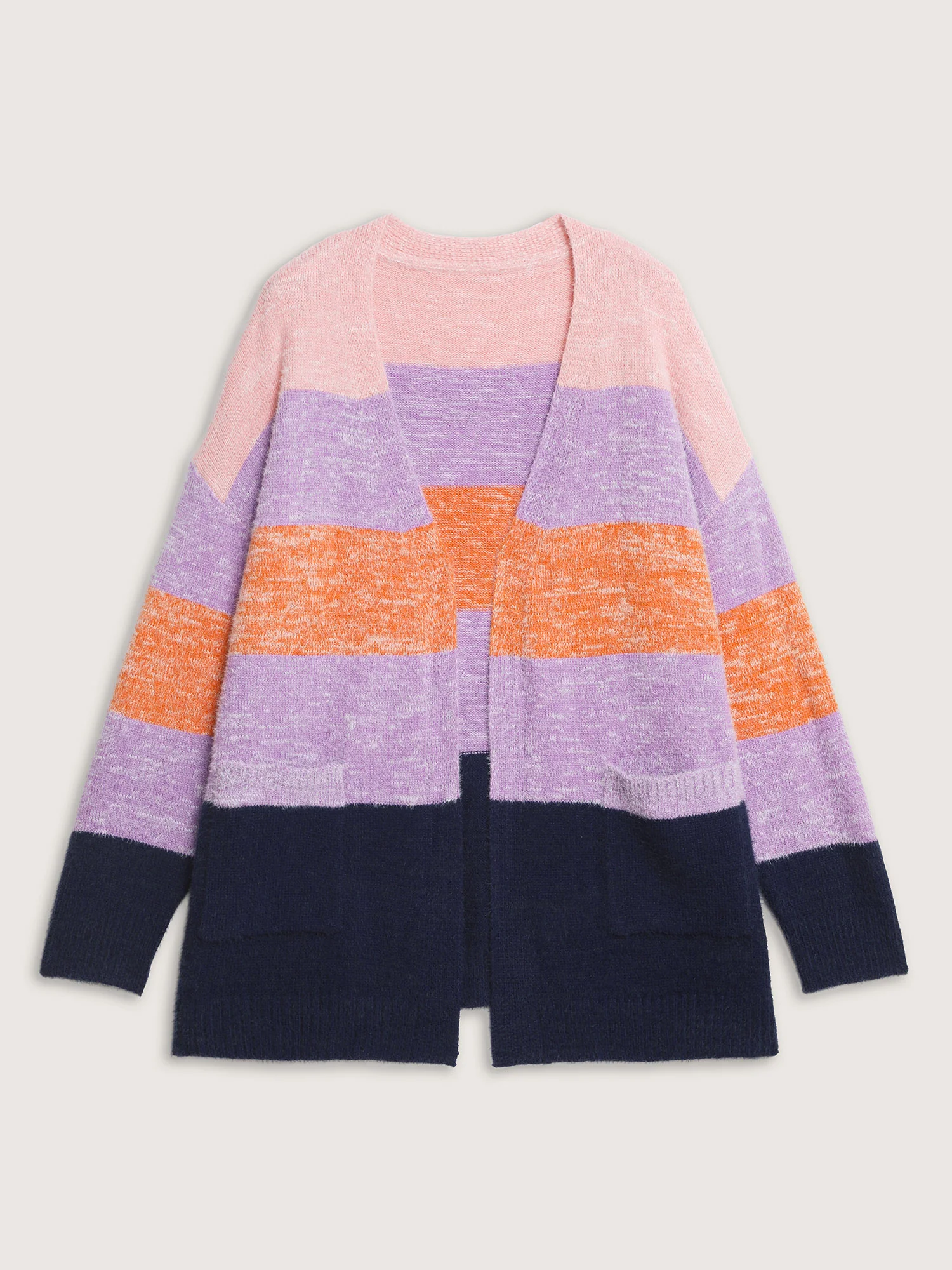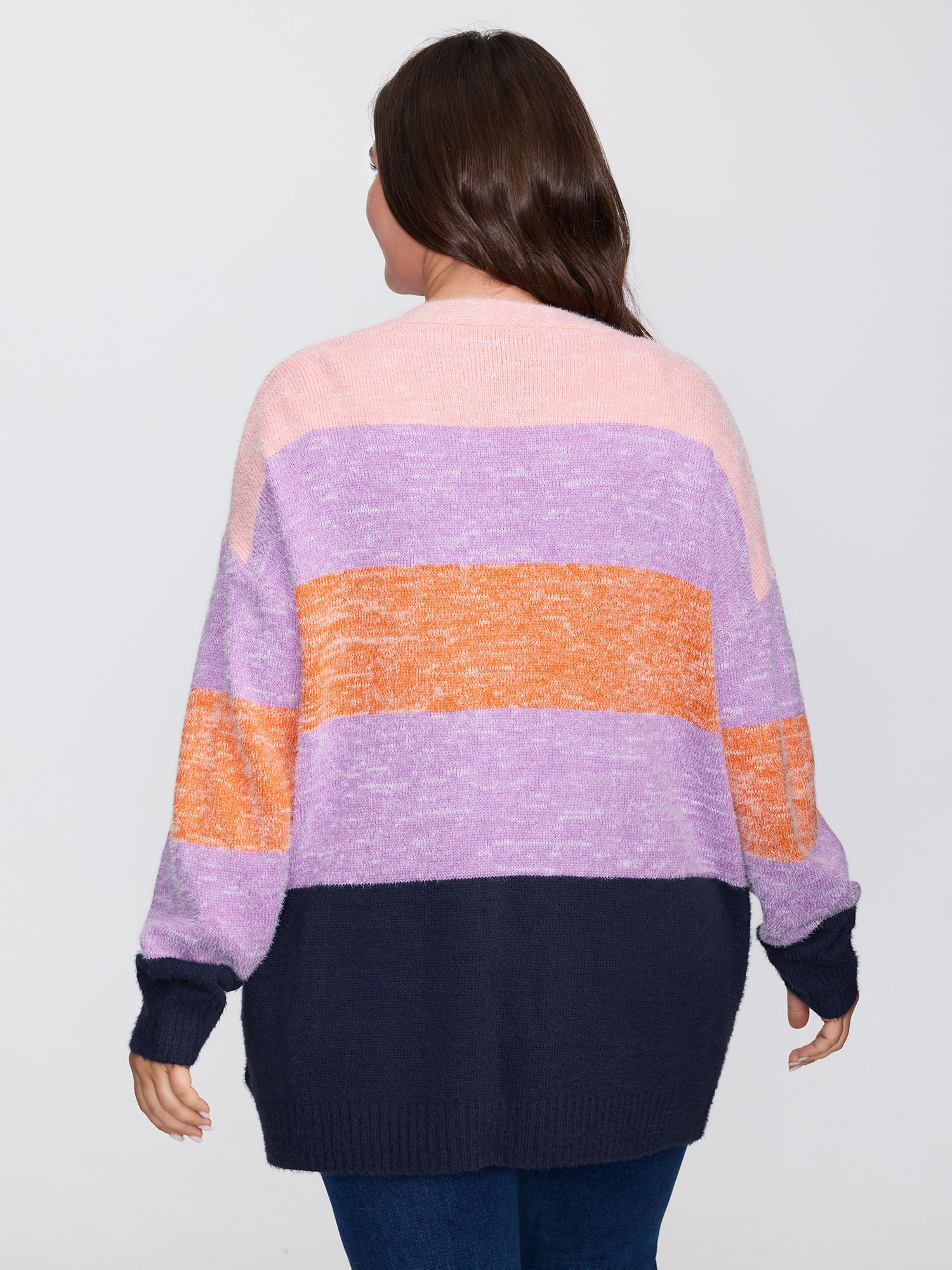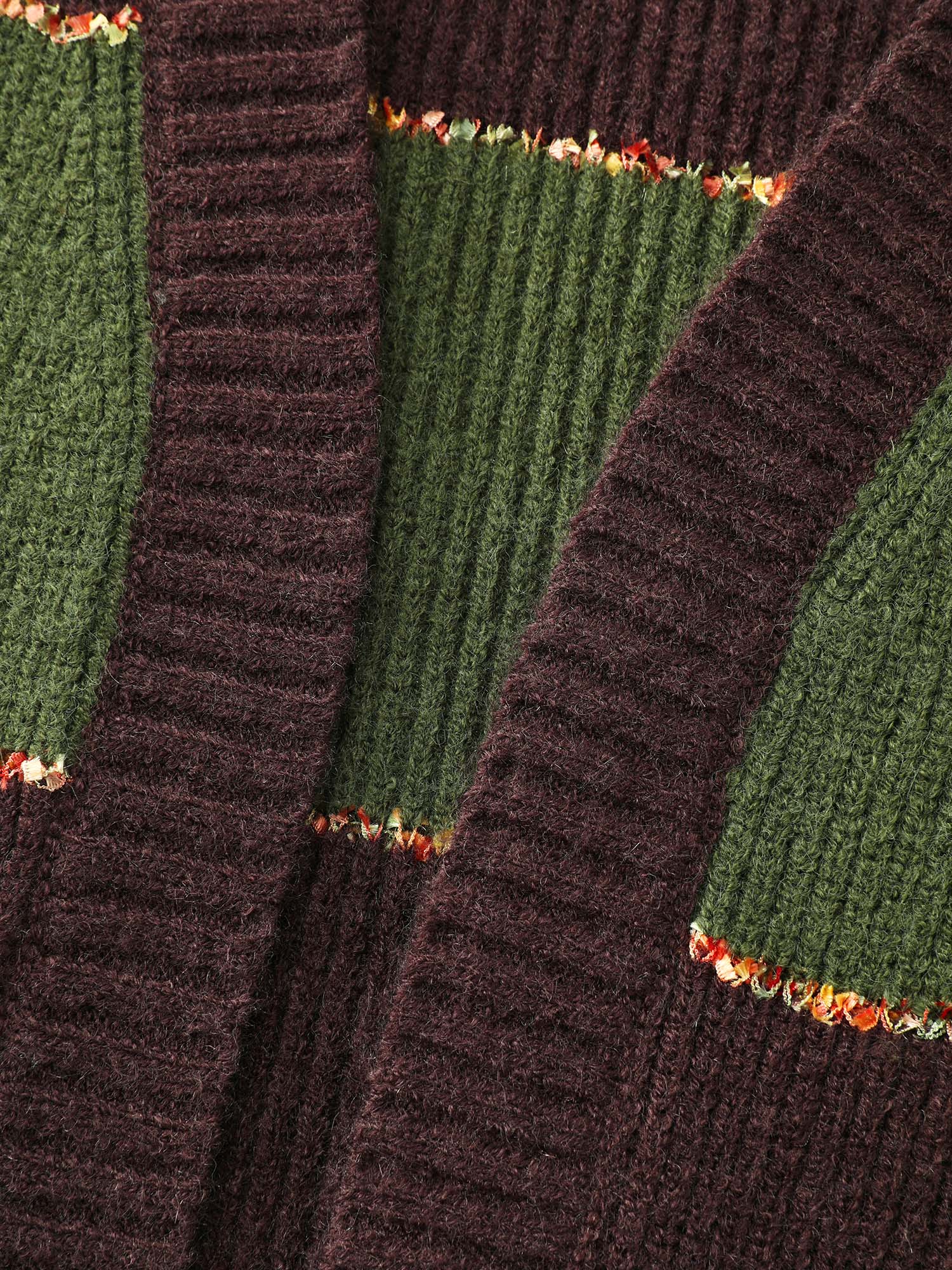 Furry Textured Colorblock Knit Cardigan