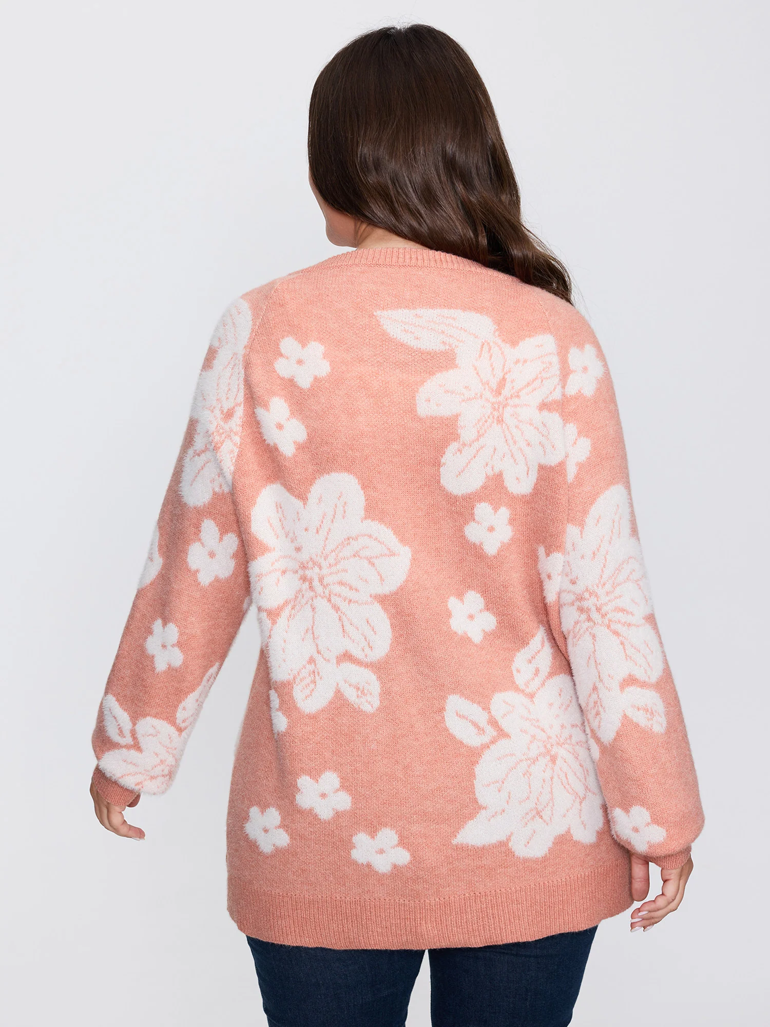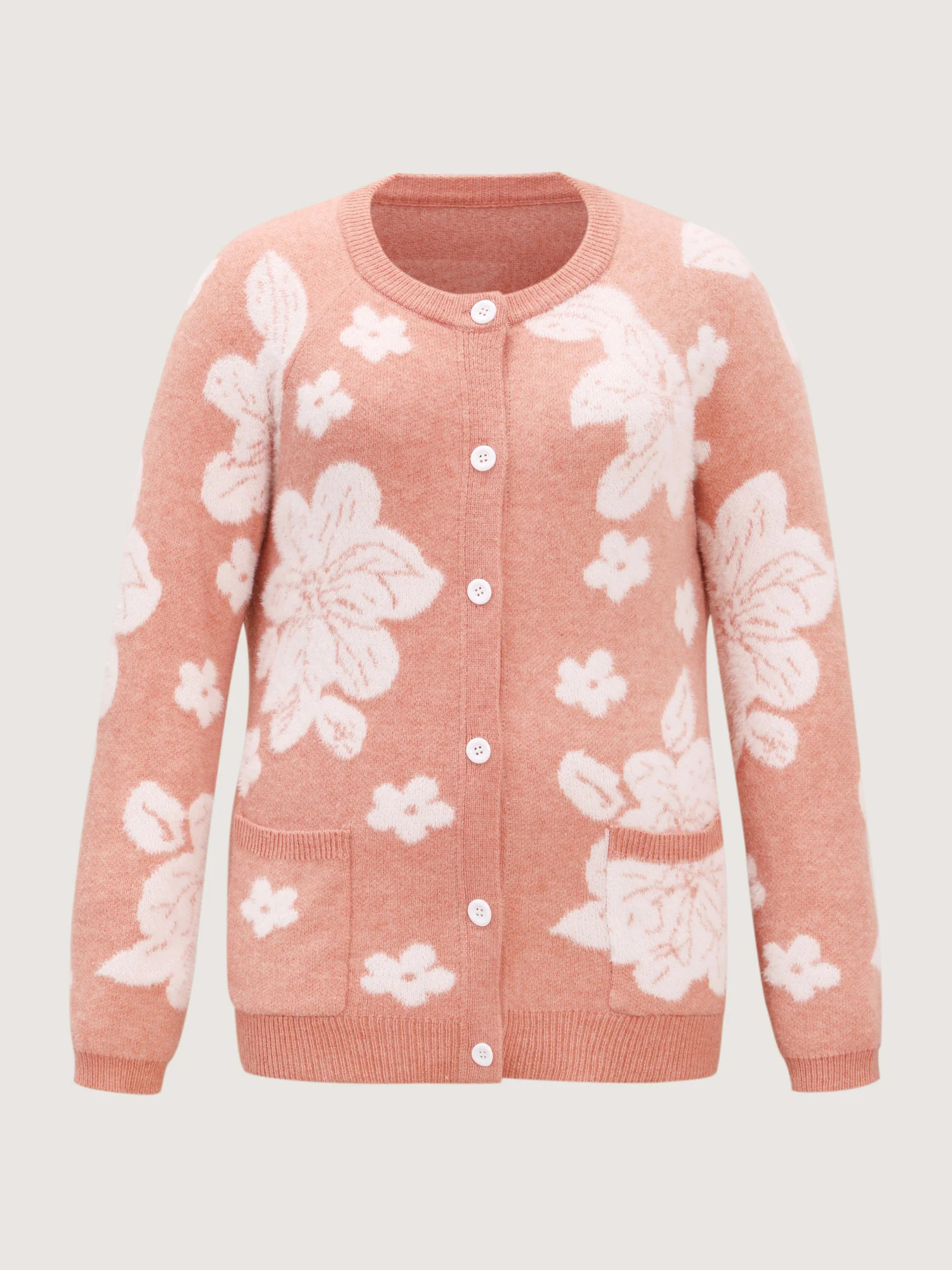 Supersoft Floral Pattern Round Neck Stretchy Knit Cardigan