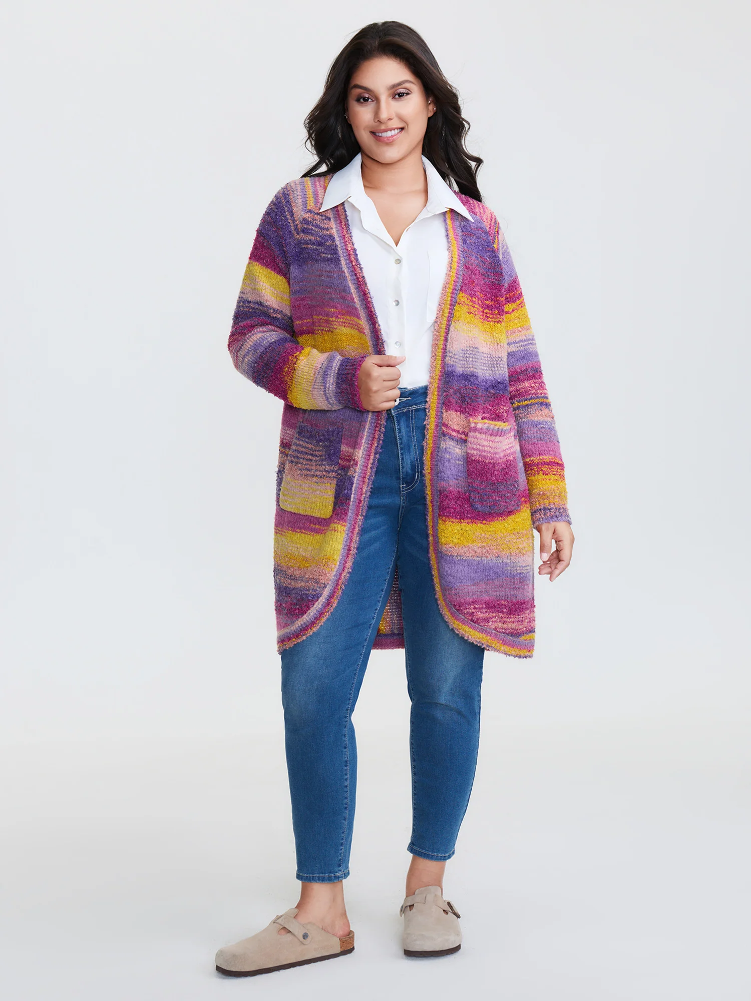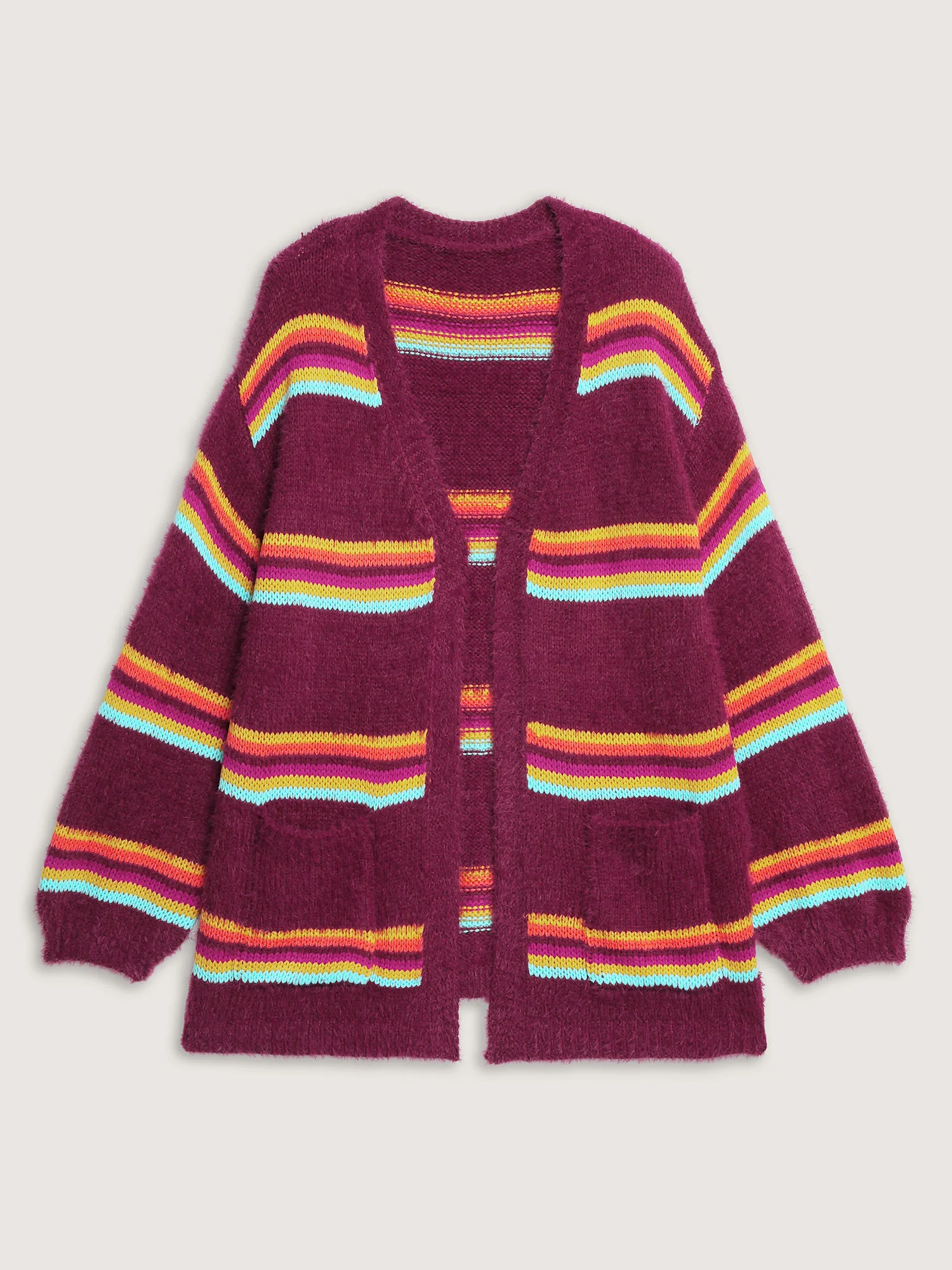 Colorful Stripe Furry Textured Knit Cardigan