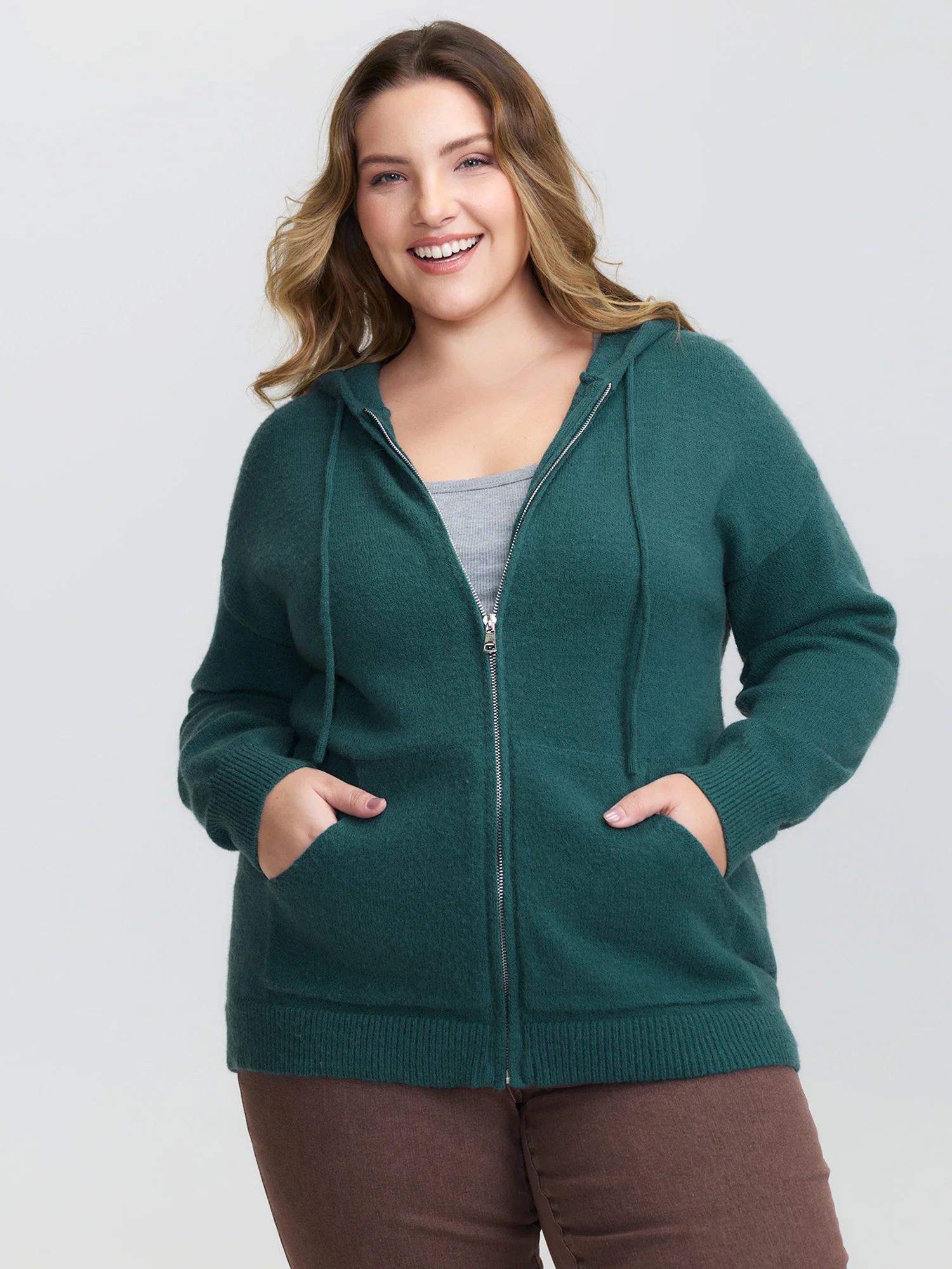 Supersoft Zipper Pockets Hooded Knit Cardigan