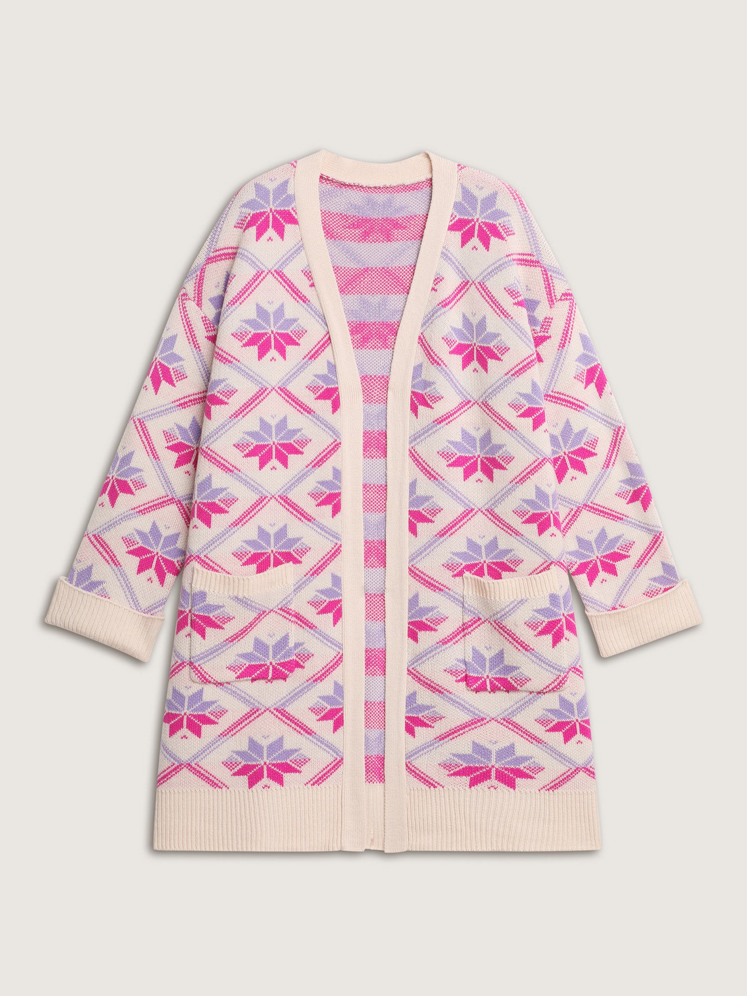 Geometric Snowflake Pattern Pockets Knit Cardigan