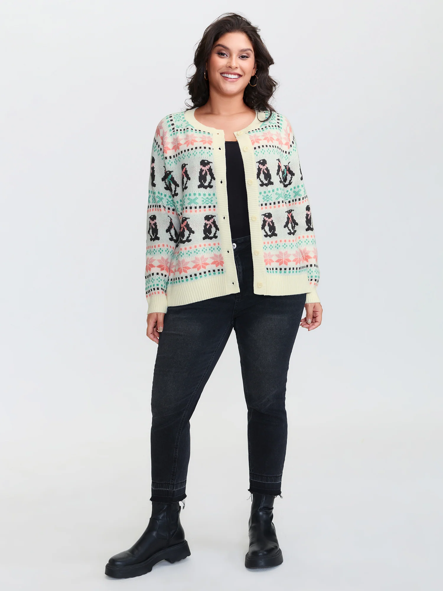 Supersoft Festive Penguin Pattern Jacquard Knit Cardigan