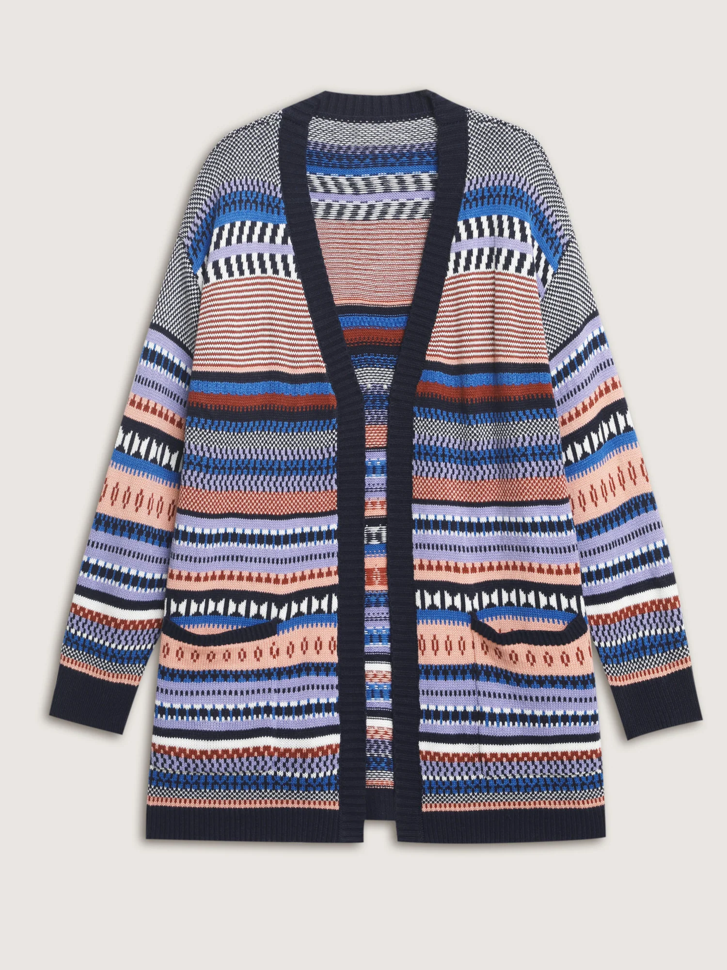 Multicolor Stripe Jacquard Pockets Knit Cardigan