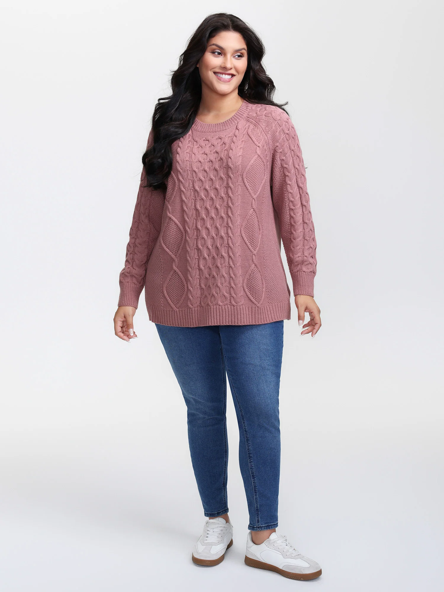Solid Round Neck Cable Knit Pullover