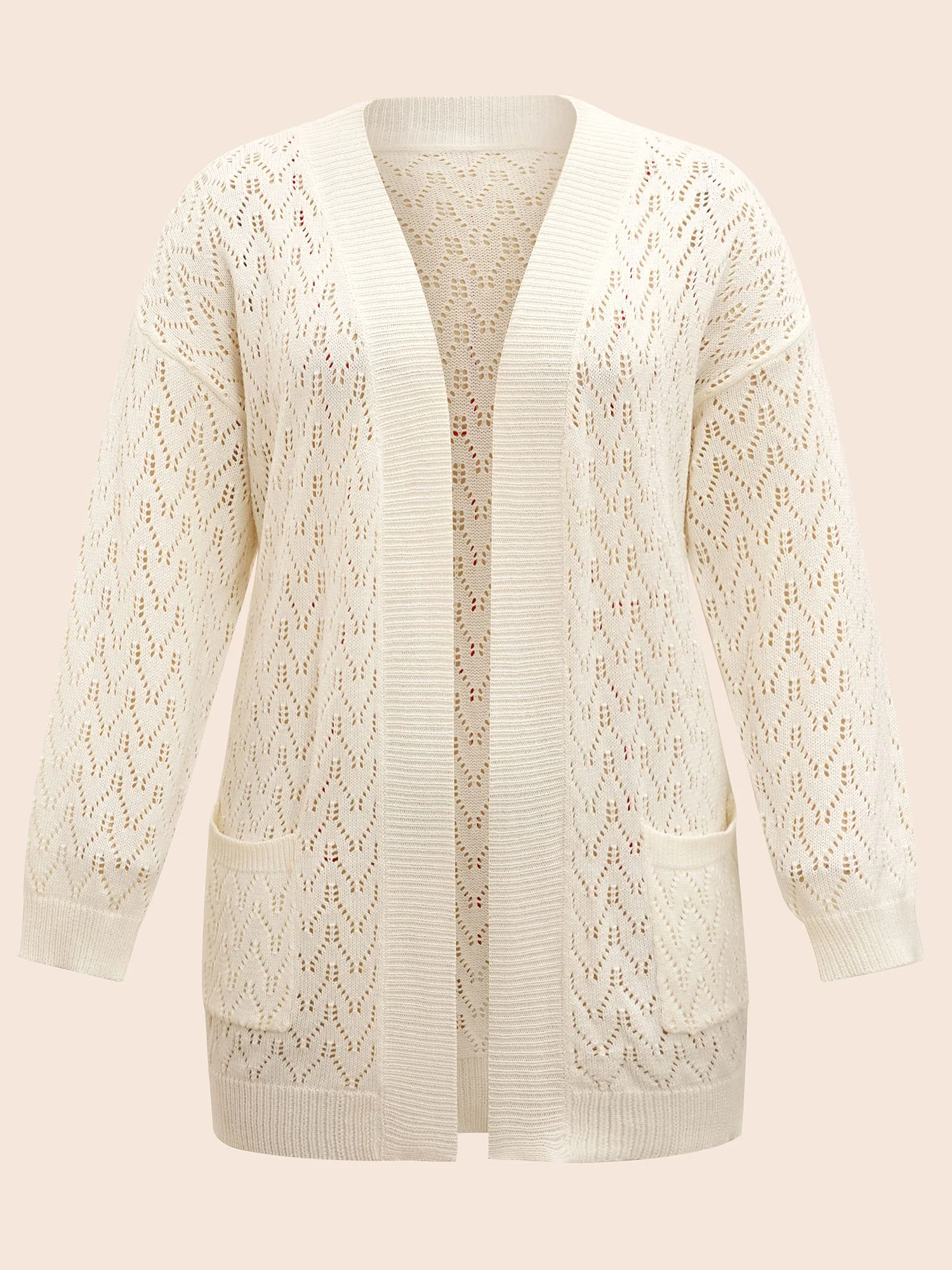 Kimono Collar Patch Pocket Pointelle Knit Cardigan