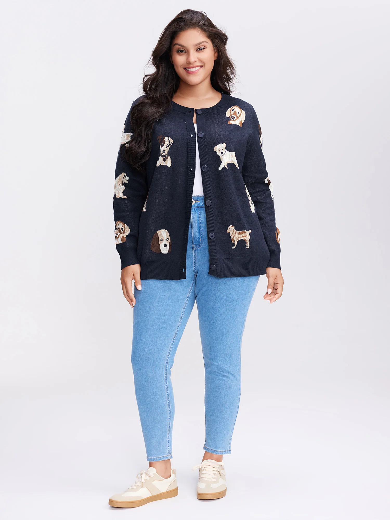 Supersoft Puppy Pattern Button Knit Cardigan