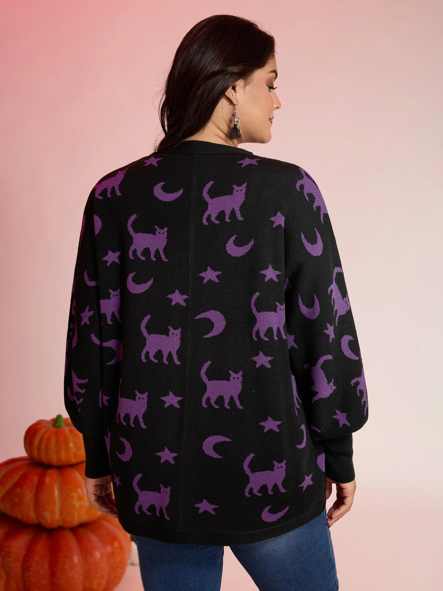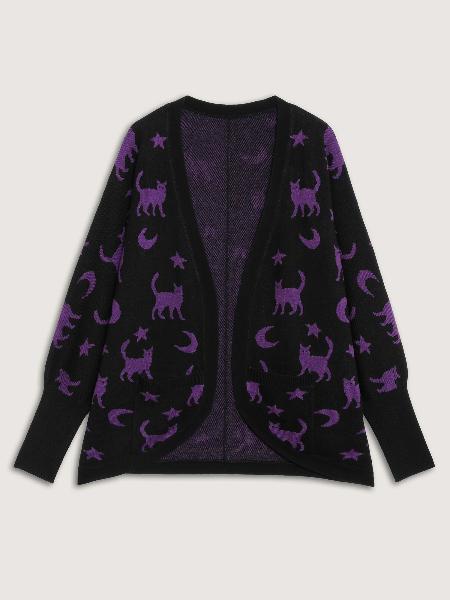 Halloween Jacquard Print Pockets Knit Cardigan