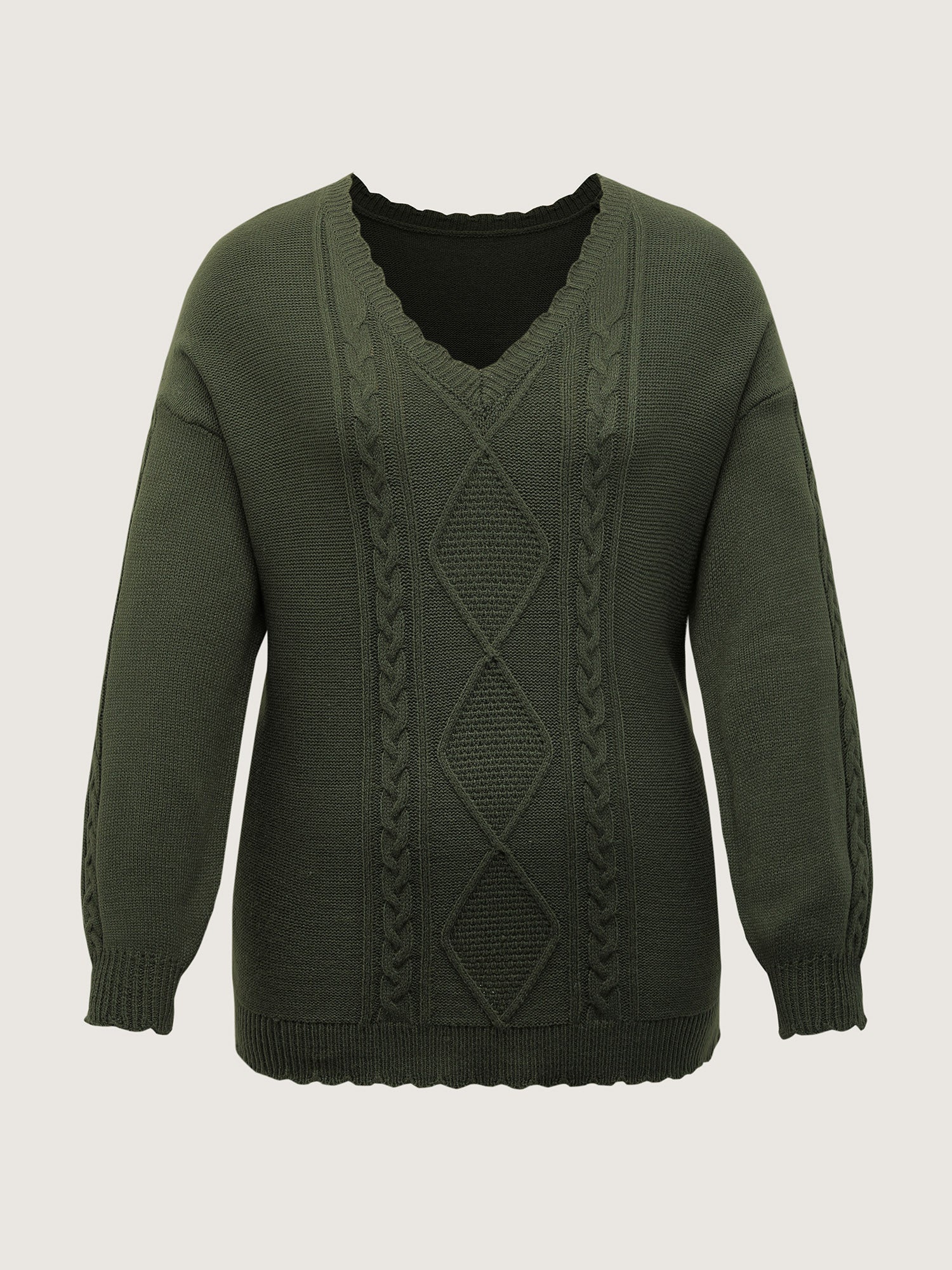 Cable Knit Textured V-Neck Pullover
