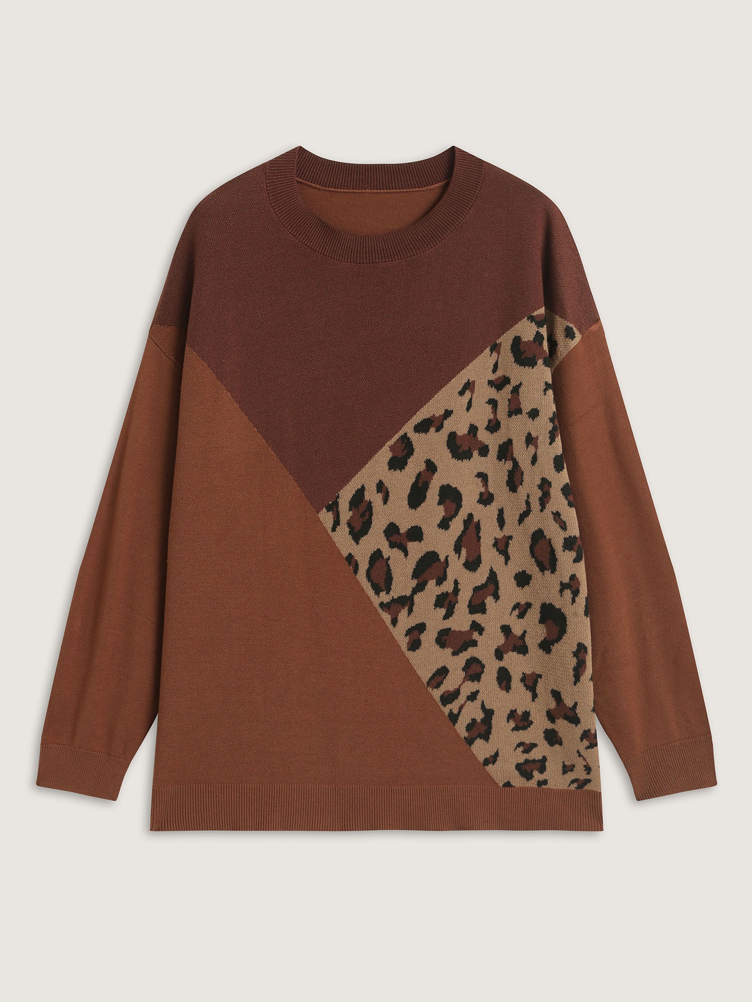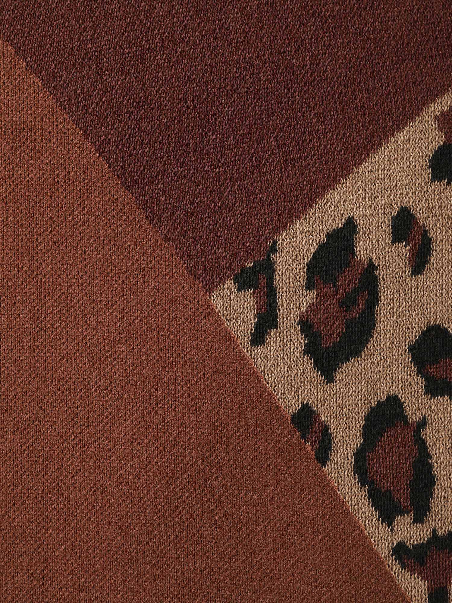 Leopard Jacquard Colorblock Pullover