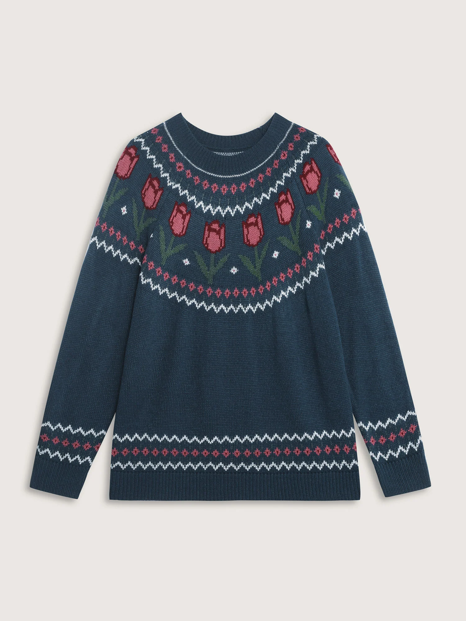 Floral Jacquard Color Contrast Pullover