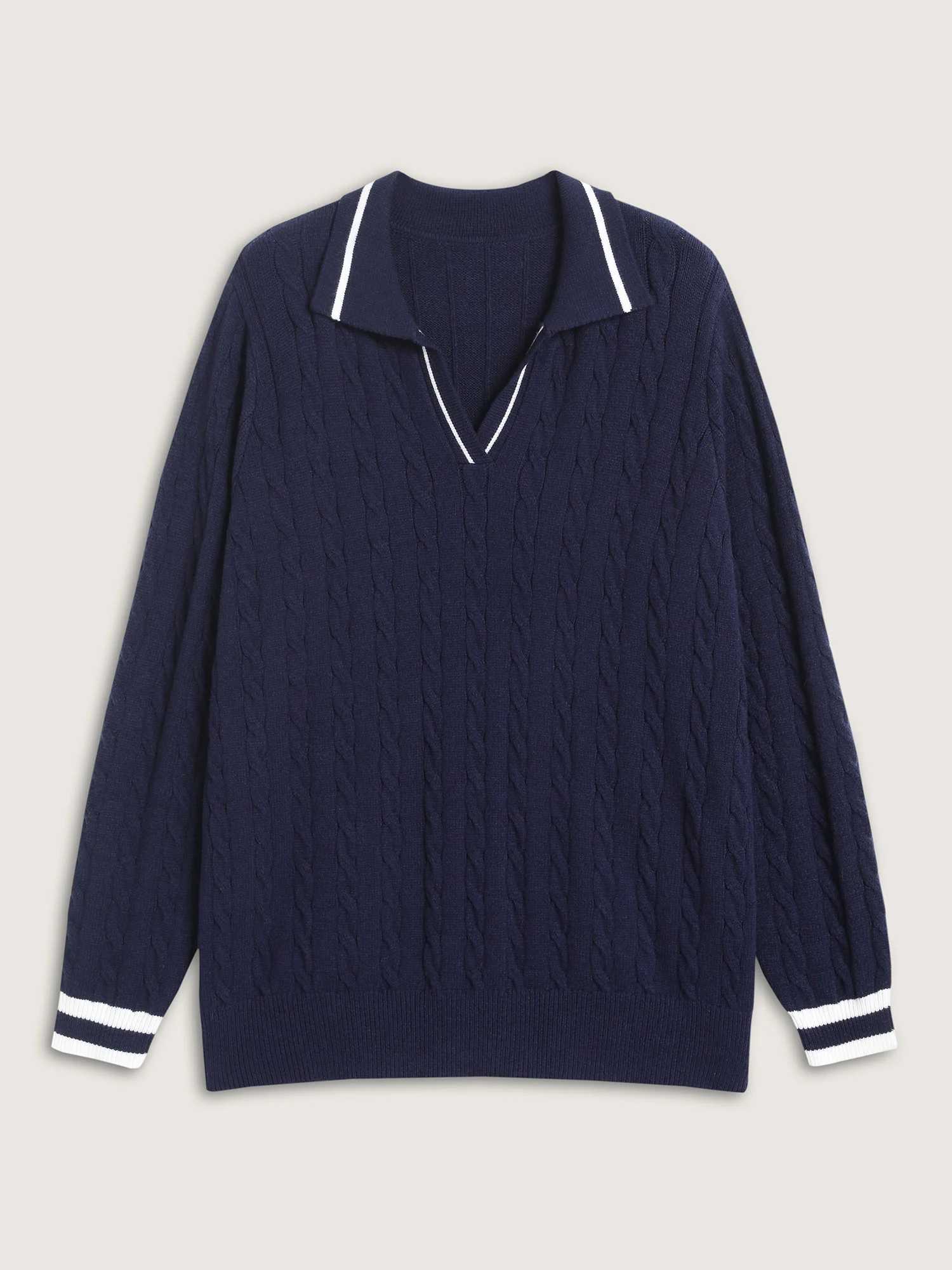 Supersoft Cable Knit Polo Collar Contrast Pullover