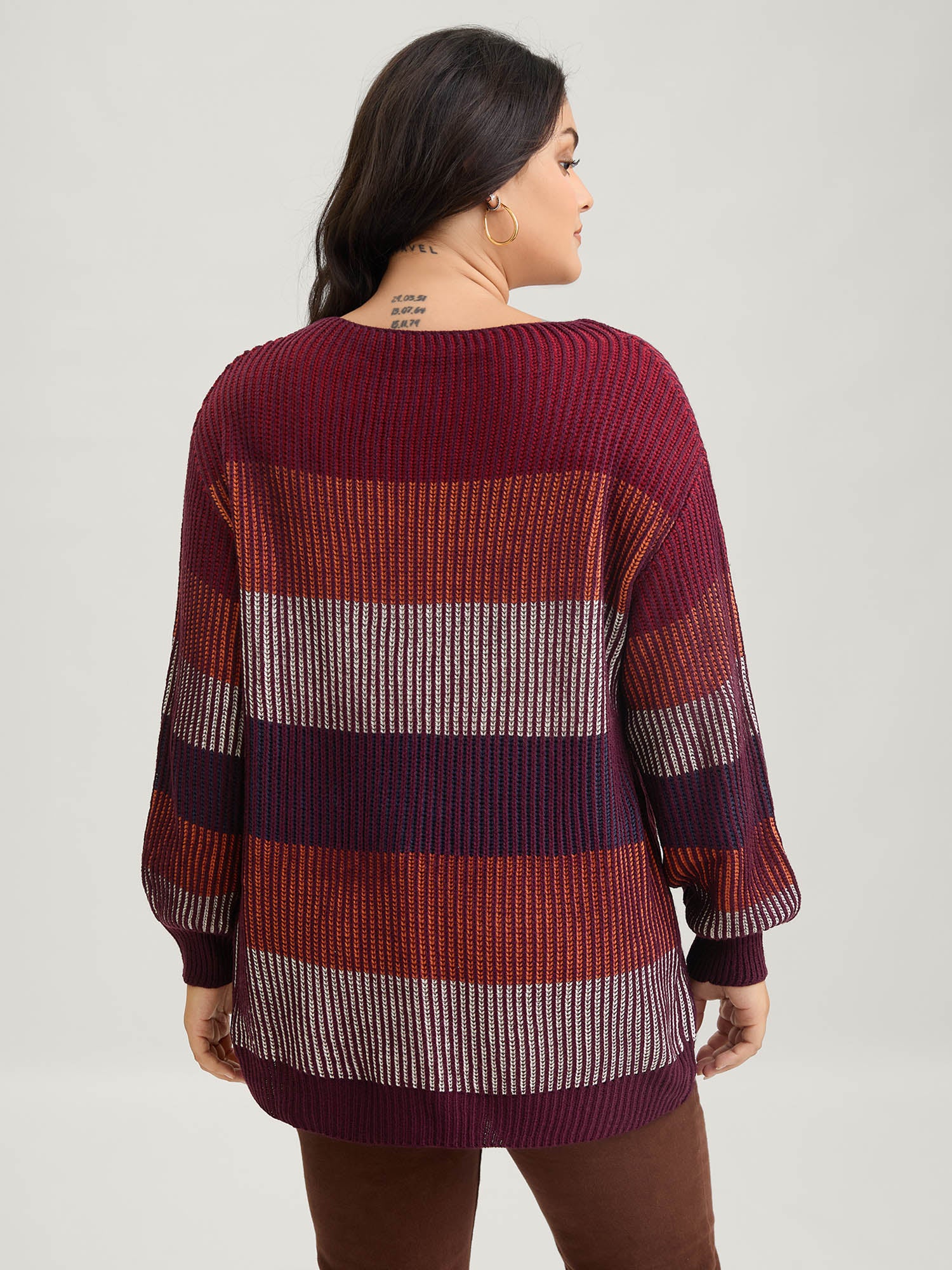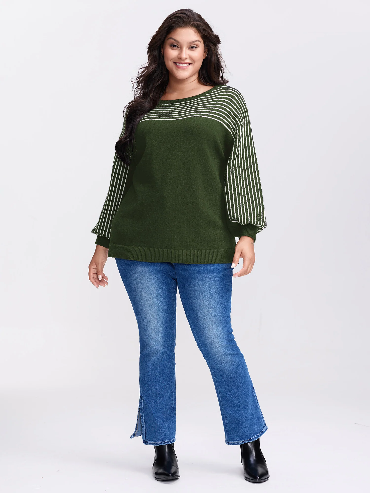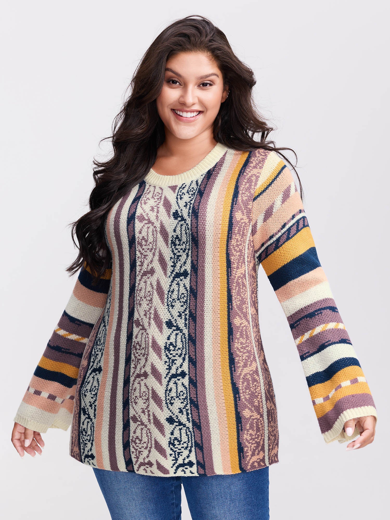 Boho Stripe Flared Sleeve Stretchy Pullover