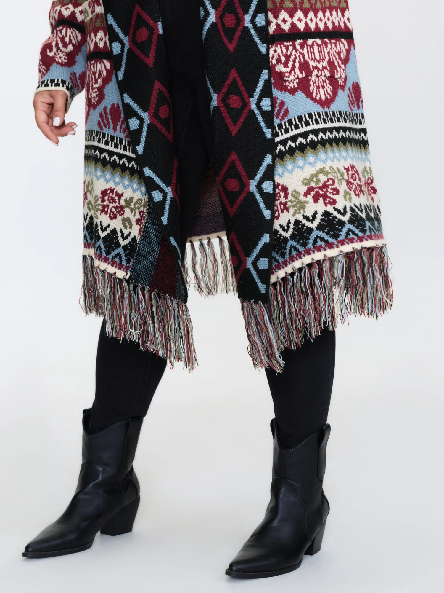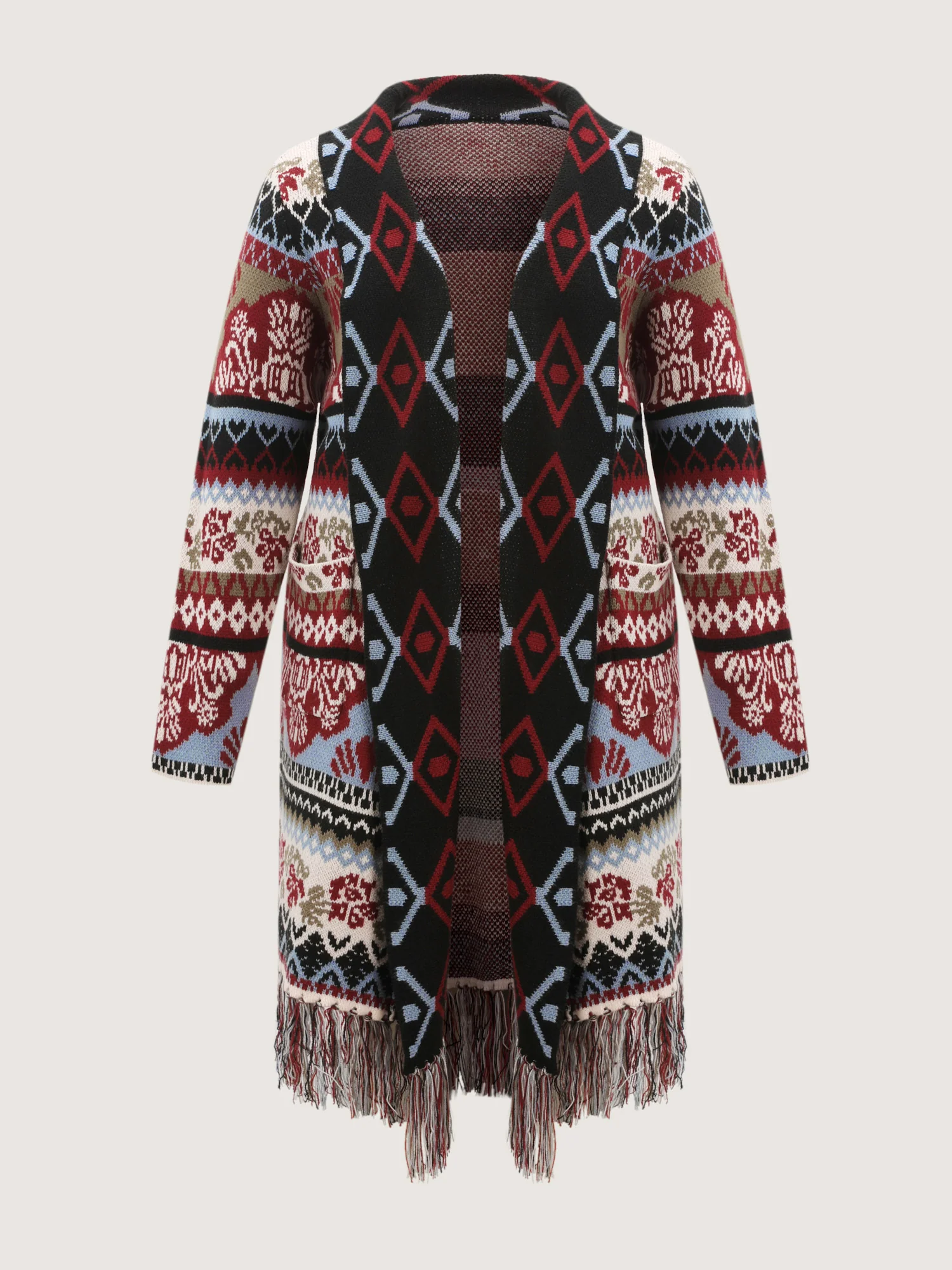 Fair-Isle Pattern Jacquard Fringes Knit Cardigan