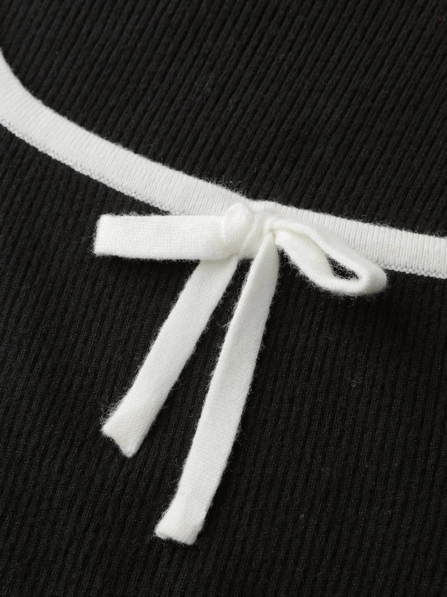Square Neck Bowknot Fitted Pullover