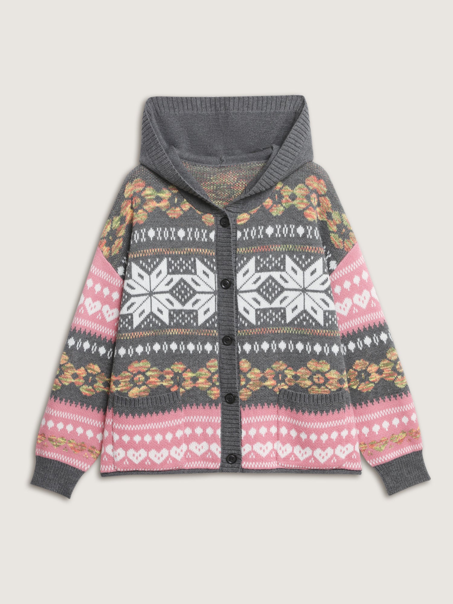 Fair-Isle Pattern Jacquard Knit Cardigan