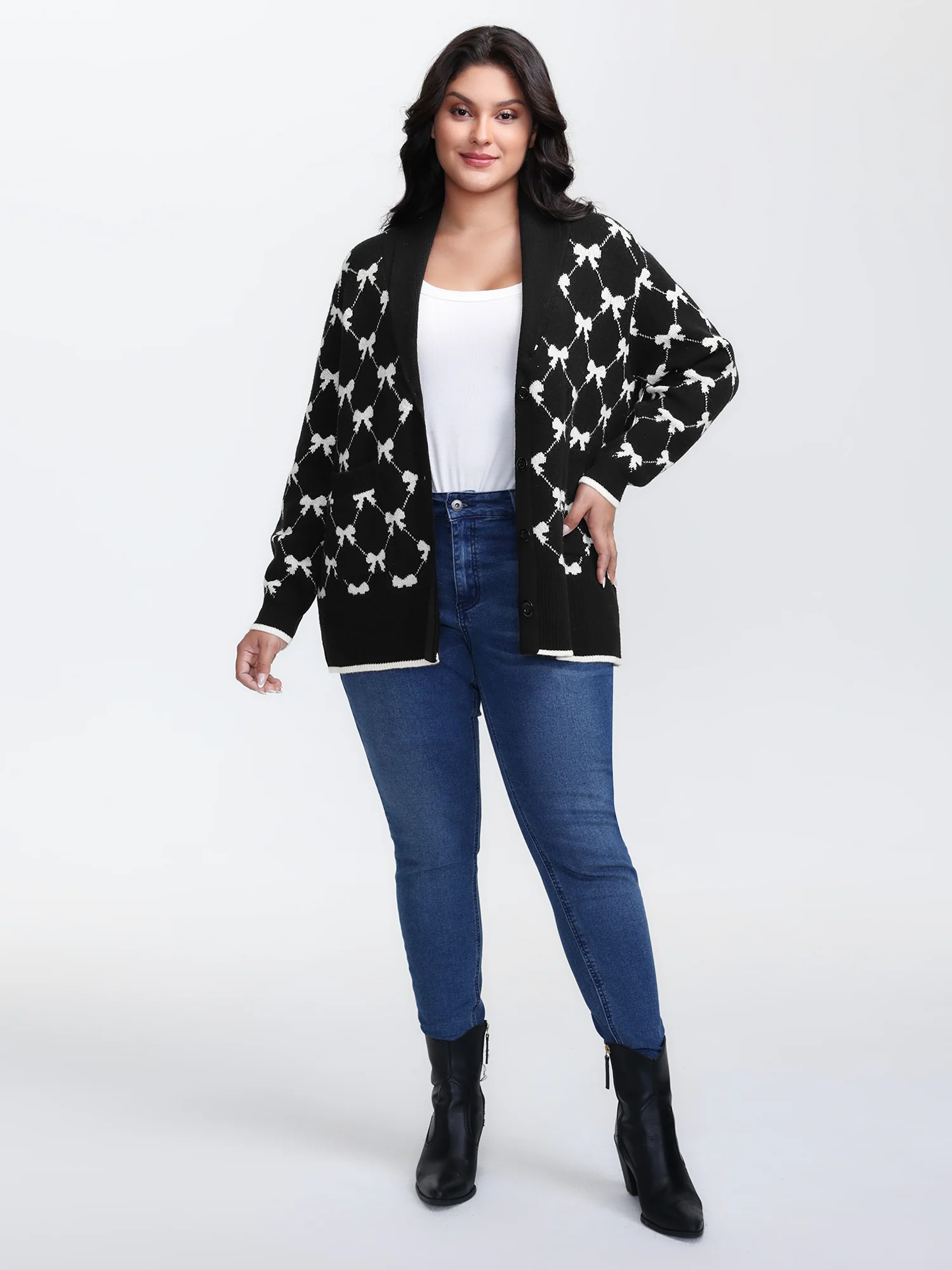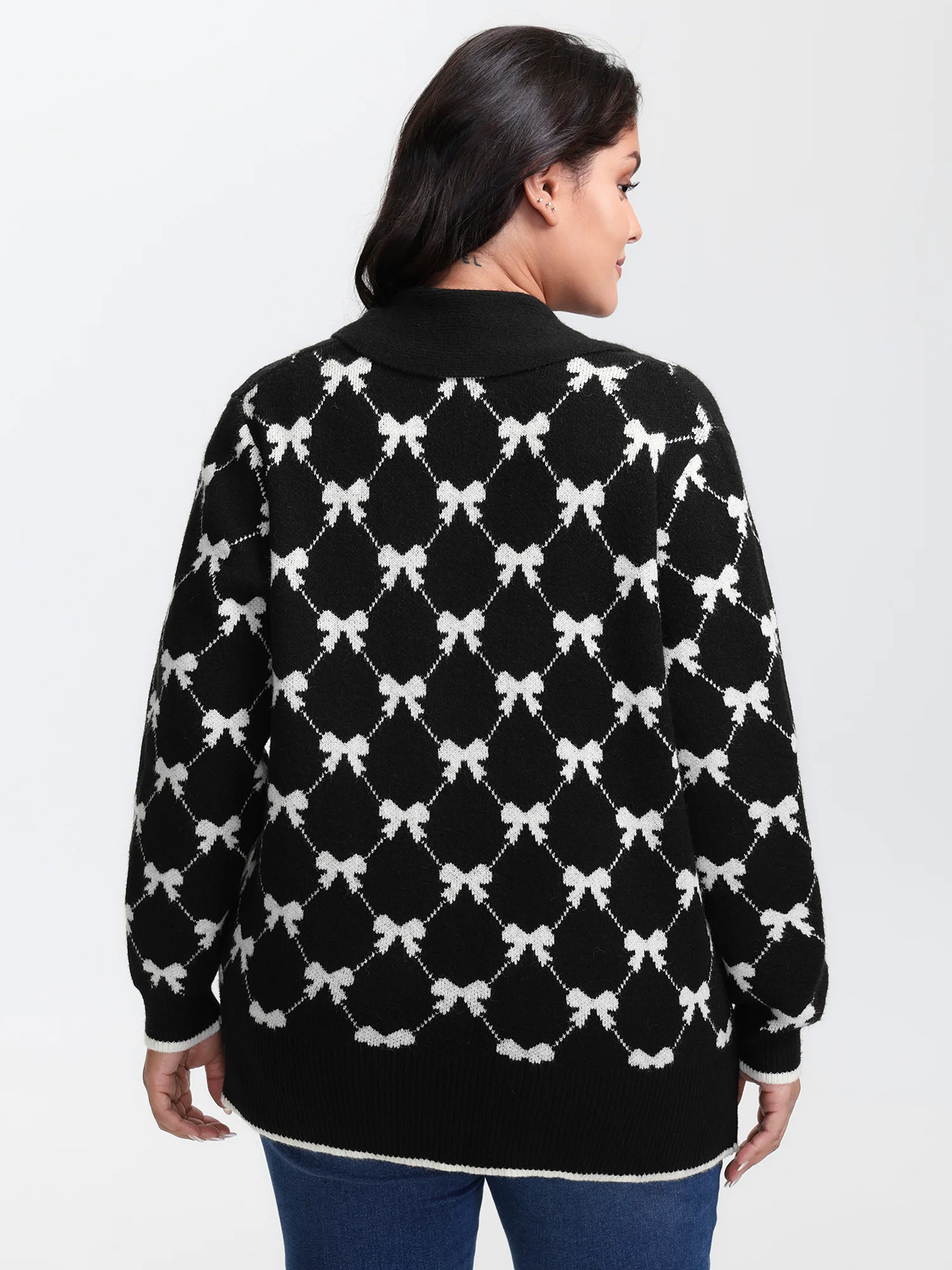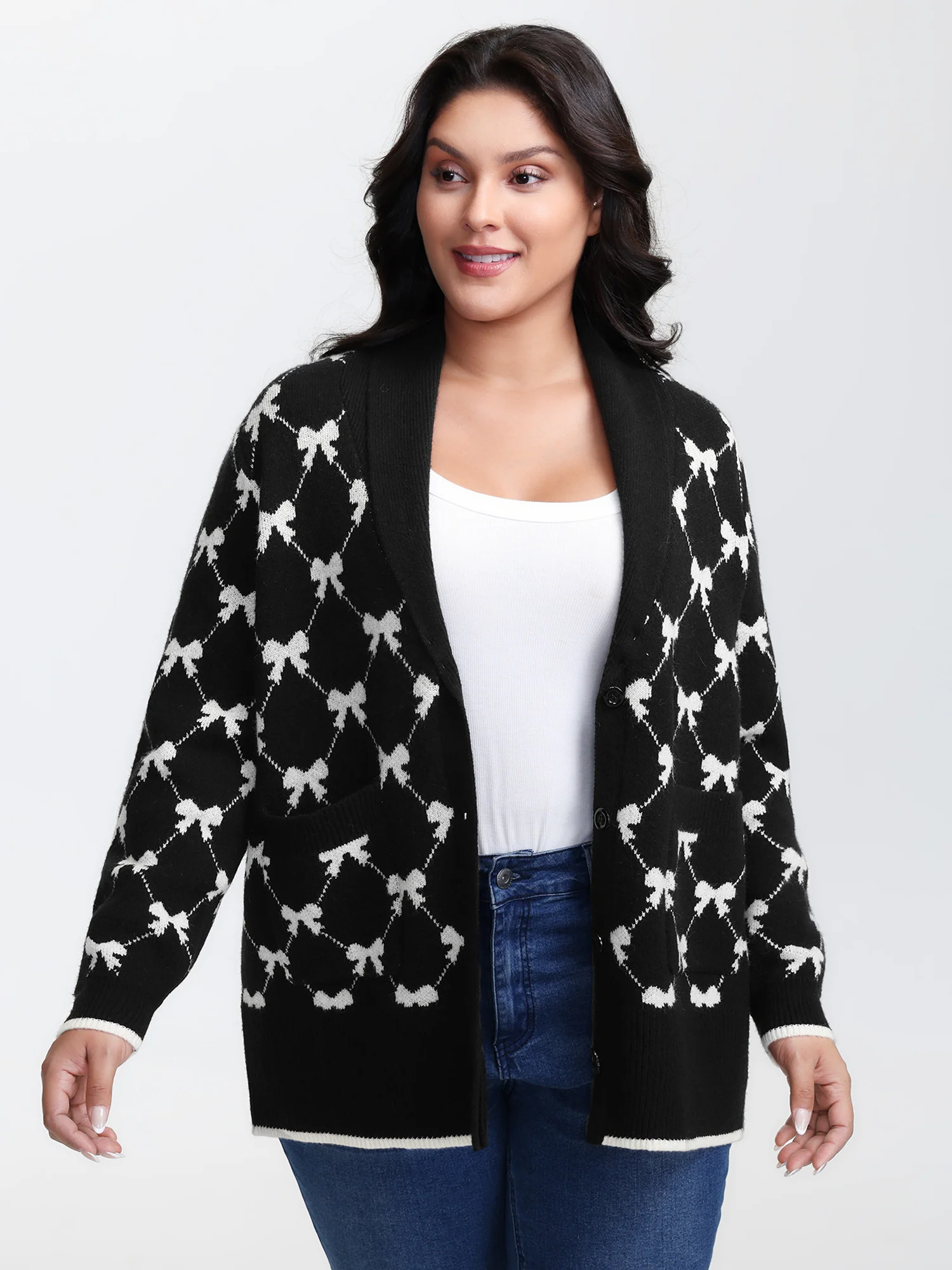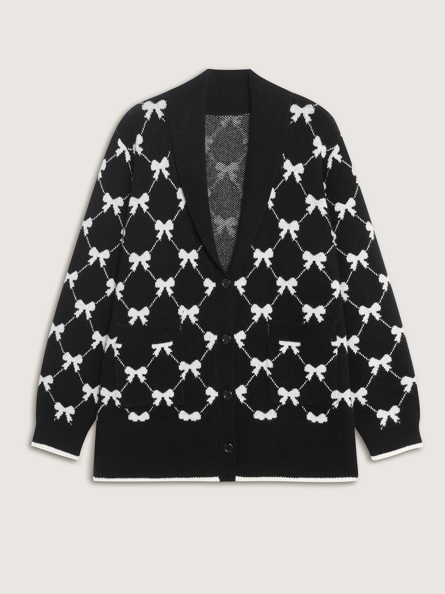 Bowknot Jacquard Button Knit Cardigan