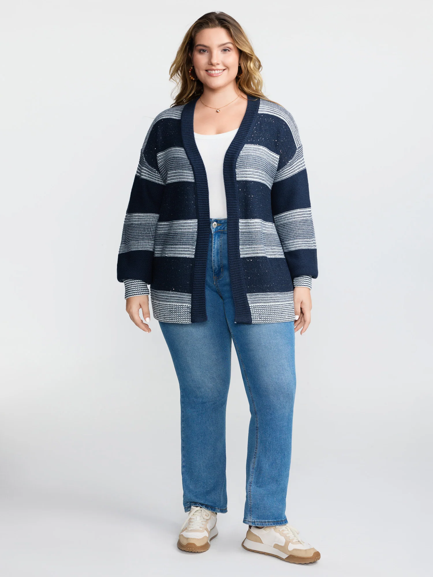 Sequin Yarn Color Stripe Knit Cardigan
