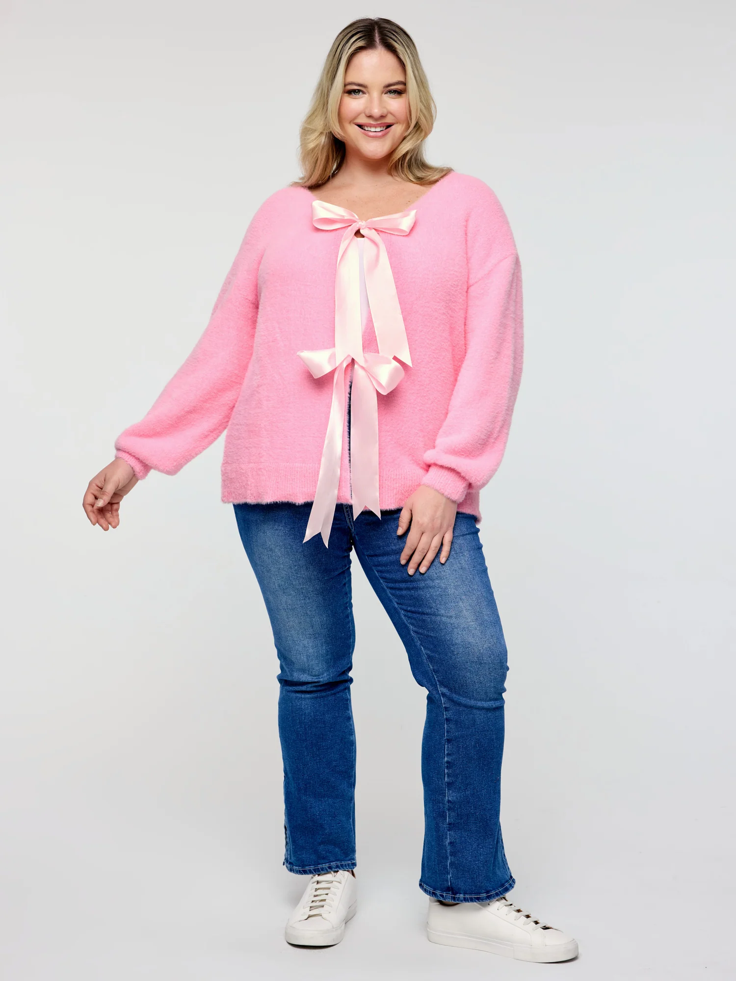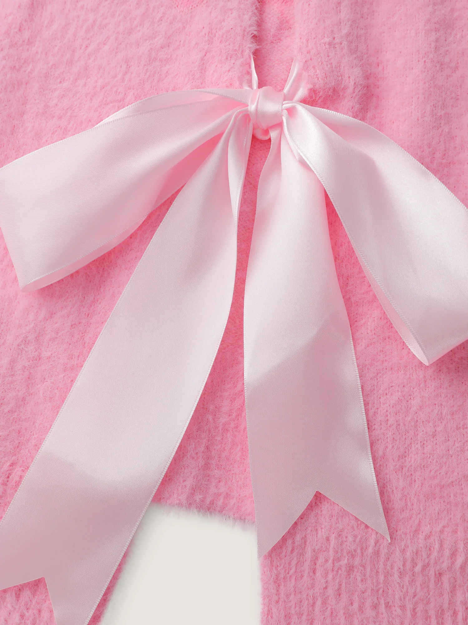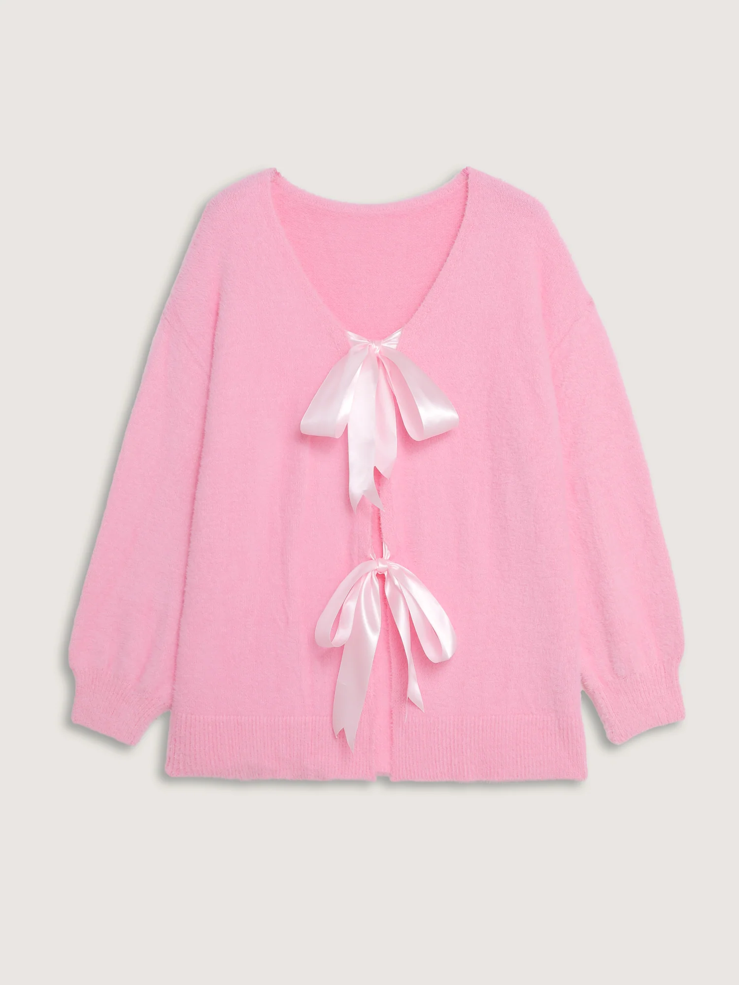 Fluffy Ribbon Bowtie Knit Cardigan