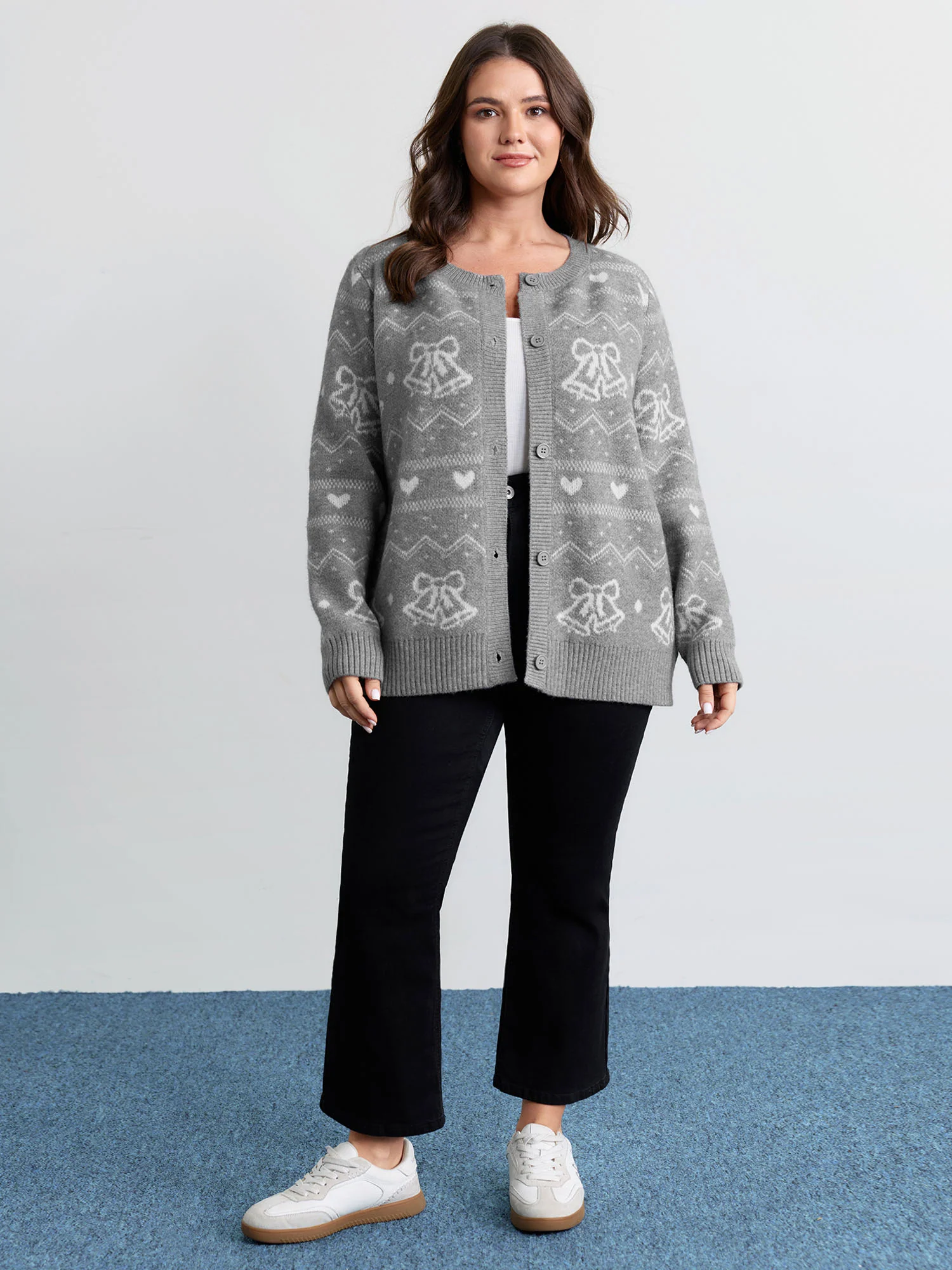 Supersoft Holiday Bells Jacquard Button Knit Cardigan
