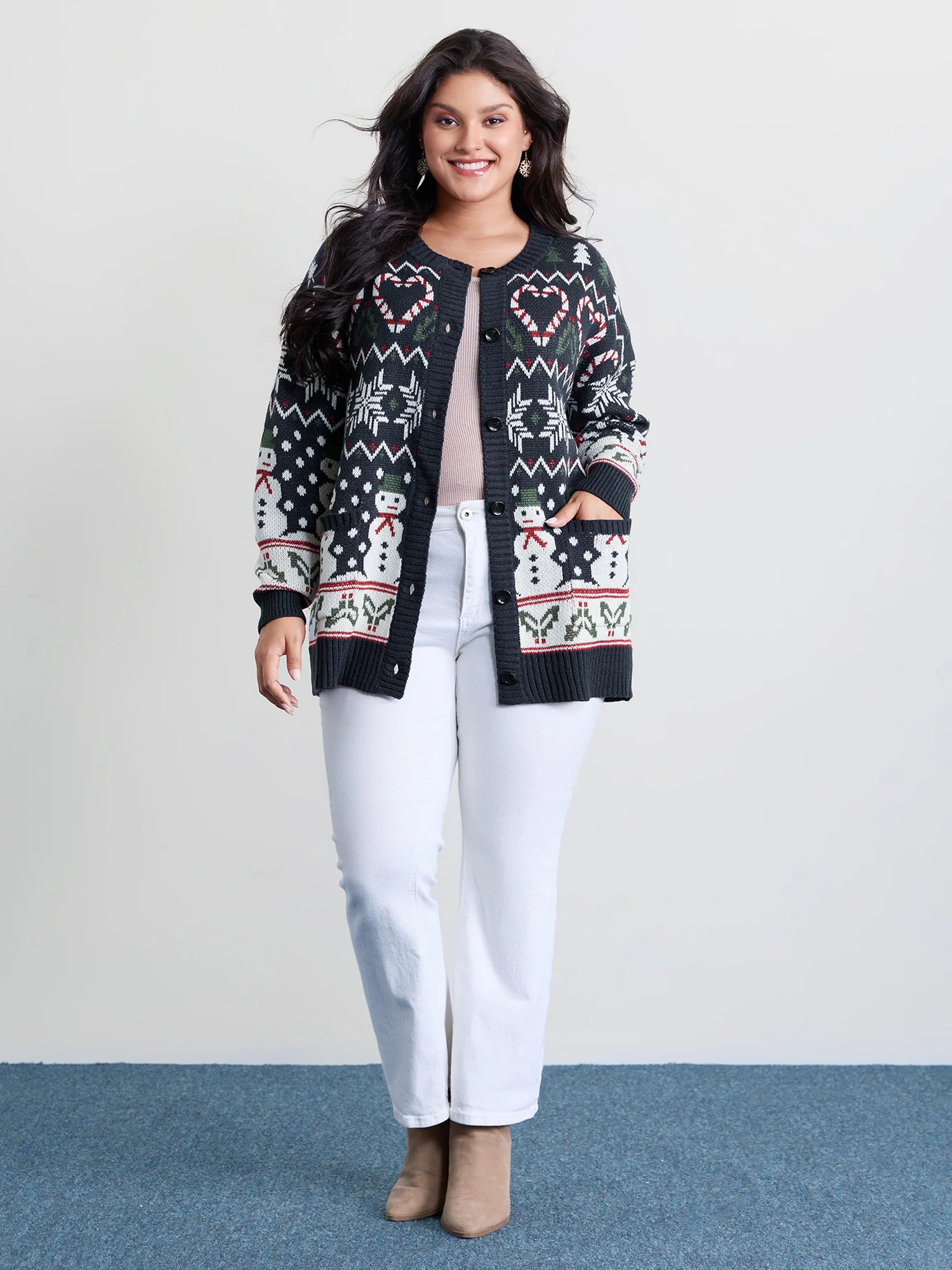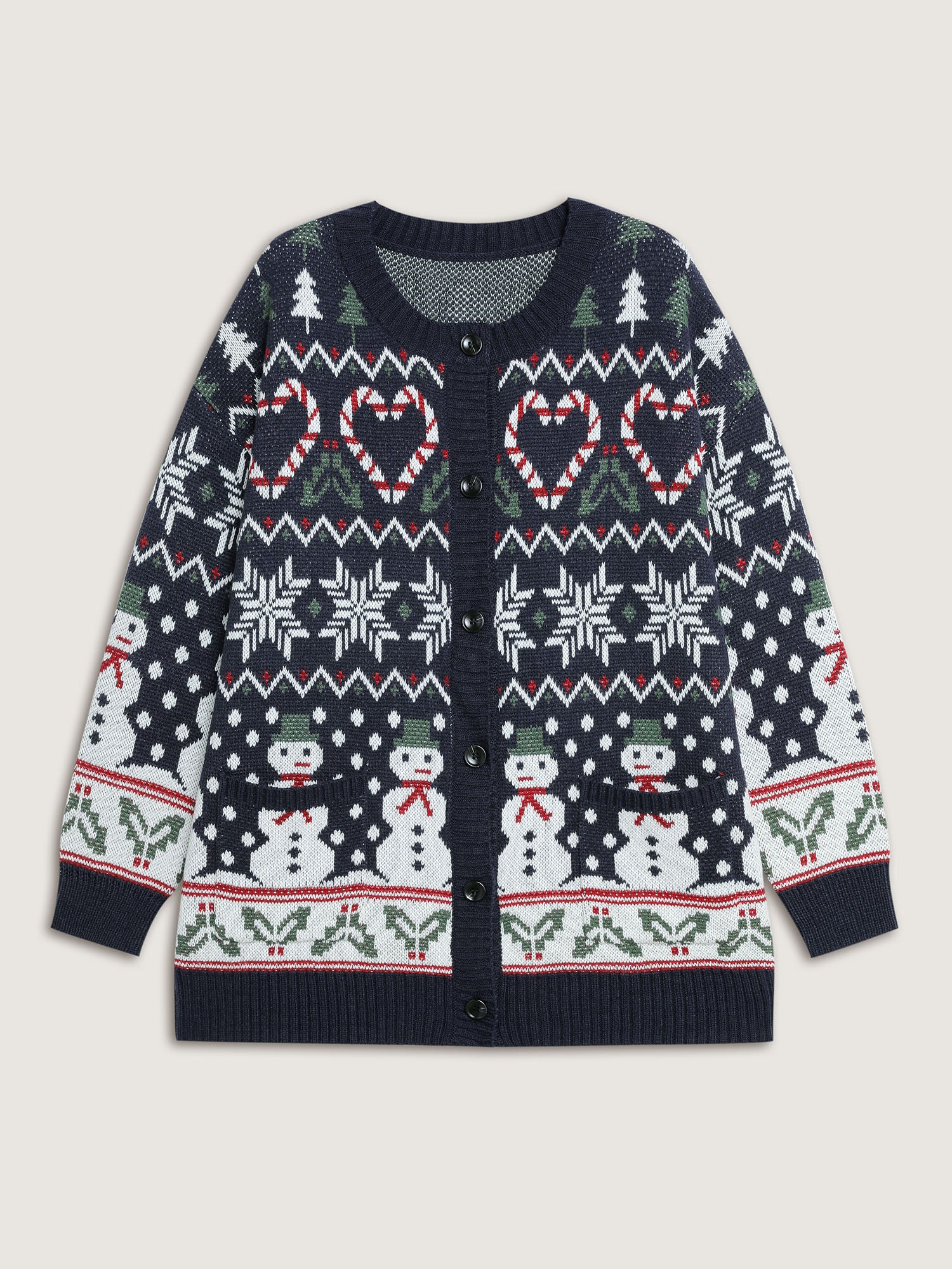 Snowman Holiday Jacquard Pockets Knit Cardigan