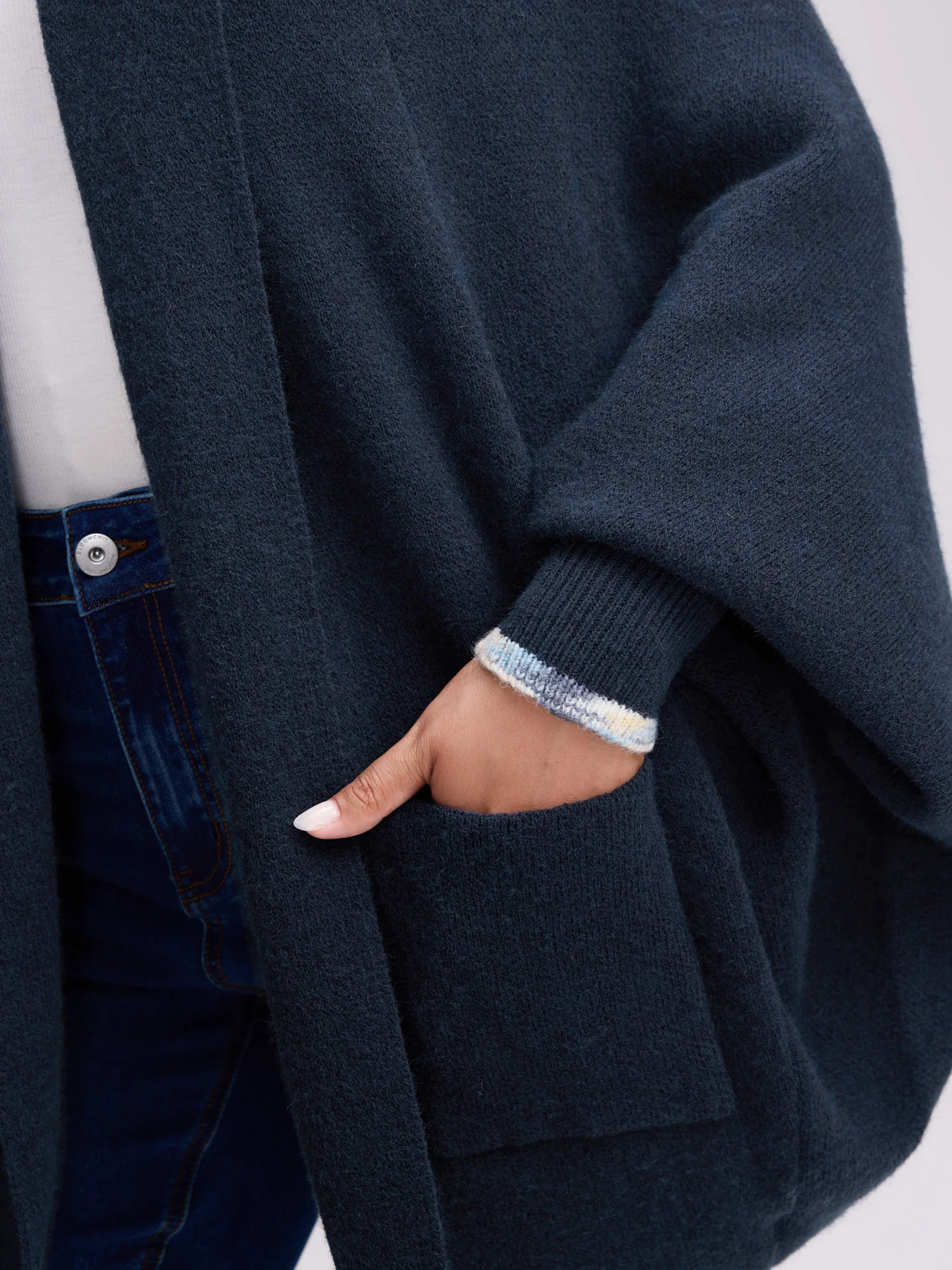 Holiday Curvy Hem Ribbed Knit Cardigan