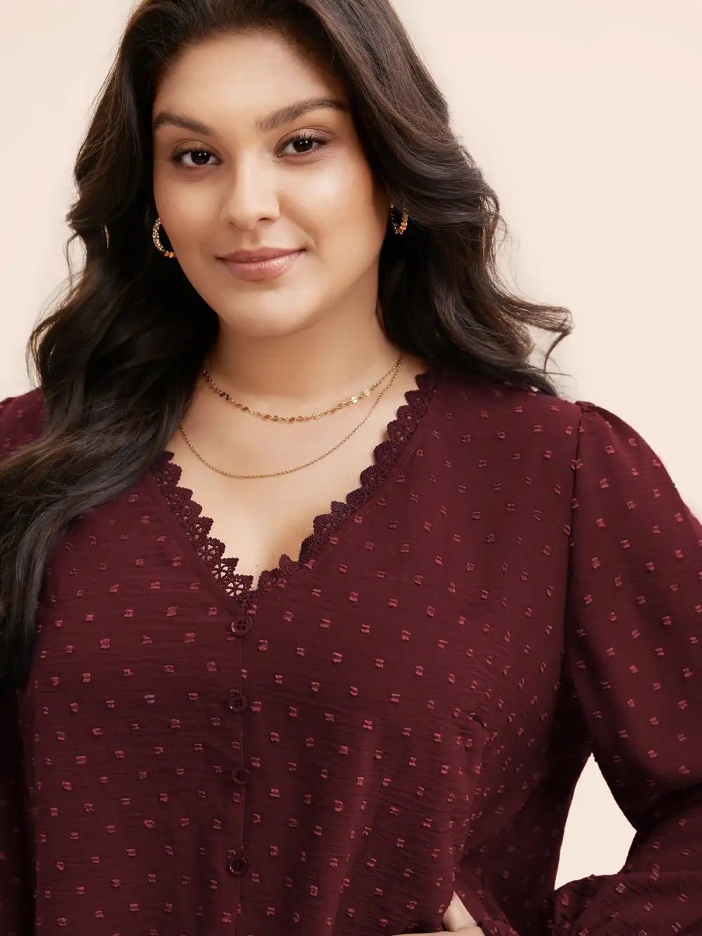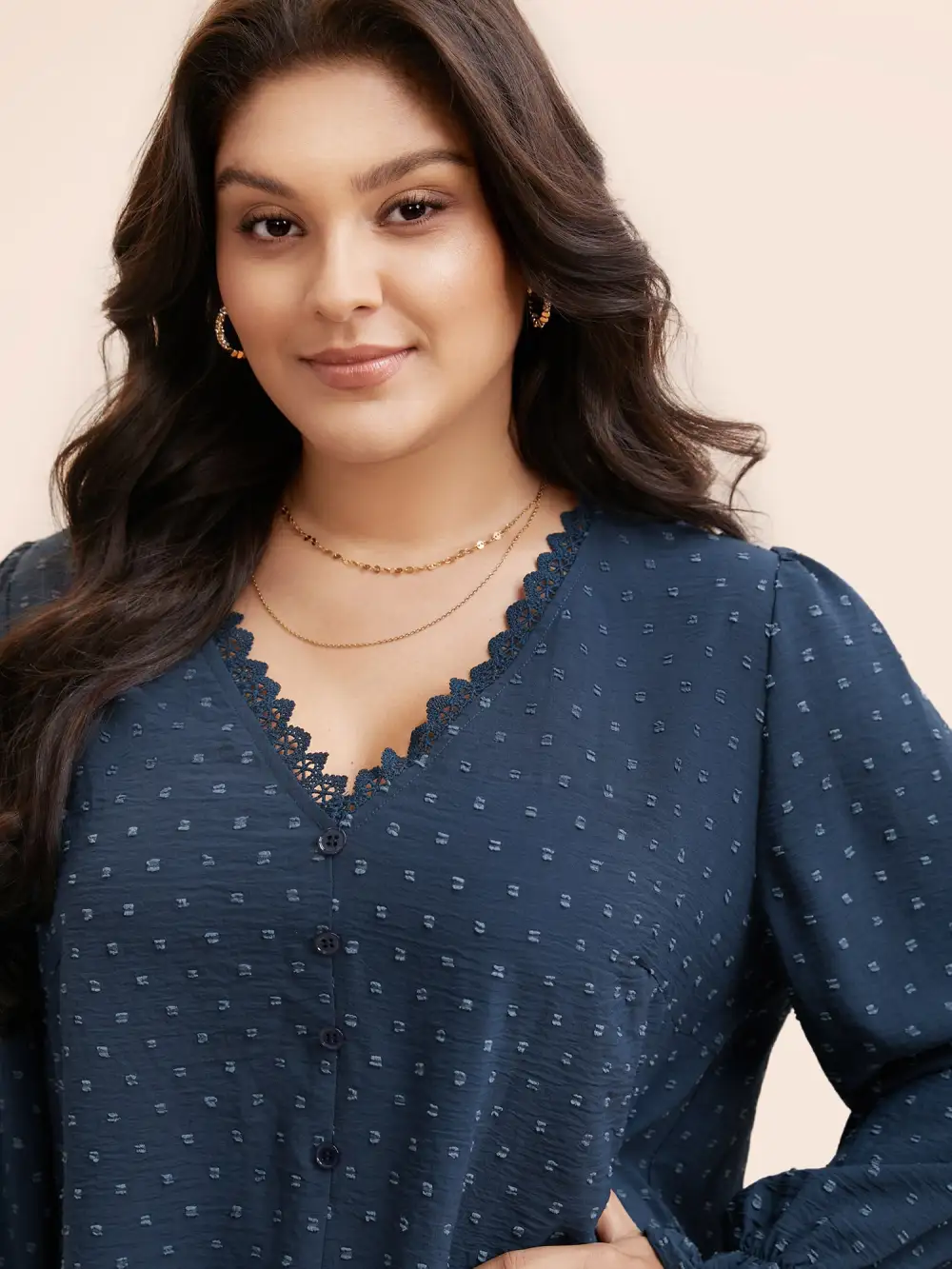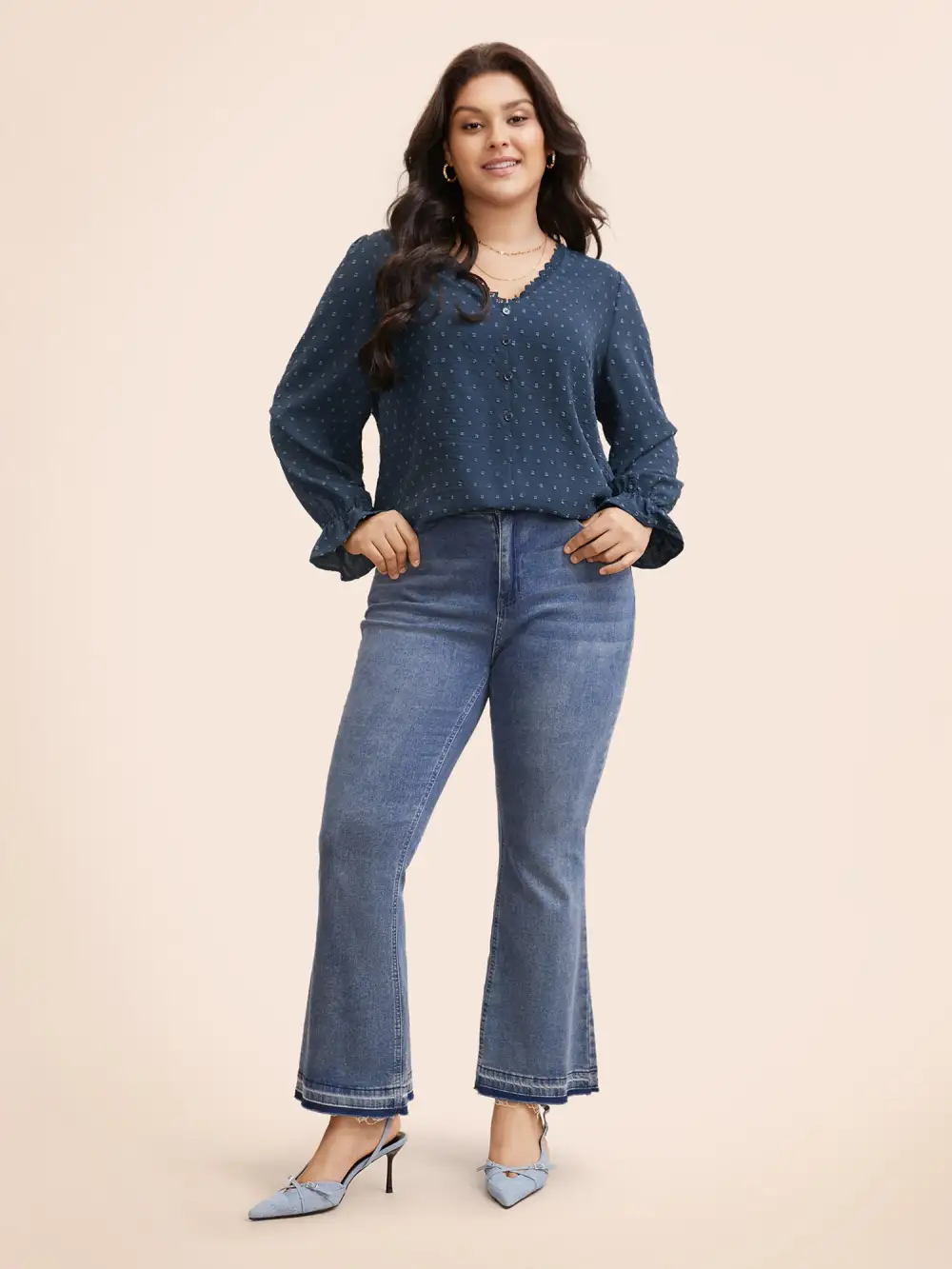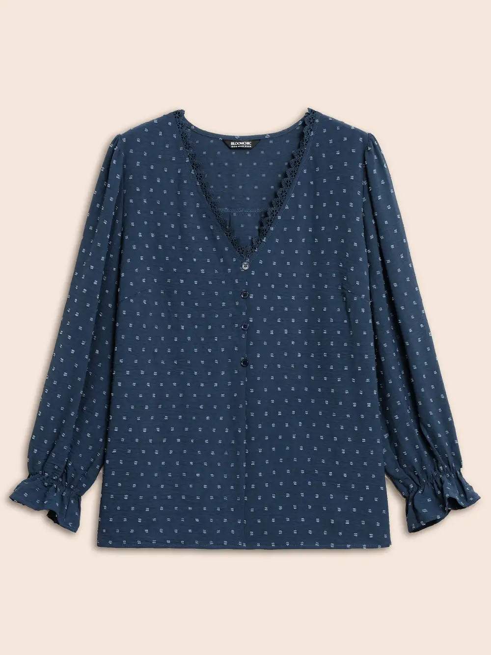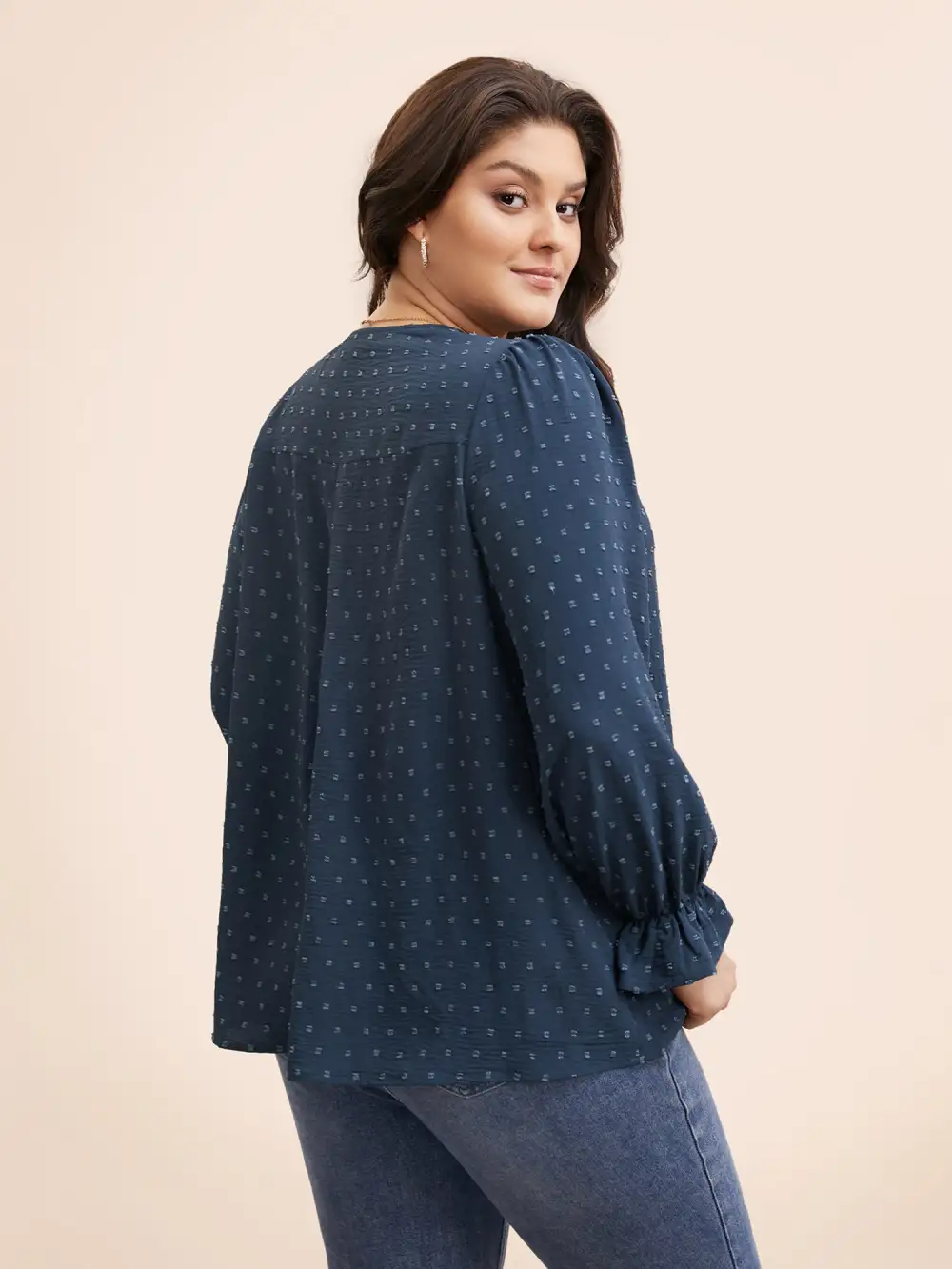 Ditsy Floral Stand Collar Shirred Frill Trim Blouse