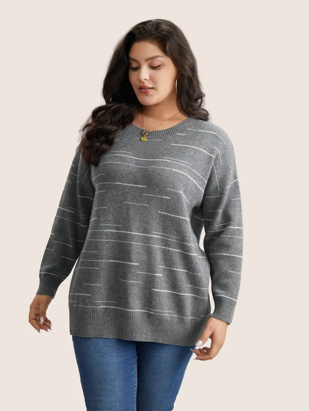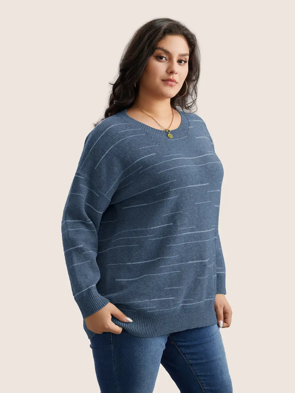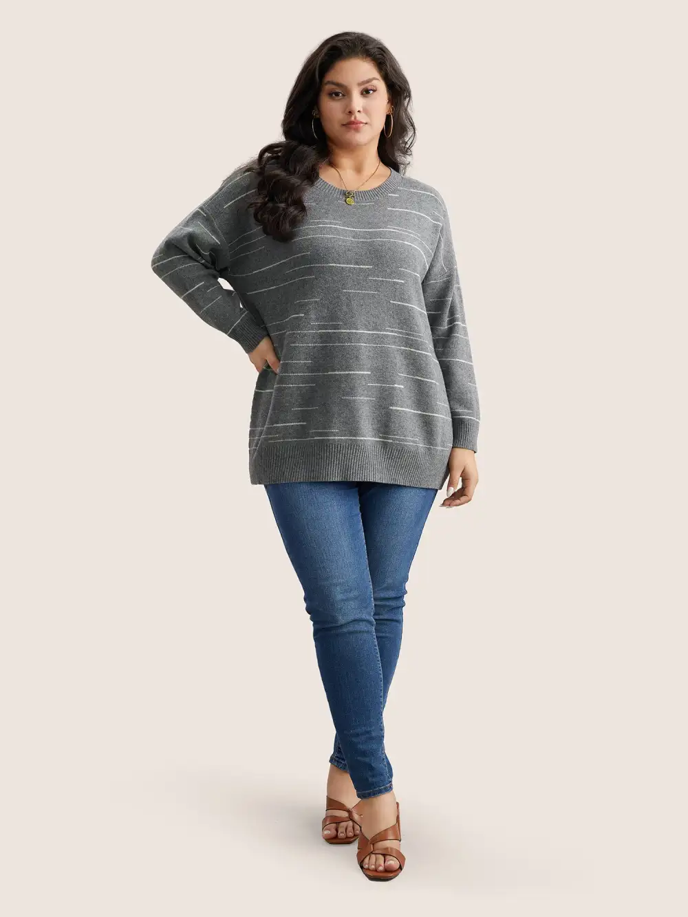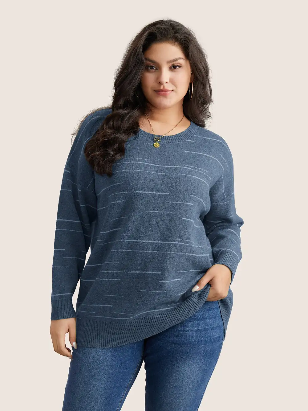 Supersoft Essentials Asymmetrical Striped Round Neck Pullover