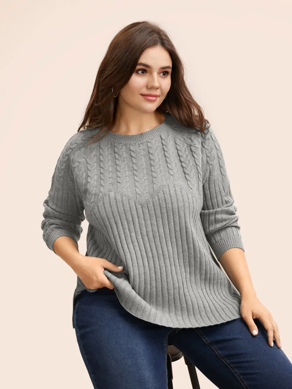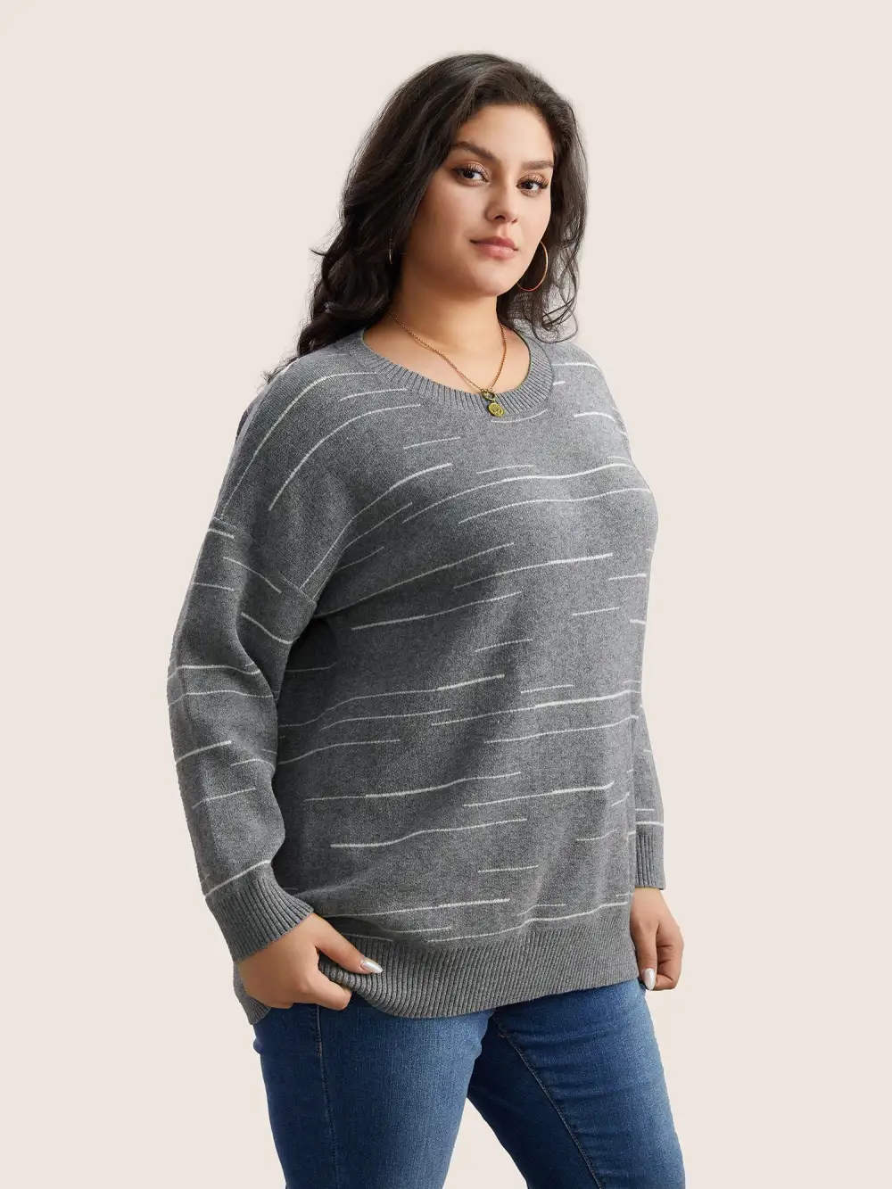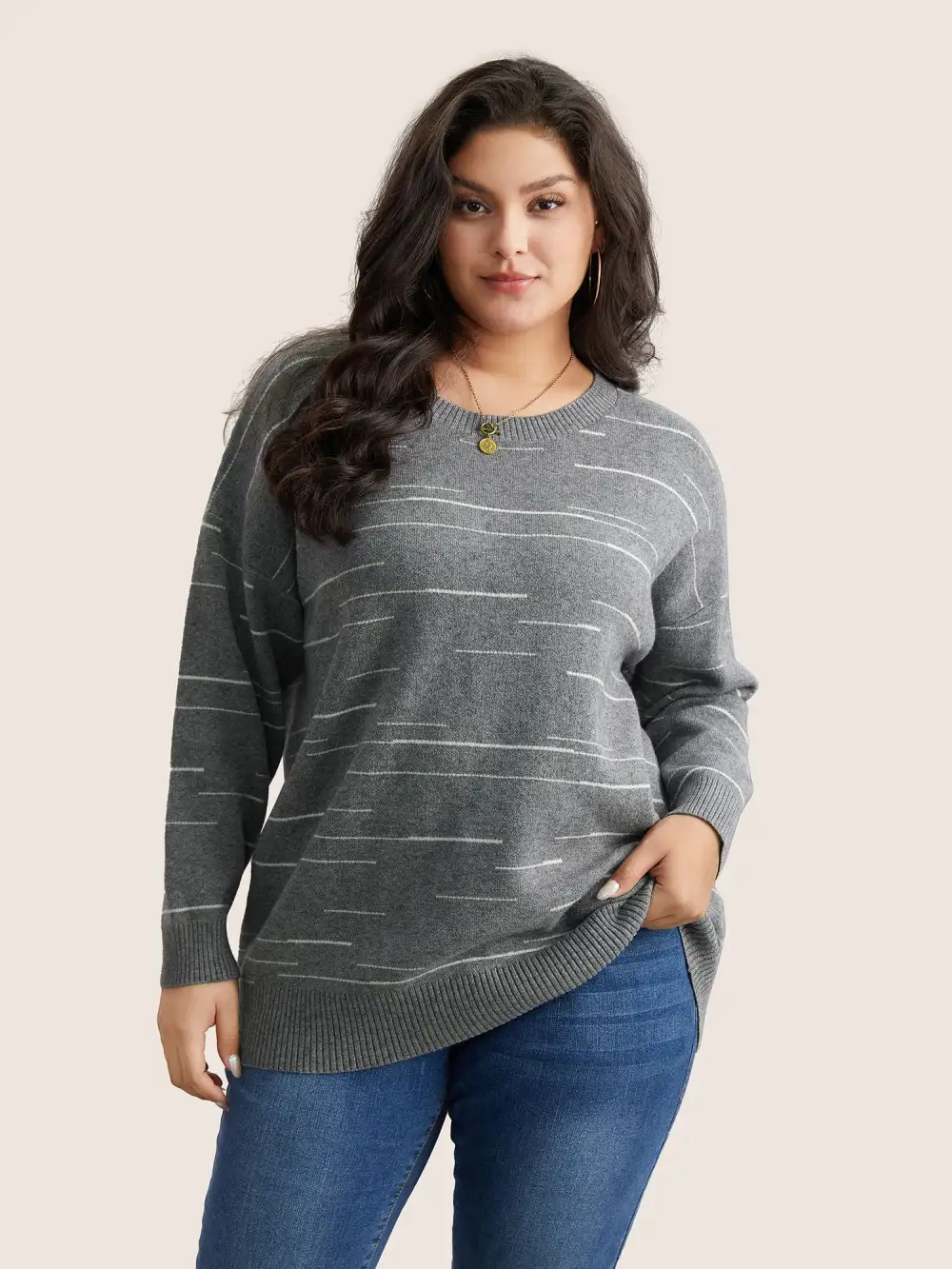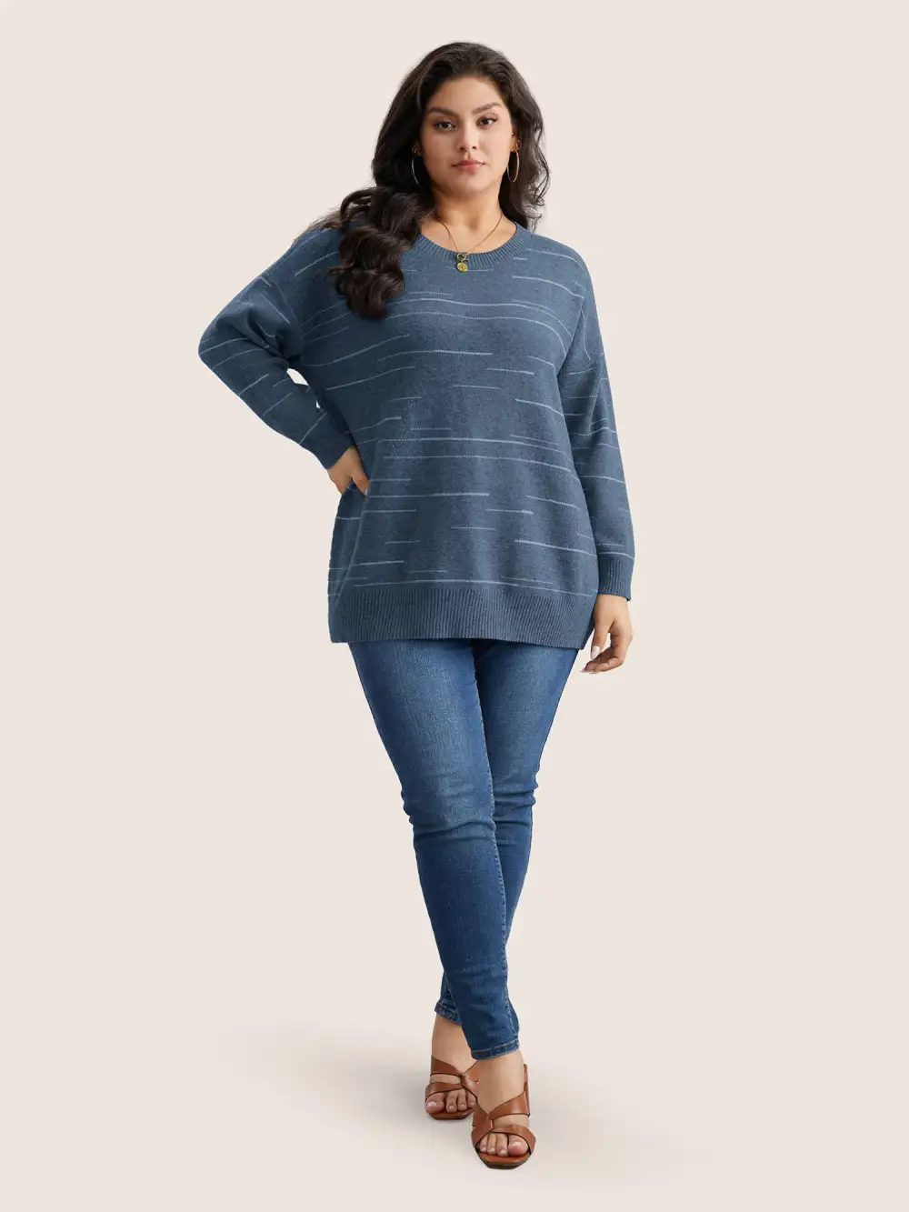 Supersoft Essentials Asymmetrical Striped Round Neck Pullover