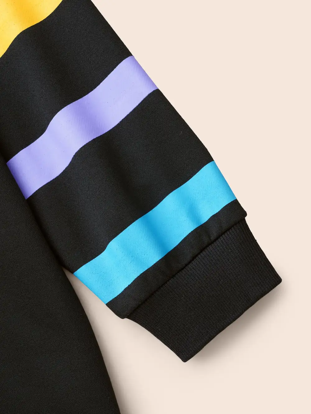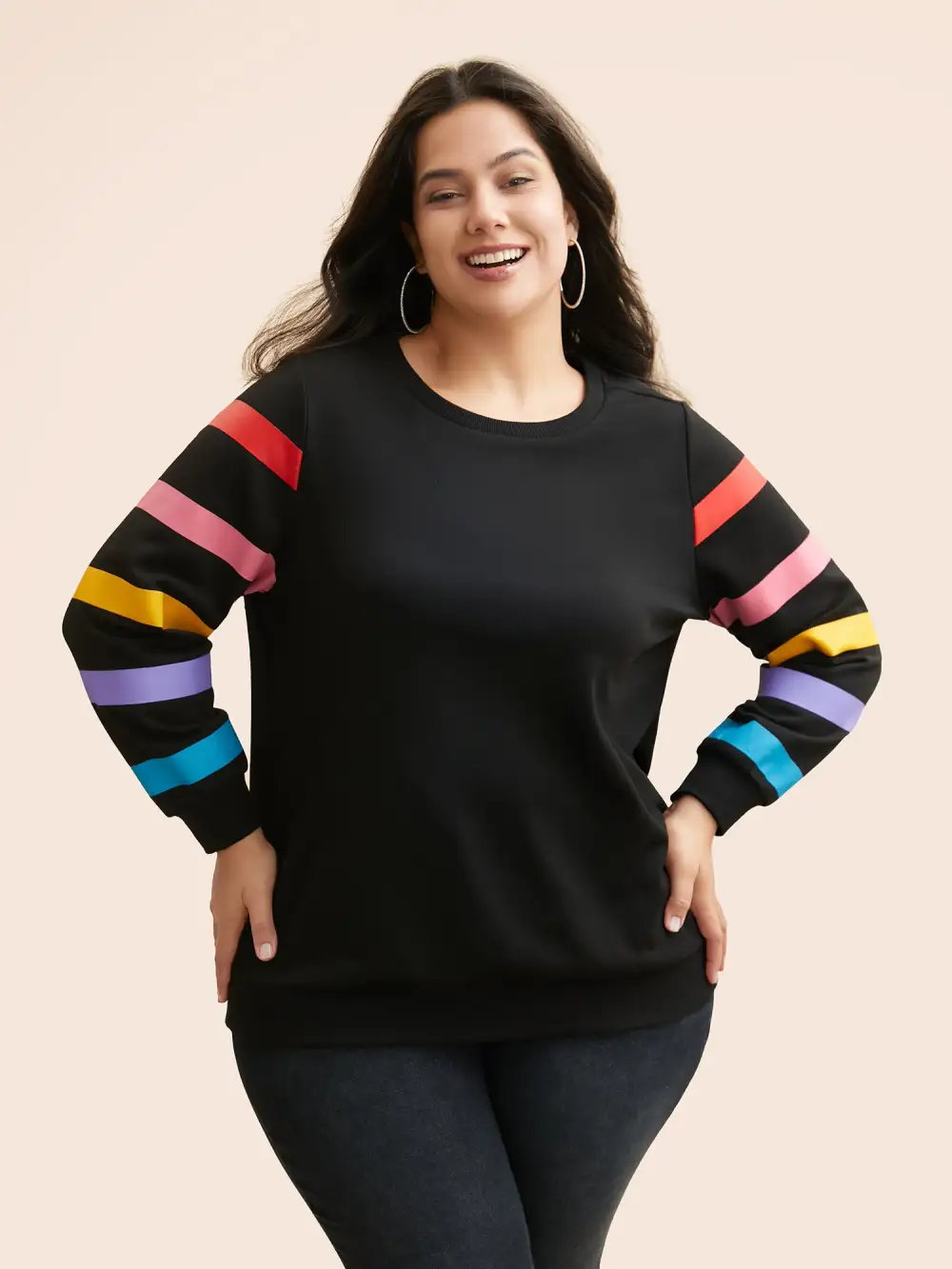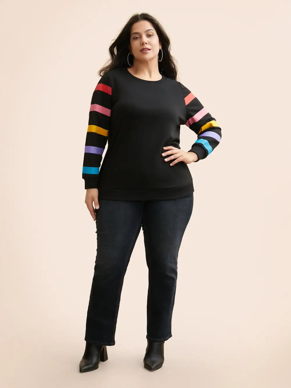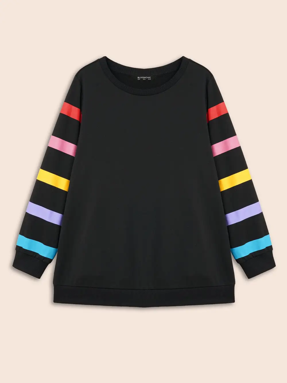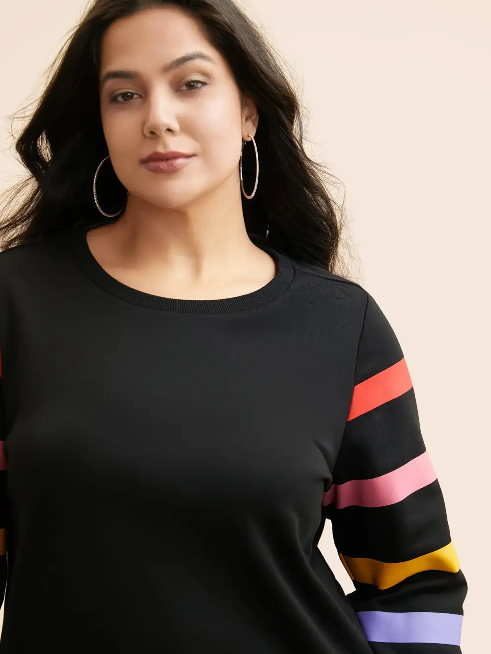 Colored Striped Patchwork Slightly Stretchy Sweatshirt