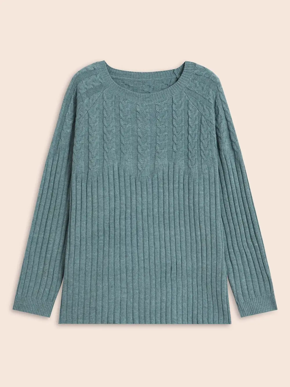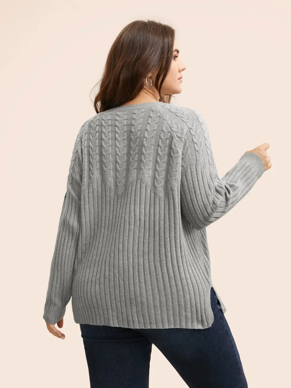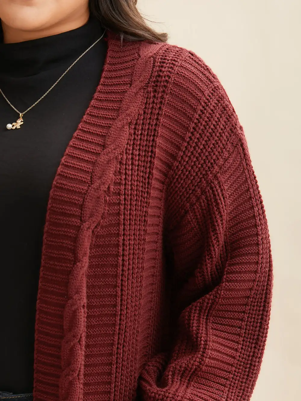 Cable Knit Ribbed Detailing Open Front Cardigan
