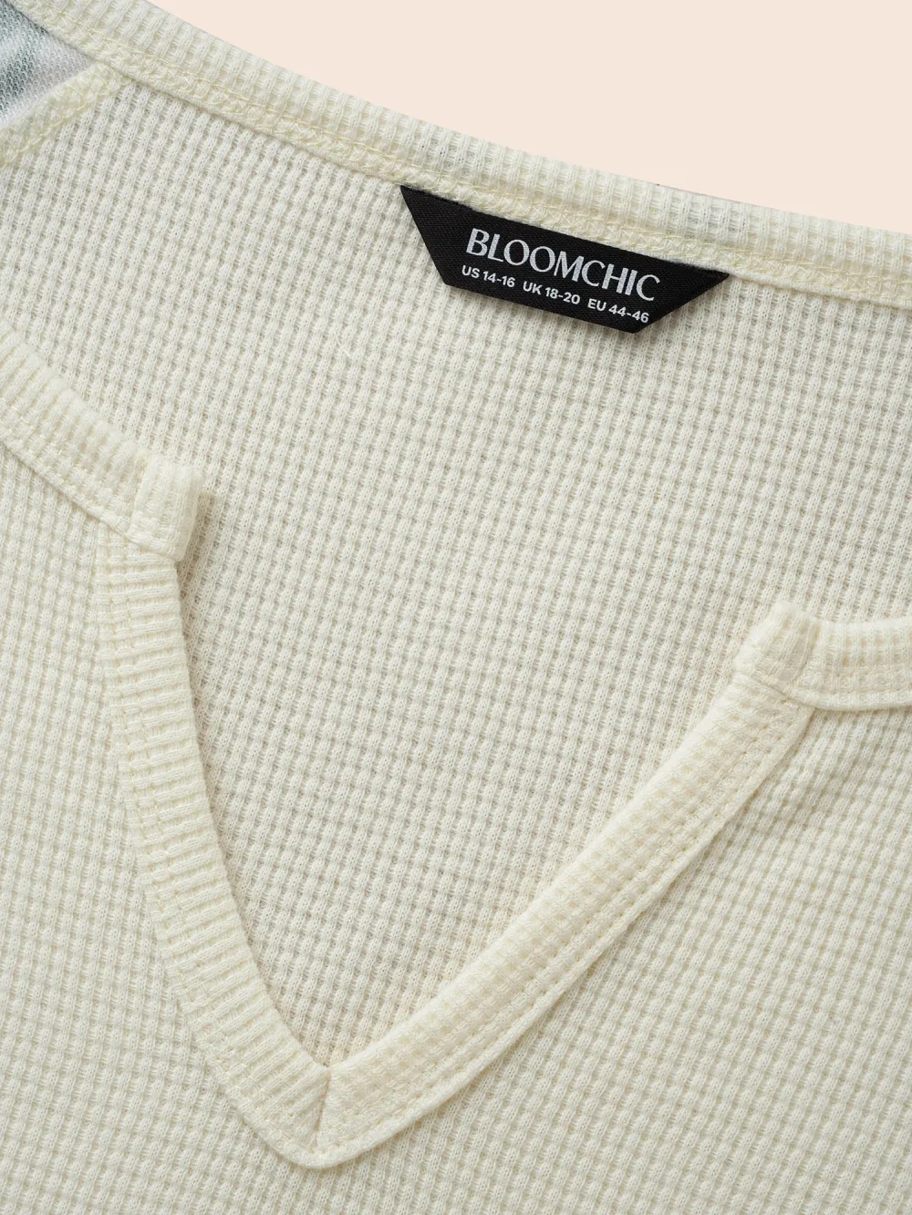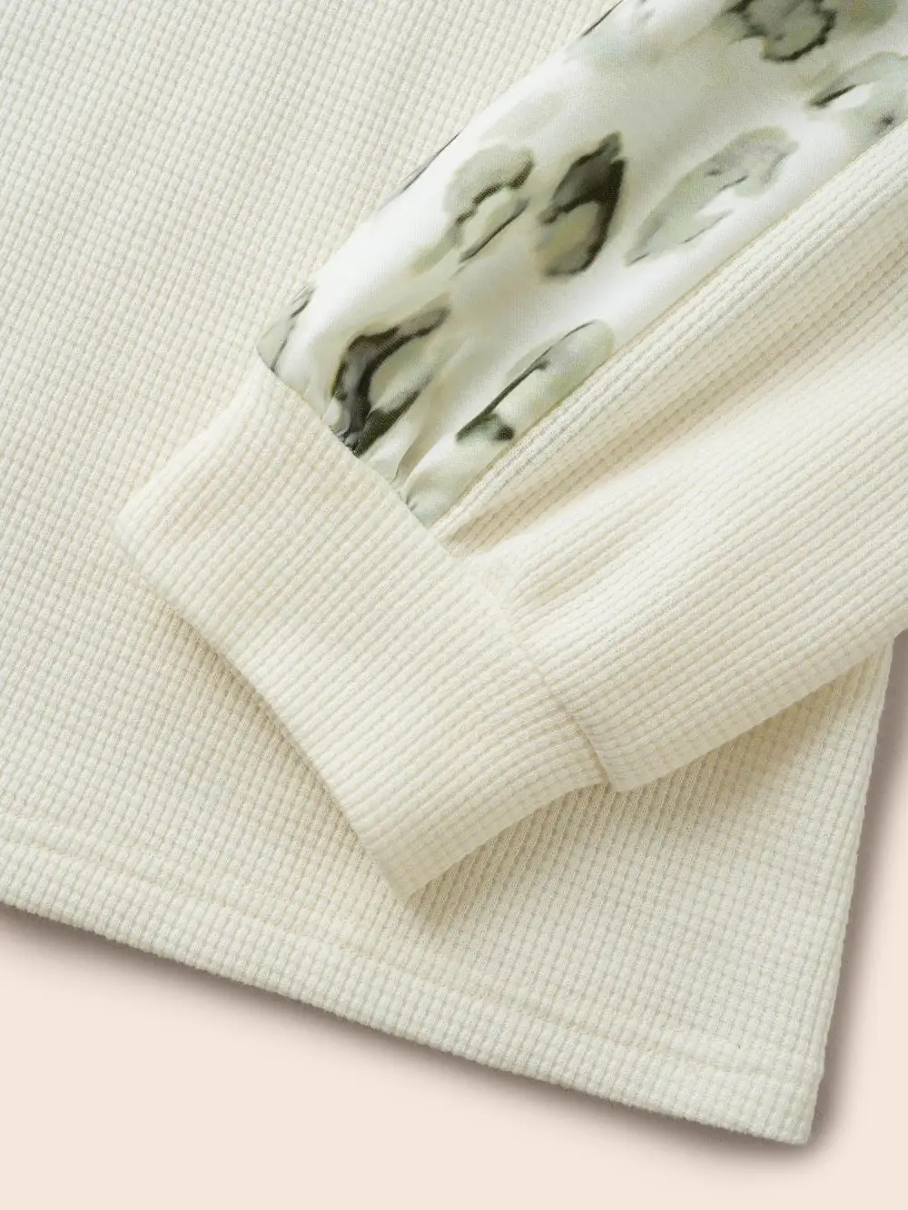 Waffle Knit Patchwork Leopard Print Sweatshirt