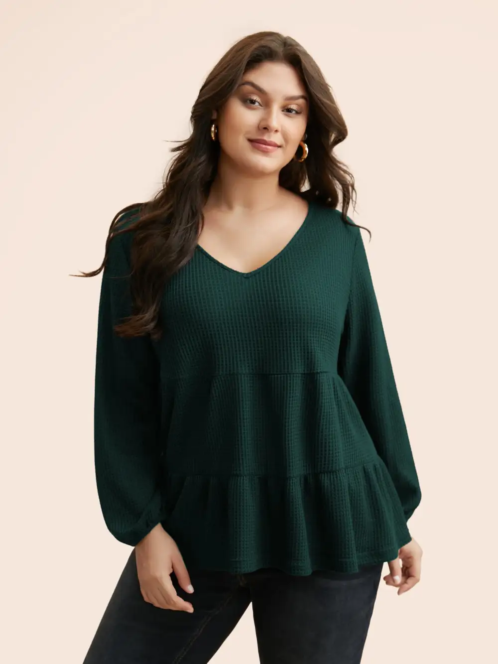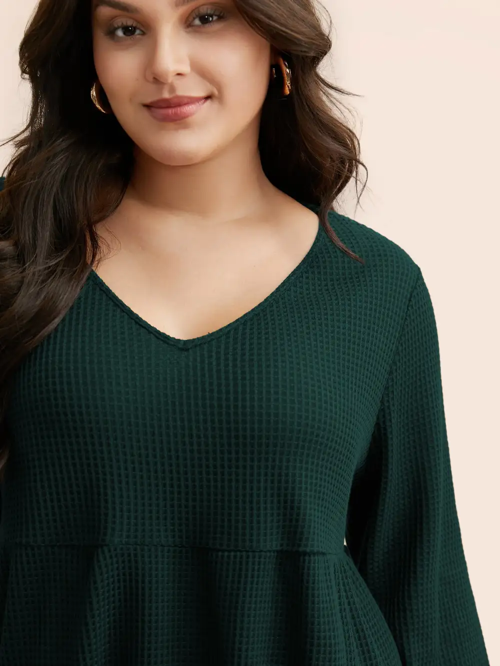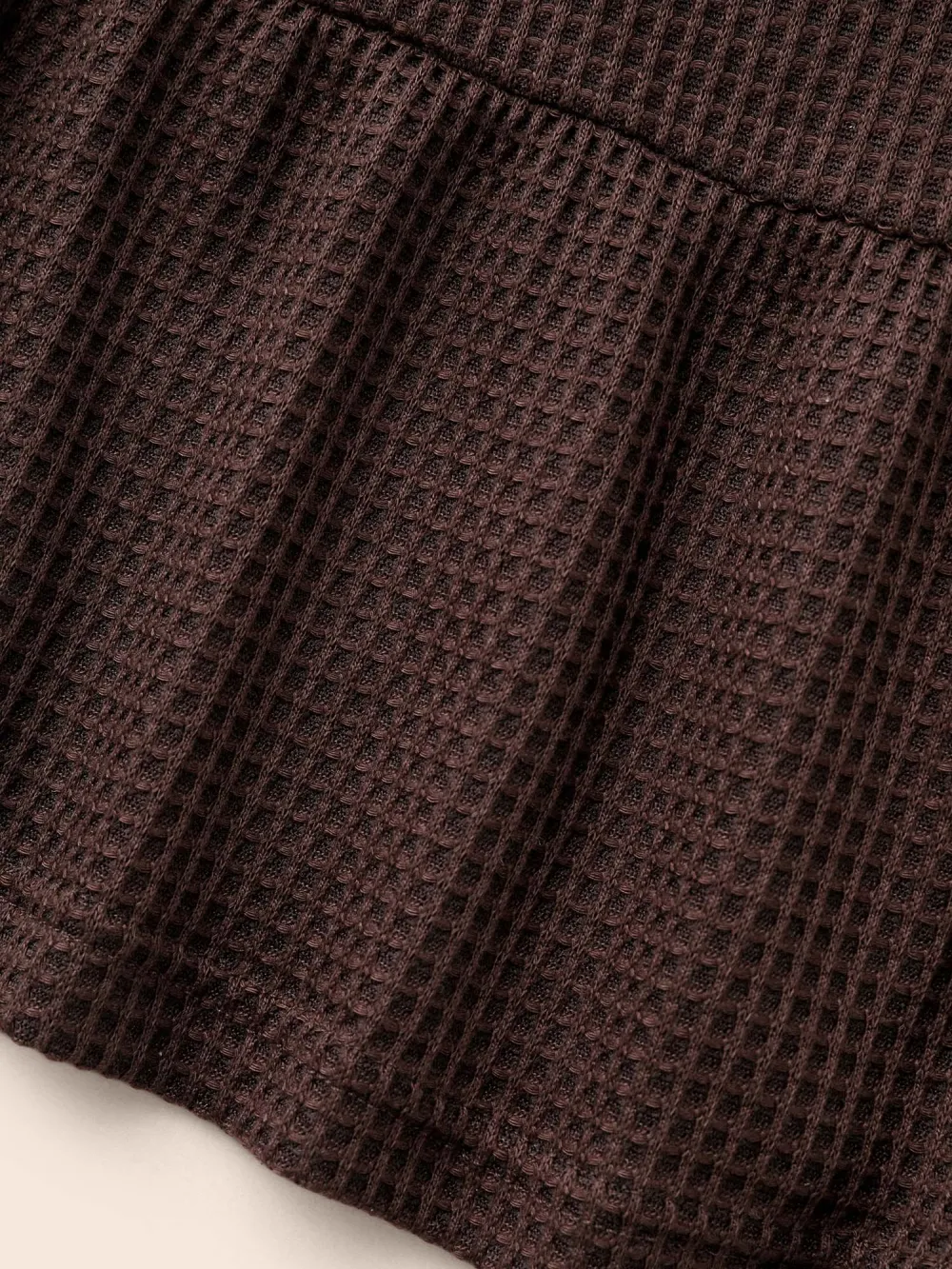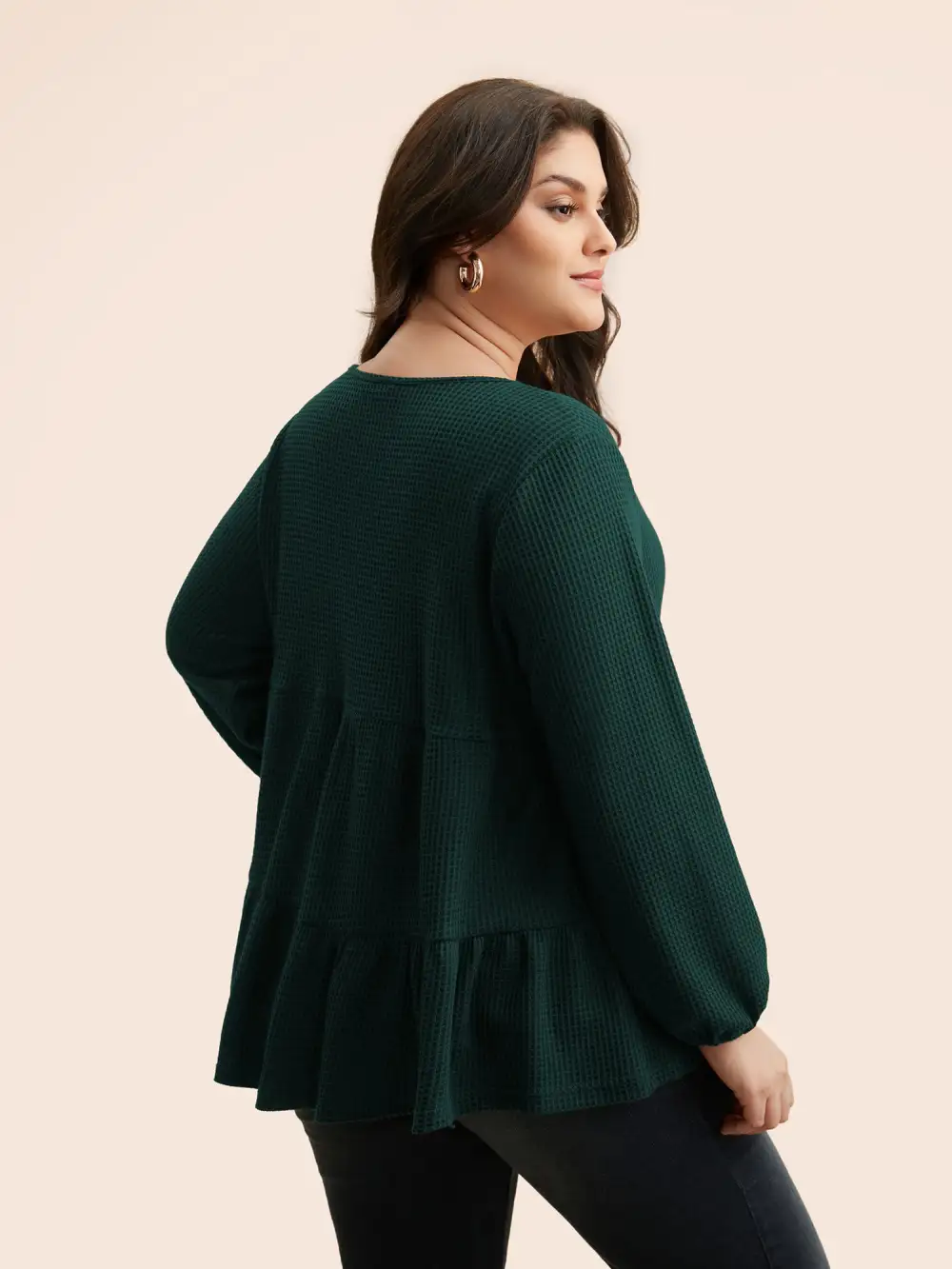 Solid Waffle Knit Ruffle Hem T-Shirt